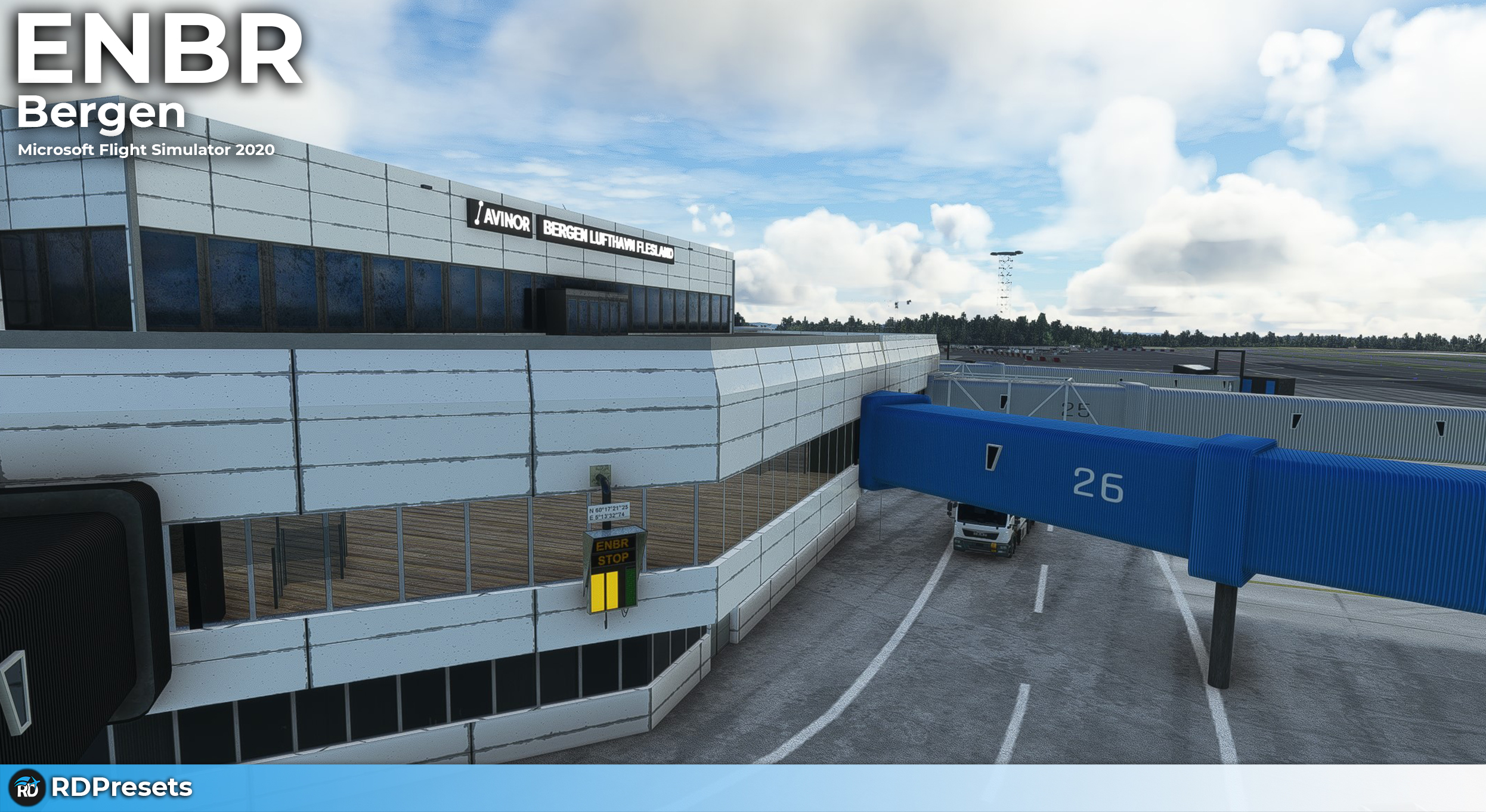 RDPresets has just released their rendition of Bergen Flesland Airport (ENBR) for Microsoft Flight Simulator, the second busiest airport in Norway with a yearly average of 6 million passengers. It is an important Scandinavian destination, served by many airlines such as Scandinavian Airlines, Norwegian Air Shuttle, and Widerøe, with a significant intra-european route network.