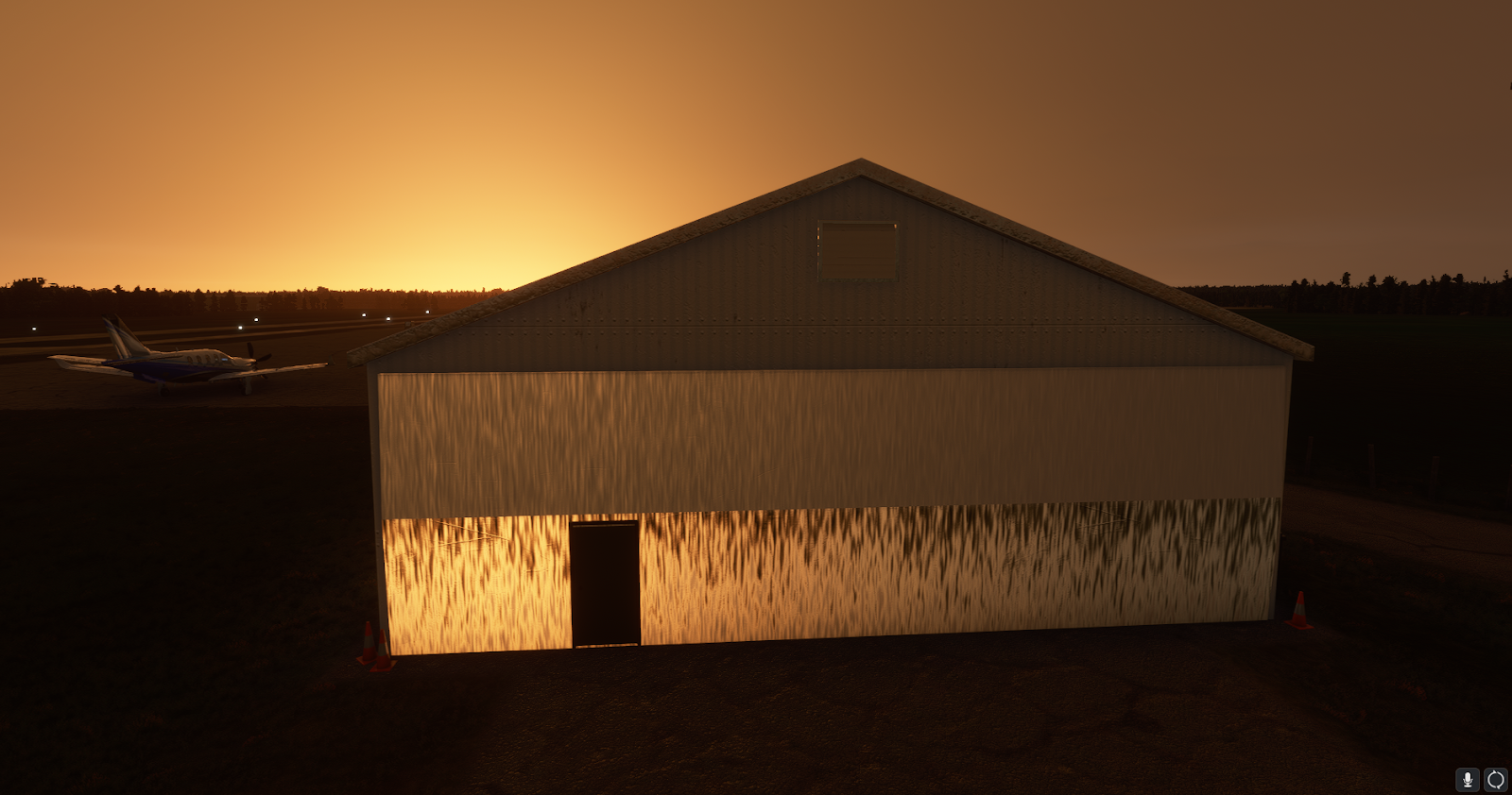 The airport comes with multiple little details which were quite surprising to find. I was quite pleased to see keen attention to detail within various hangars, with little things such as screws lying around, and more, being modelled. I was really impressed to see that the colours of the roof on a certain hangar were textured exactly to how they appear in real life. The developer could have left the colour of the roof the same as the rest of the hangars, but they added the rusty effect that the real one had, a comparison between real-life and the simulator is posted below. Moving to the entrance of the aerodrome, it was cool to see that the street sign, an advertising board, and an airport sign were all modelled. Of course, these didn’t need to be included and won’t be seen when flying regularly, but that’s what makes inclusions such as those so welcome. I was pleasantly surprised to see them included, and it adds a small sense of immersion even if they won’t be seen regularly. Moving on to the ground textures, they seem to be pretty well done and are a sure improvement over their default counterparts. Unfortunately, ground textures in Microsoft Flight Simulator are locked in resolution, meaning, they’re going to be the same resolution as the default ground textures, so I won’t comment on how sharp the textures look. However, the various cracks in the concrete give it a nice feel and makes it feel like you’re flying into a smaller General Aviation Airport. What impressed me most with the ground texturing was the newer concrete laid out near the terminal forming what looks like a walkway. At first, I didn’t think anything of it, but looking at real-life pictures It’s that way as well. Also, the words “Guelph Airpark” were included on runway 32, matching real-life as well. In general, the ground textures seem to be very well done, with even the runway markings perfectly matching their real-life counterparts. The layout of the airport, the general look of the asphalt, and the perfectly represented runway markings all contribute to a very well-done layout and ground texturing of the airport. Various comparisons between real-life and the simulator are viewable below. Lastly, moving on to night lighting, RegDesigns has once again done an excellent job. The developer claimed that the lighting was correct according to the CFS (Canadian Flight Supplement) and checking it myself, their claim is correct. According to the CFS, only 2053 feet of runway 32/14 is lighted, with about 500 feet in total being unlighted (around 250 feet on either side of the runway). This was represented amazingly within the scenery, and It is great attention to detail as the developers could have just left the airport lighted as it was within the default simulator. It was also nice to see that runway 06/24 didn’t have any night lighting in the simulator, just as it would in real life. In general, the attention to detail throughout the airport is superb, with the accurate night lighting only adding to the immersion. The ground textures are done well and the markings are accurate, which is most important. The high attention to detail within RegDesigns’ rendition of Guelph is only a positive for people looking to purchase the scenery