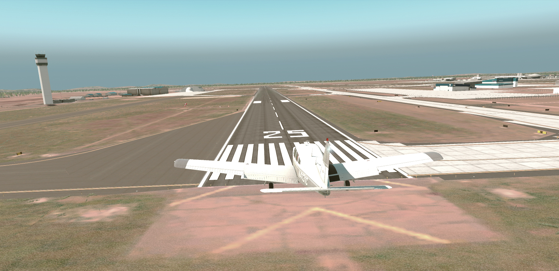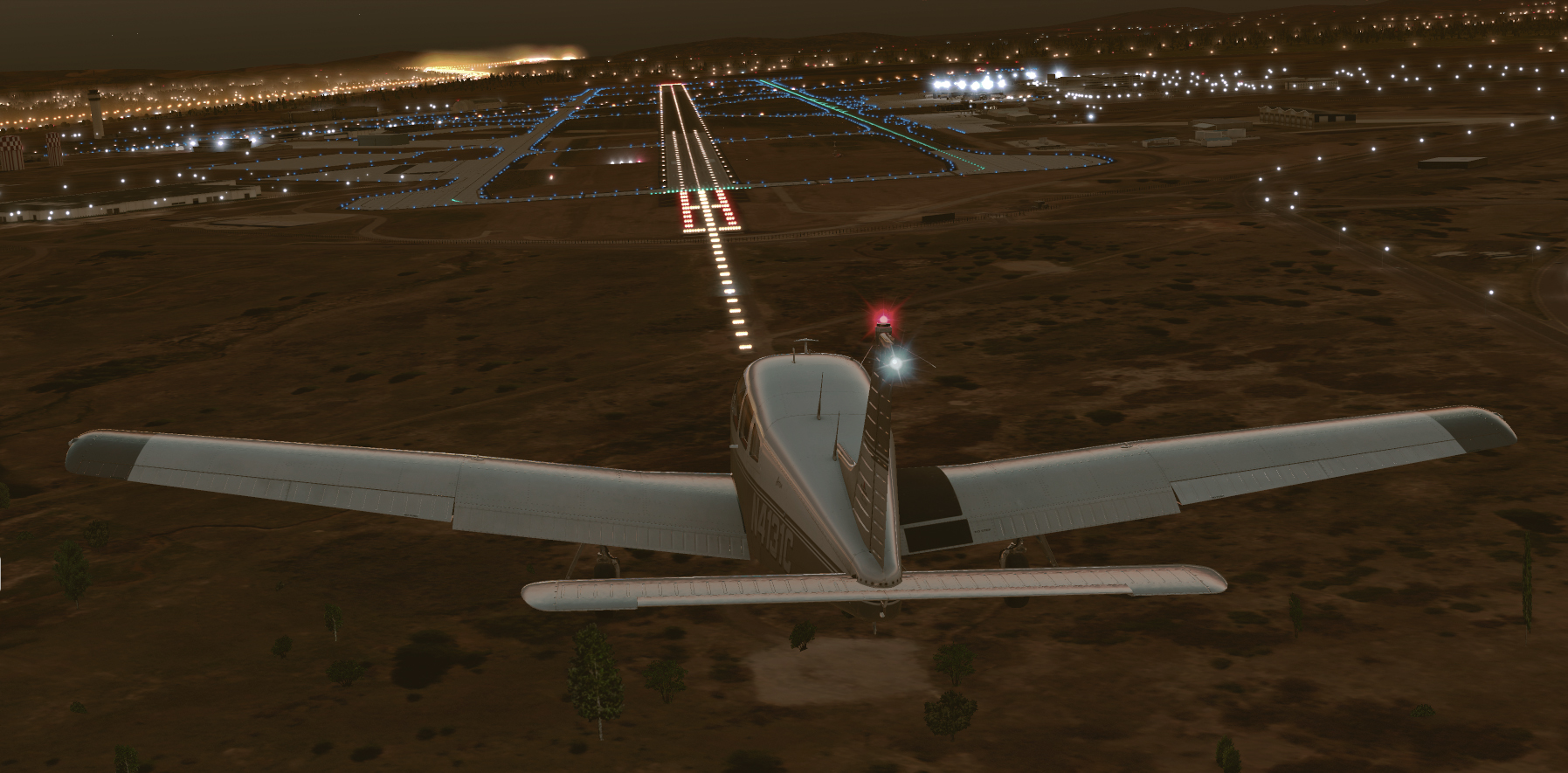 Approaching from the east the photo-scenery textures blends nicely with the default scenery and after comparing to a Google Earth image, the texturing is the correct color. Approach and runway lighting are very impressive as well as seeing the entire airport lit up at night. A minor nitpick that I have is that Verticalsim Studios used the old runway numbers of 07/25 instead of the current Runways 08/26. X-Plane 11.30 uses the newer runway numbers for ground starts and approach setups, which is great.