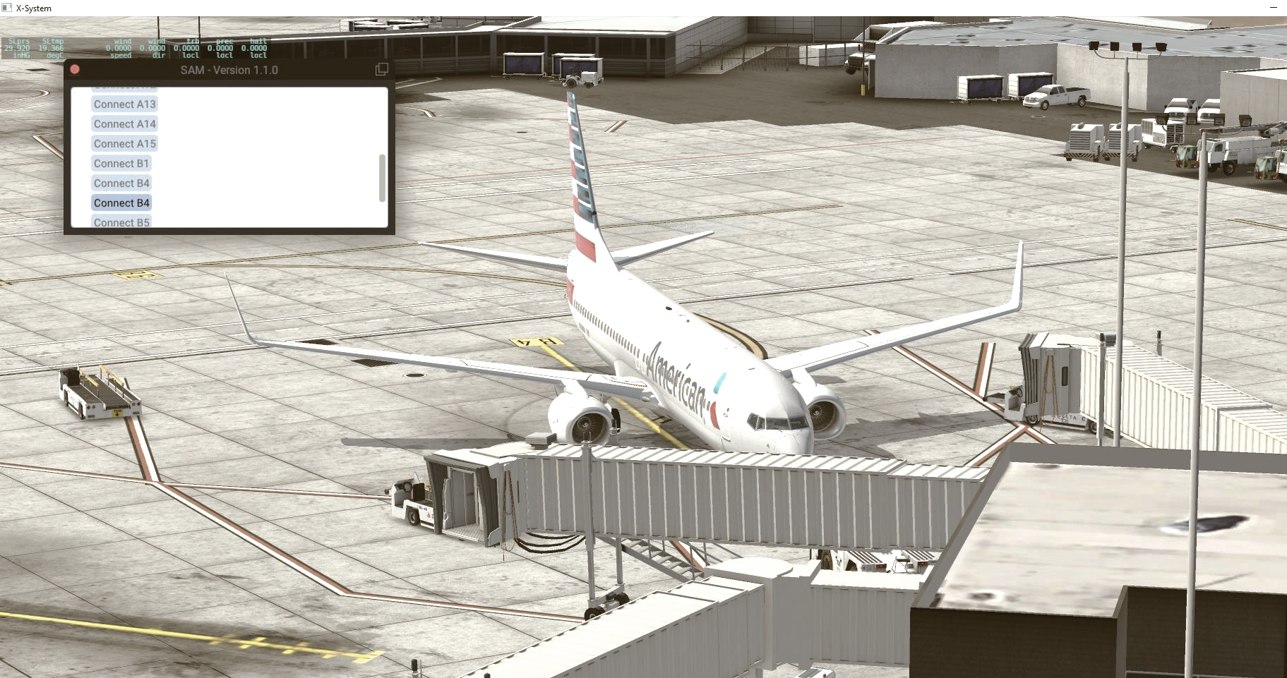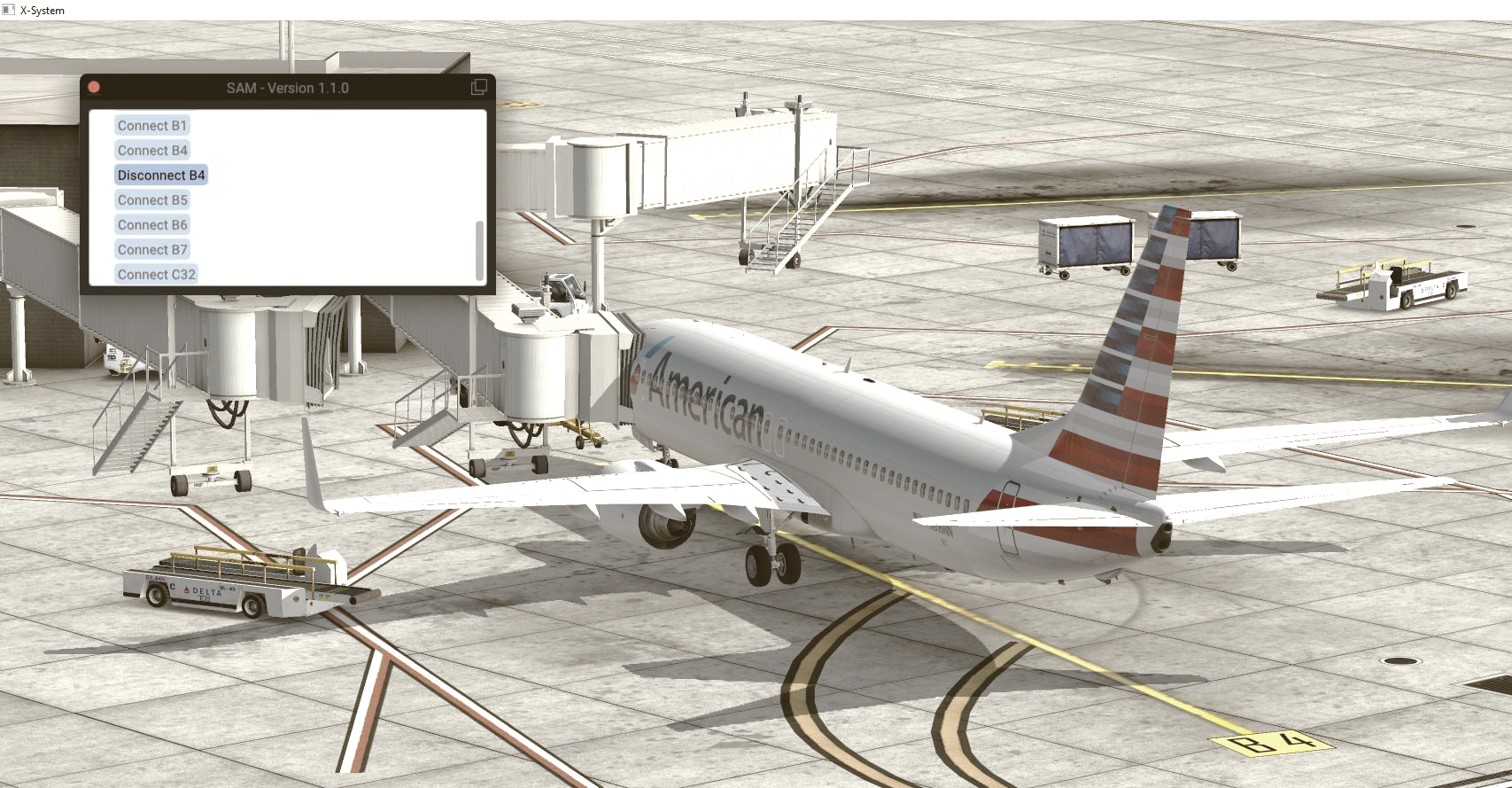 Before starting my ground tour, I wanted to use the Scenery Animation Manager plugin because this scenery is compatible with this utility. I loaded one of the XP11 airliners at a gate and this utility worked without issue. The default setting is to automatically connect the jetway which it did and is the first picture below. I unchecked this option which allowed me to disconnect the jetway from this aircraft. If you fly these types of aircraft, this utility will add to your simulator experience.