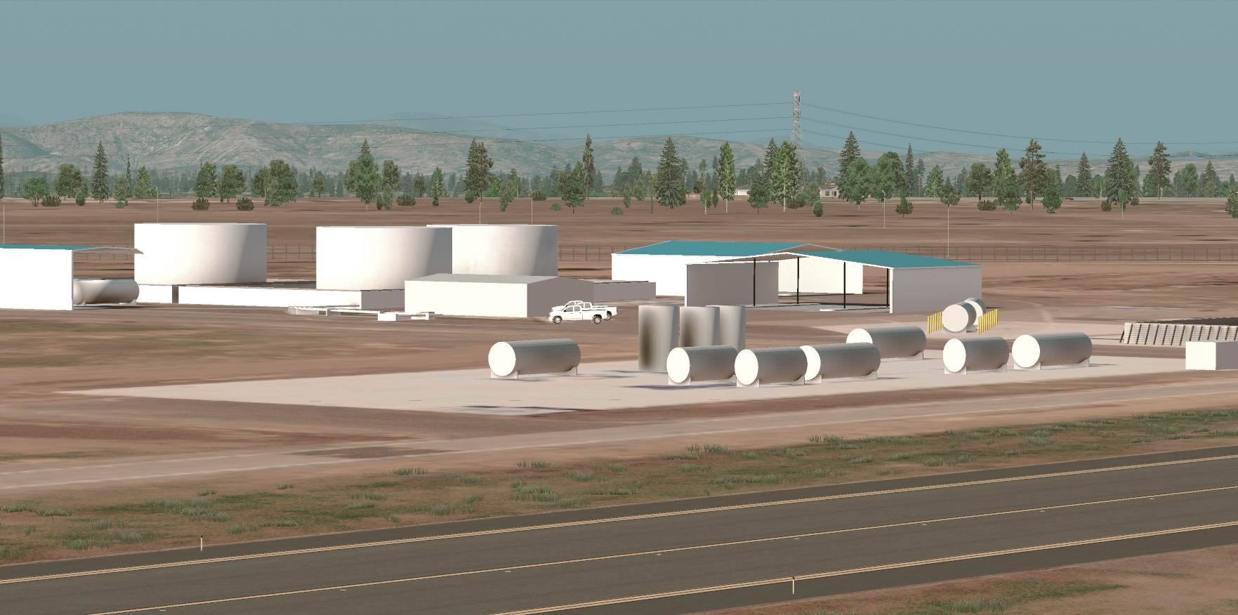 The quality of the airport structures is a mixed bag. Major structures such as the terminal look great, but the airport tank farm looks very generic. I expect better texturing with premium scenery. I would also like to see some signage (warning labels, company name, etc.), on the smaller tanks used for filling the fuel trucks. I have included a Google Earth image for comparison.