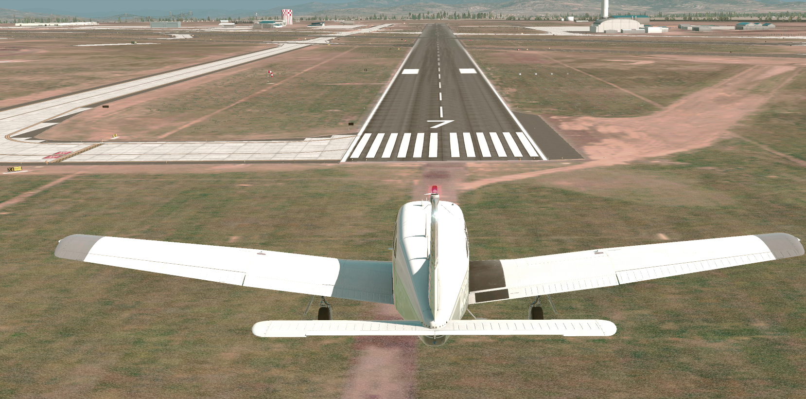For reviewing the ground objects and textures, I am first going to use the CAVOK weather preset for clear weather and calm winds. I will load the aircraft the aircraft at the various starting locations, compare it with an airport diagram on my iPad for accuracy and simulate walking around with XP11 Free Camera mode.