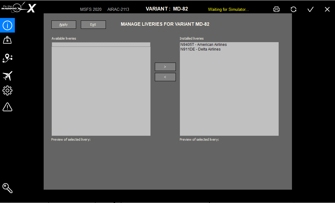 There are lots of peripheral features afforded to users by the developer. Between a large plethora of liveries, an extensive Load Manager, and an EFB, the developer has gone above their call of duty to ensure maximum immersion. Initially, a few high-quality liveries are available for downloads, such as Delta Air Lines, American Airlines, Alitalia, and Iberia. Accompanying these liveries is a user-friendly Load Manager. It allows users to configure the airplane as they please, ranging from cockpit color to tailcone shape. It’s also responsible for weight and balance data, livery installation, and activation. A few online tutorials outline the Load Manager’s features, including the livery installation process, which is unorthodox in the industry. Lastly, the EFB wasn’t a feature that the development team initially promised but delivered. It affords a few valuable features for the pilot, from performance management to door/ground service authority.