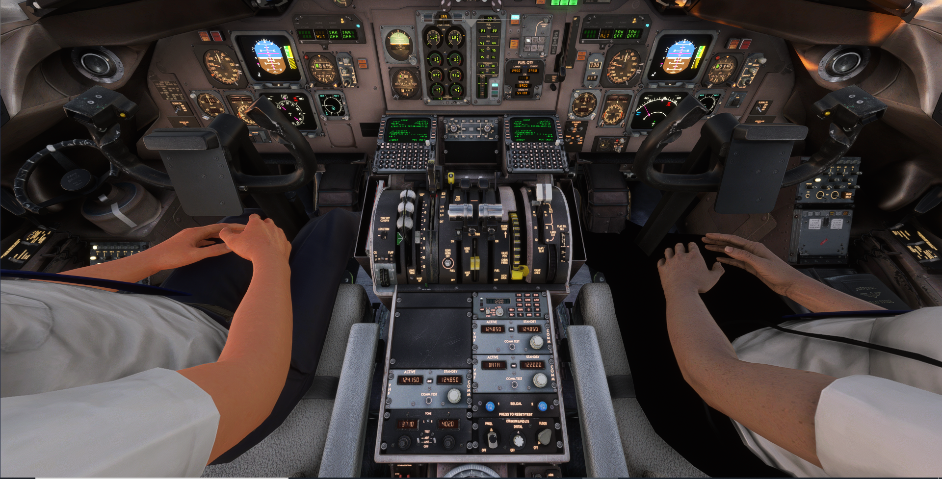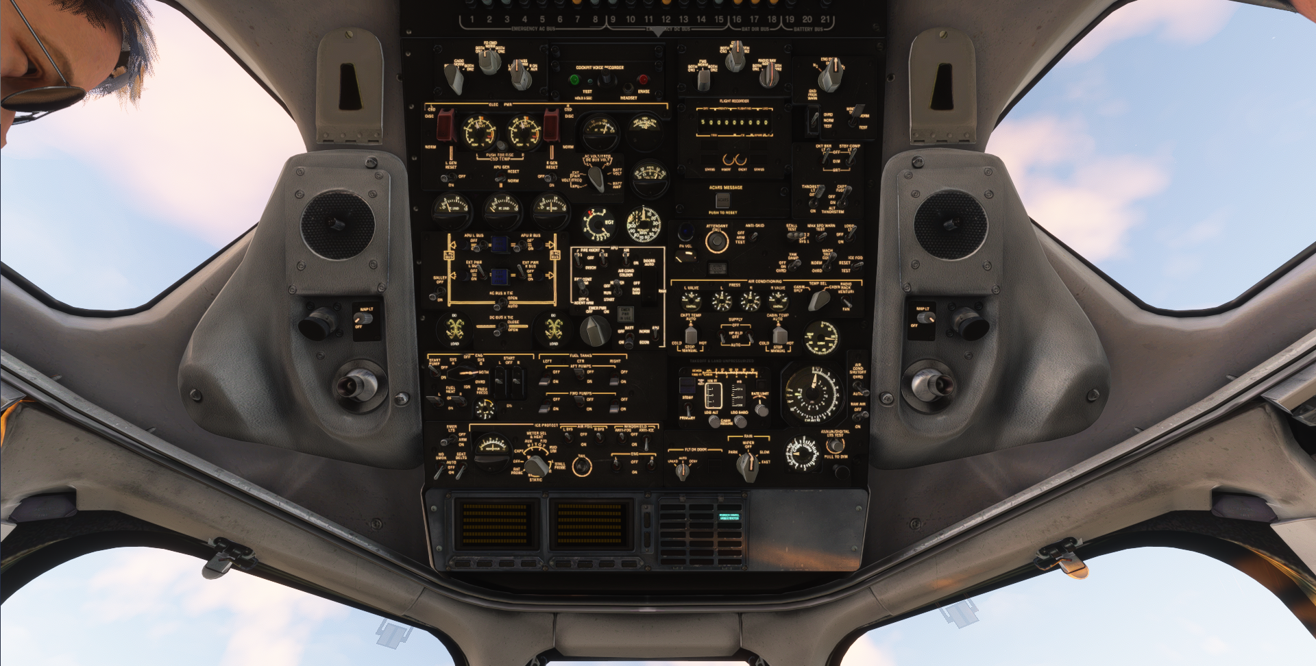 The rest of the cockpit, including the overhead panel, center console, and side panels, represents the actual aircraft with no notable discrepancies. All gauges and switches are interactive, 3D, and intensive. It’s a very satisfying cockpit to navigate.