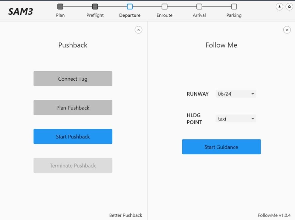 Earlier this year in April, Stairport announced their plans for v3 of SAM, including the details of what it will look like and the new UI revamp and teasing at integration with 3rd Party Addon, “Better Pushback”