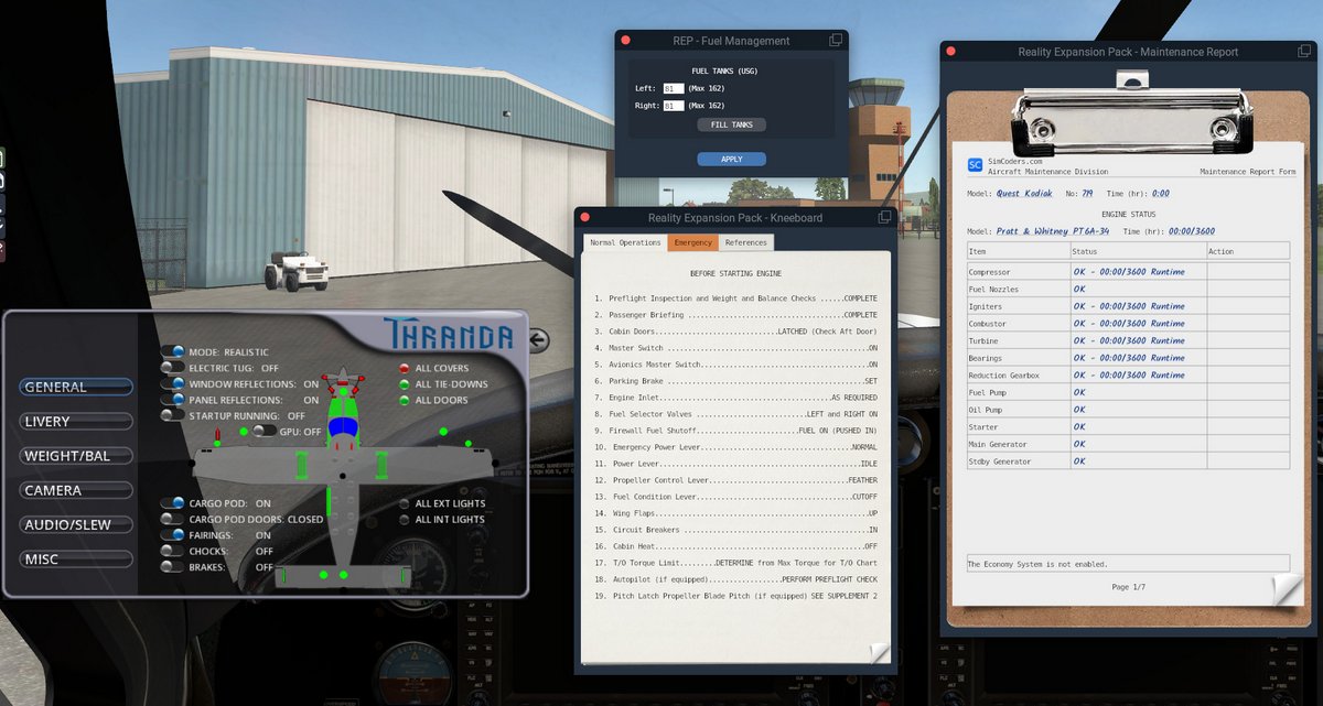 The latest entry in SimCoders’ popular Reality Expansion Pack series is now available, in the form of a package for Thranda Design’s recently released Quest Kodiak G1000.