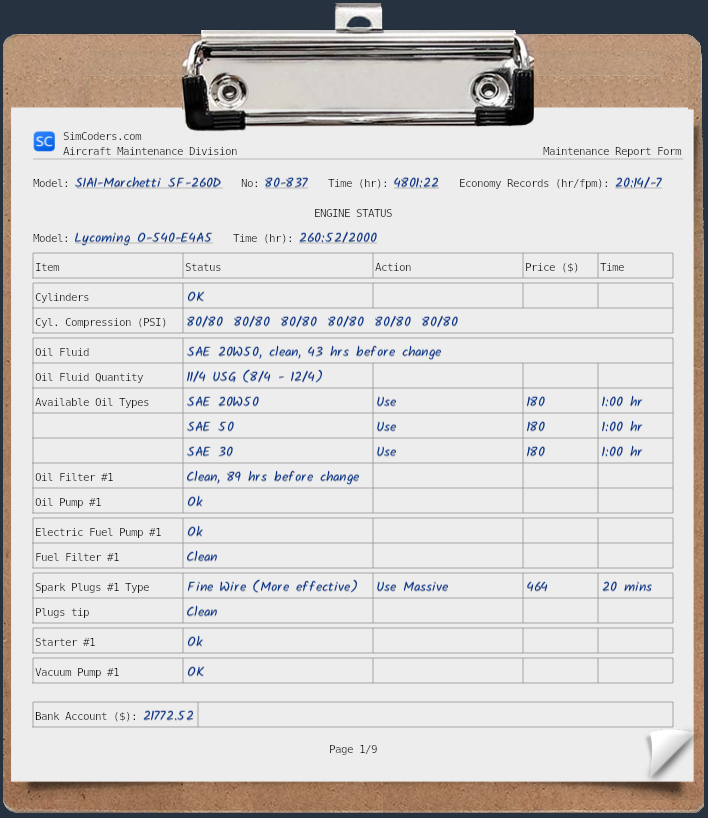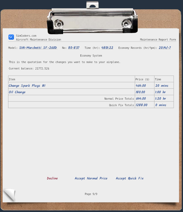 The main idea behind the economy system is that it rewards flight time and landings with virtual dollars, which can then be spent on fuel, maintenance and more.