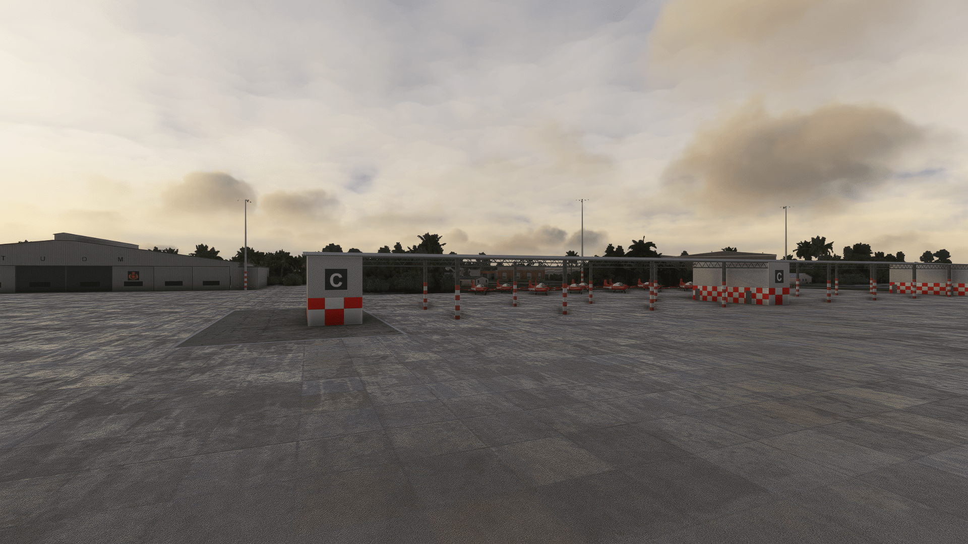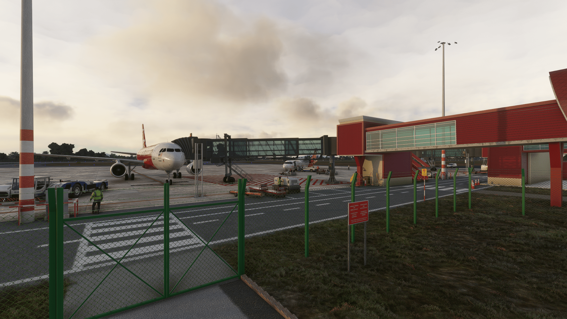 The scenery features an accurate rendition of the airport, with custom terraforming, custom scenery objects, a terminal interior, hand-placed taxiways, full day and night cycle, hand-crafted ground markings and textures, and more.