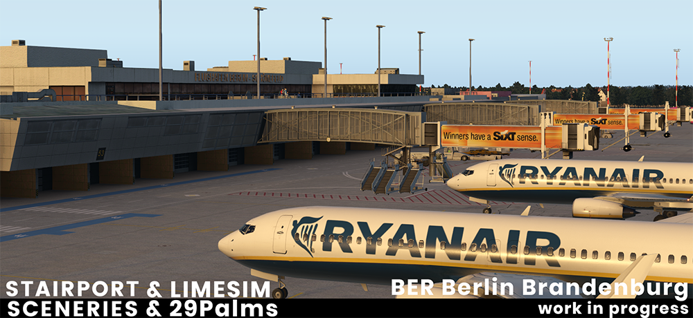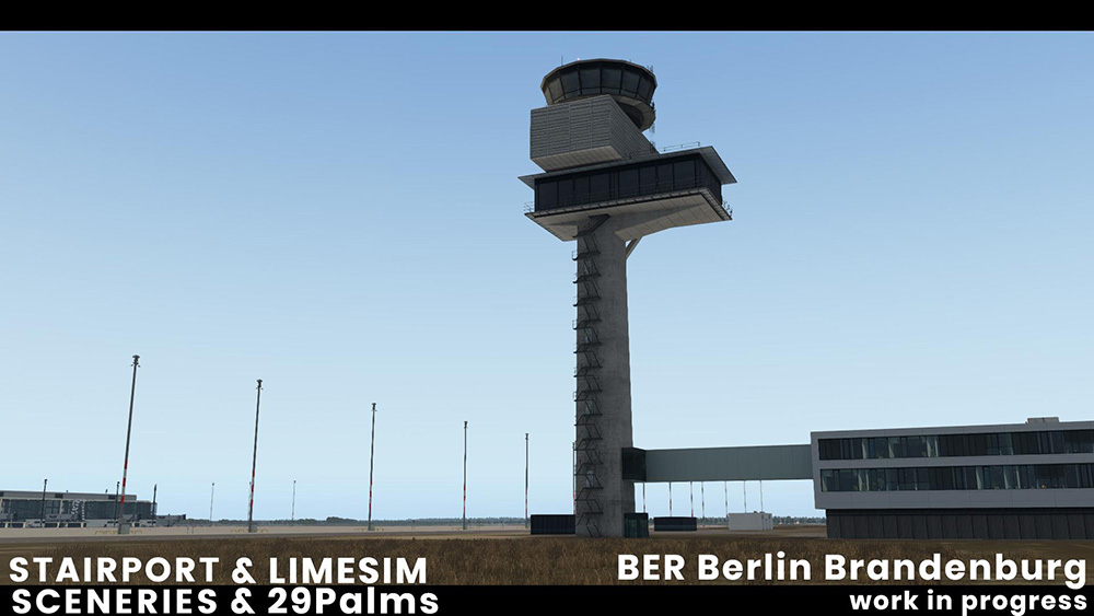 Stairport Sceneries’ latest ESP-platform conversion is now well under way and with the help of LimeSim and 29Palms, Berlin Brandenburg Airport (EDDB) looks to be closing in on completion. We previously reported on Brandenburg XP back in November, upon its announcement.