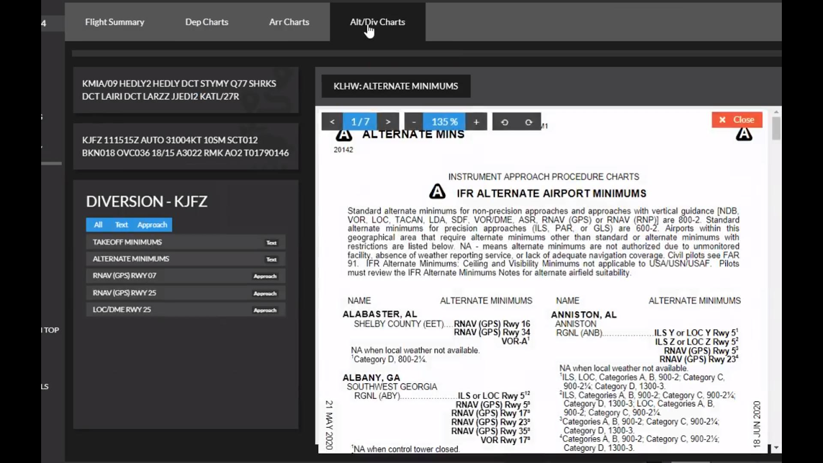 Once the Captain has successfully locked in their alternate aerodrome, a new “Alt/Div Charts” page becomes available to view from the “Flight Summary” tab. STKP will automatically fetch the latest available charts for them from STKP Charts (ChartFox will no longer be available) and these will be available to the user on the “Alt/Div Charts” page.