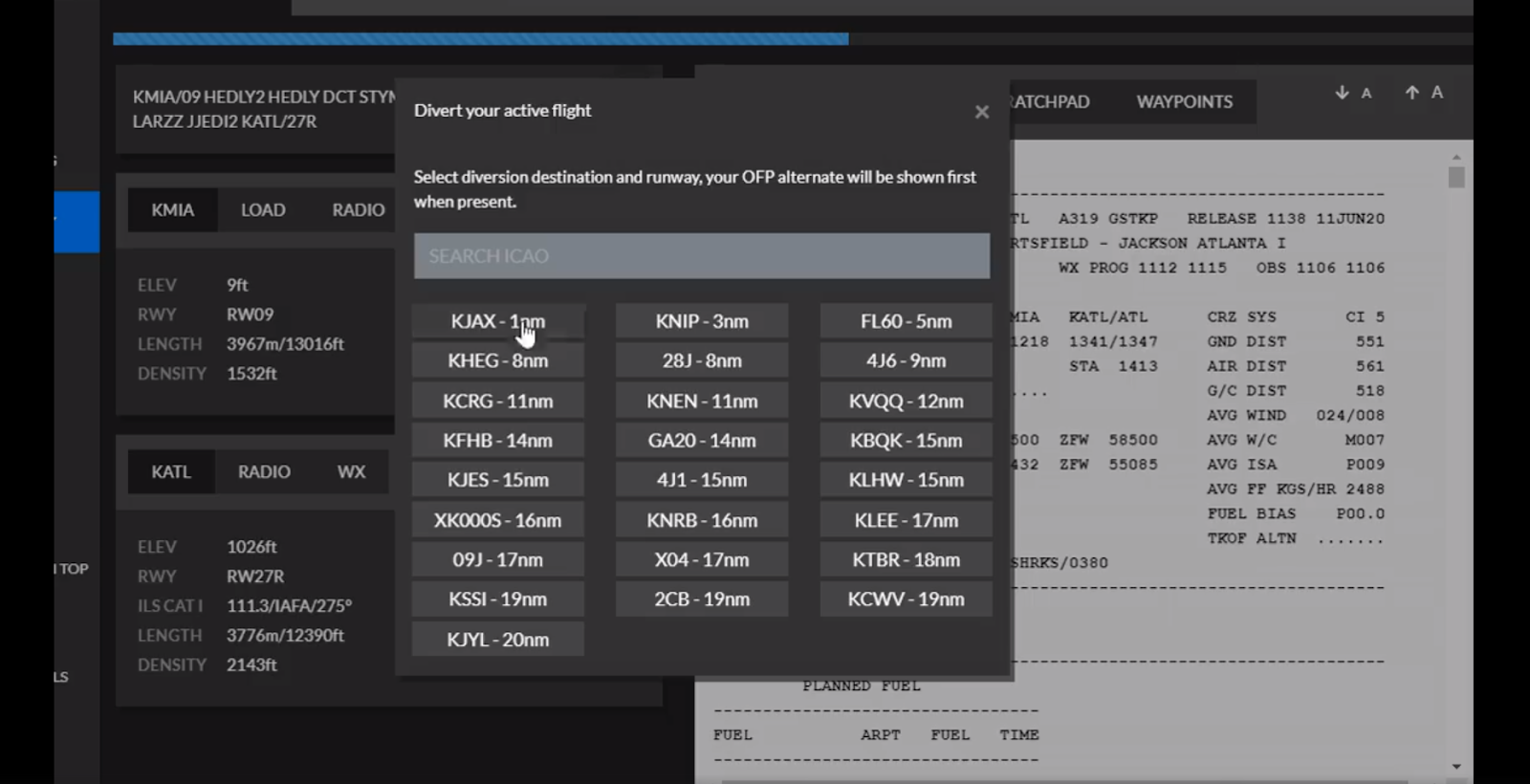 On their Facebook page, the developers issued a short video showcasing the manual process of selecting a diversion aerodrome.