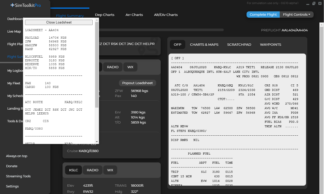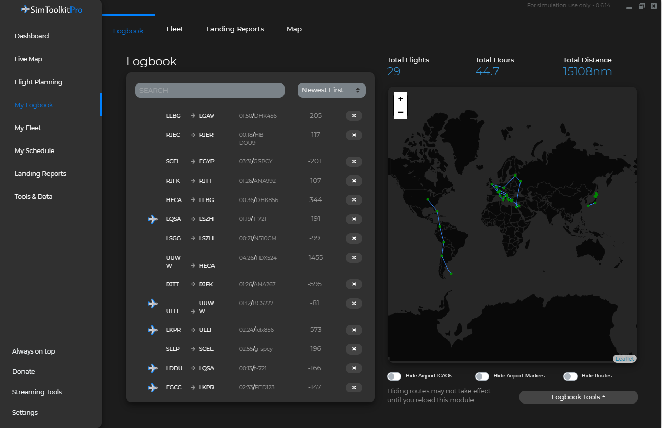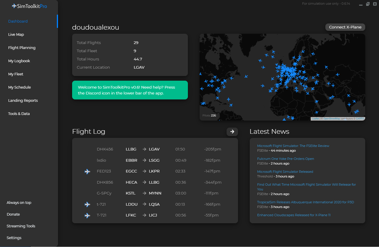 SimToolkitPro is an electronic flight bag (EFB) software originally compatible with both X-Plane and Prepar3D, today on, Microsoft Flight Simulator is also compatible. The program includes flight planning via SimBrief, an airport database, flight logging, a landing tracker, a live tracking map and much more. Recently, the developer added support for Chartfox; a free chart database for flight simulation as well as a new database with airline routes.