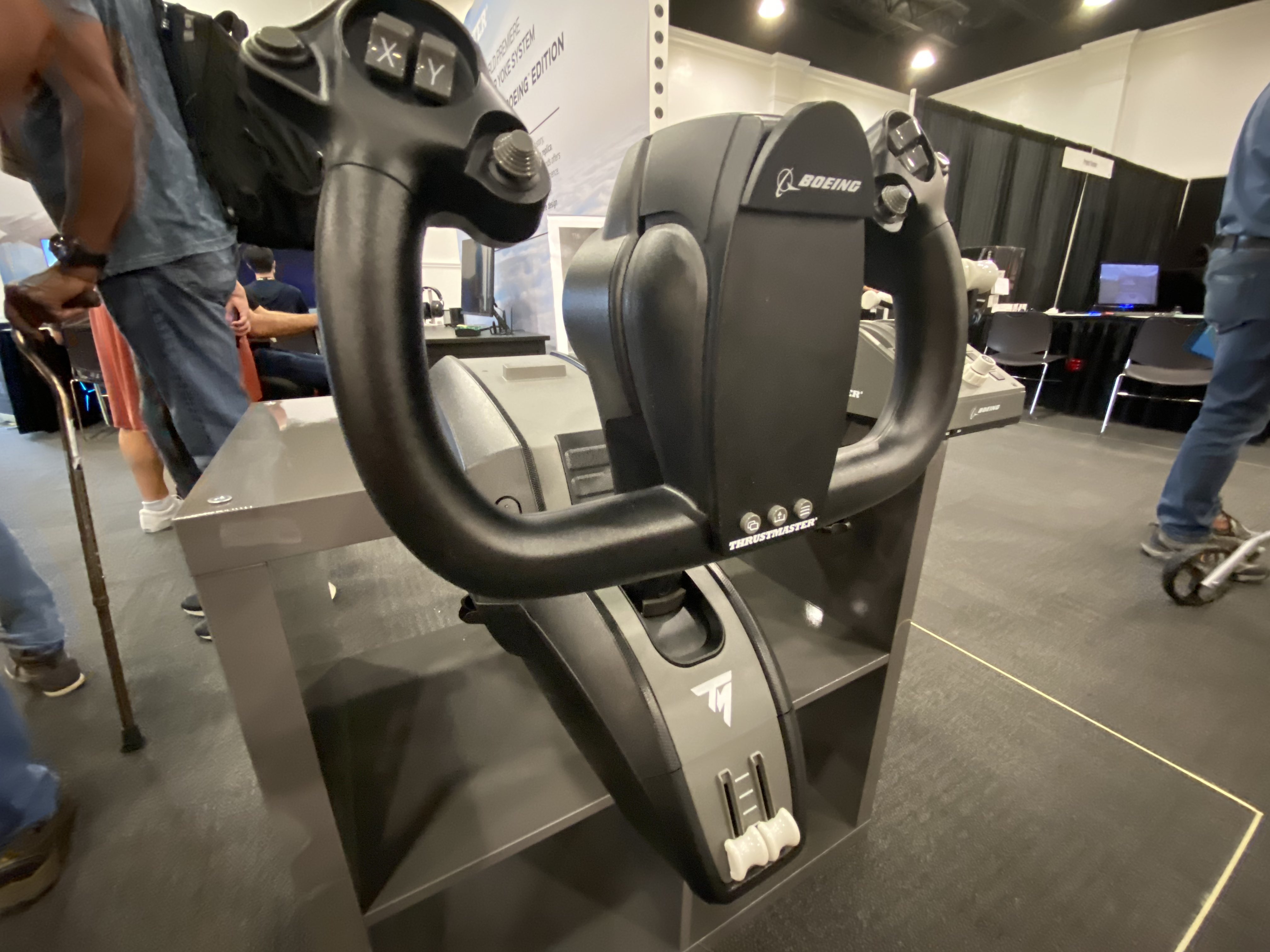 With FSExpo well and truly underway, visitors on sight have spotted a particularly interesting bit of hardware at the Thrustmaster stand. The sim hardware manufacturer has laid out a version of their TCA Boeing edition for show.
