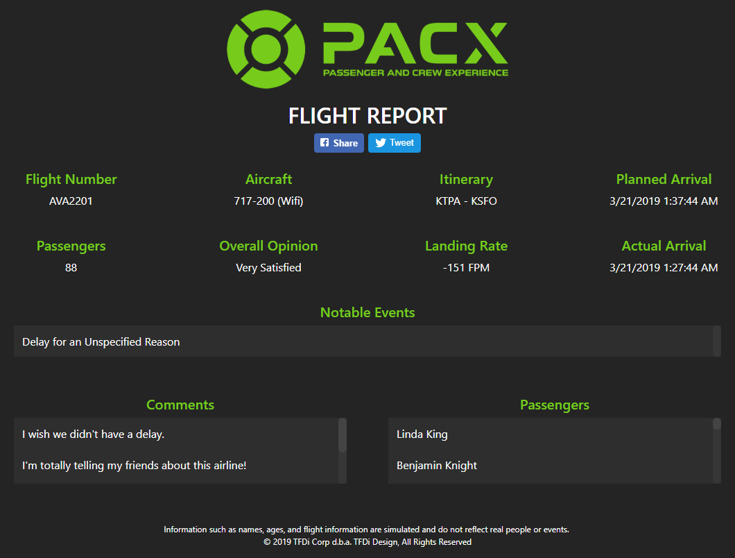 • Web-based flight reports can be easily shared with friends or virtual airlines