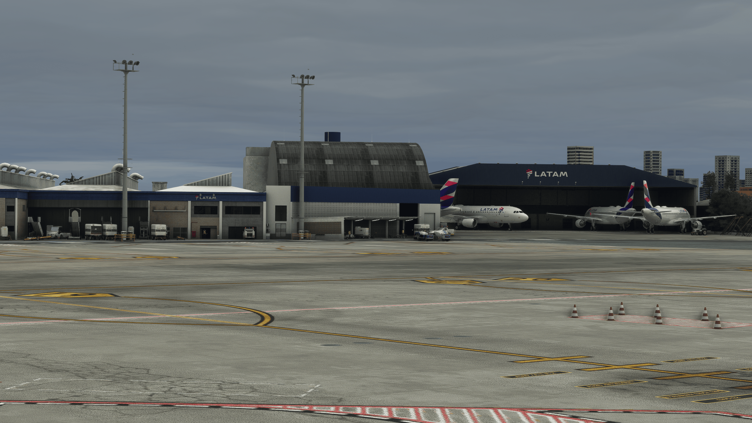 Paulo Ricardo’s rendition of Congonhas Airport aims to deliver an authentic and immersive experience of flying into one of the most challenging airports in Brazil, with custom ground textures, an accurate replica of the main passenger terminal, custom jetways, an up-to-date ground layout, custom ground clutter, landside buildings, maintenance hangars, hundreds of hand-placed buildings and landmarks, and much more.