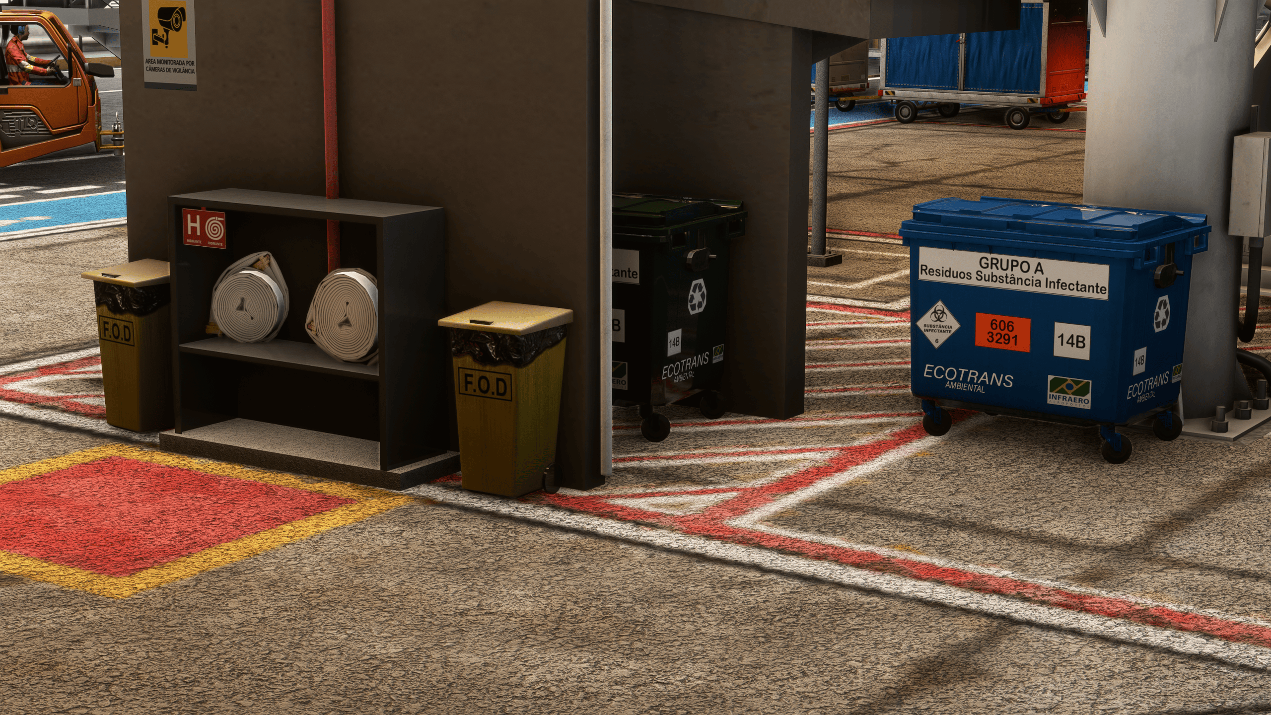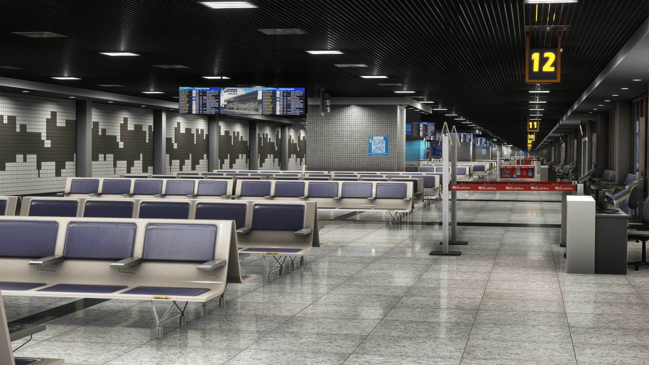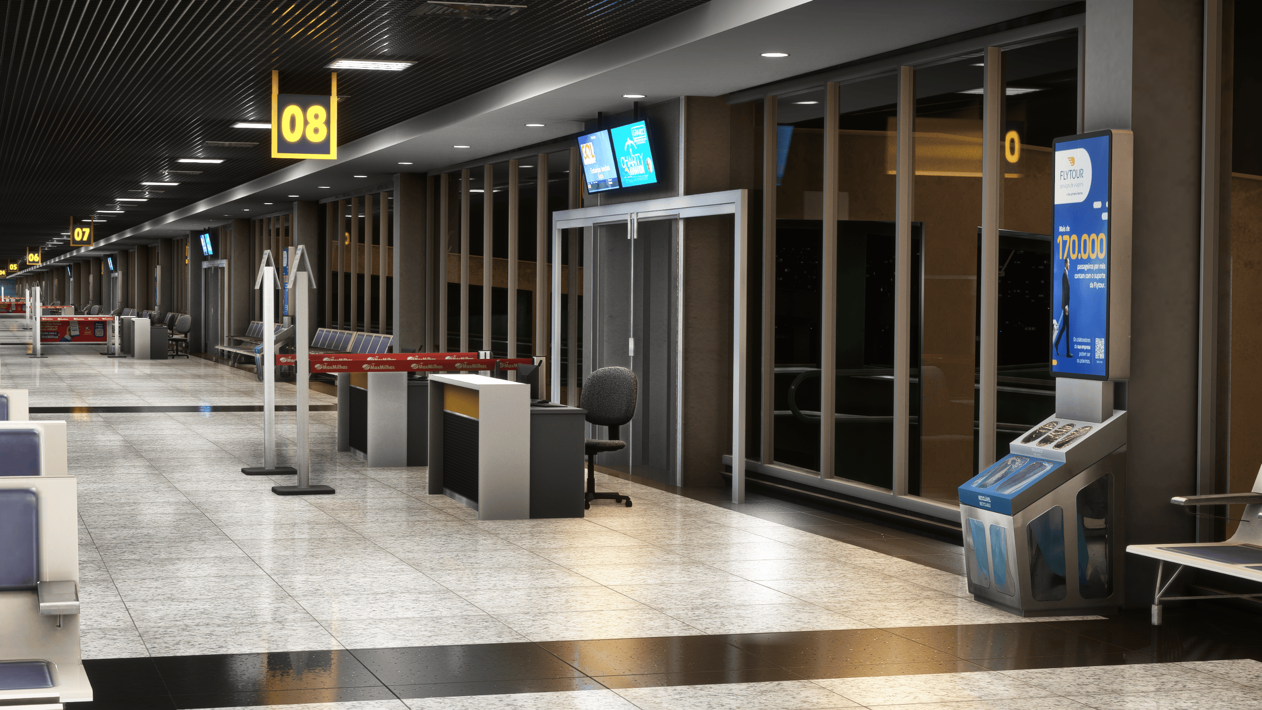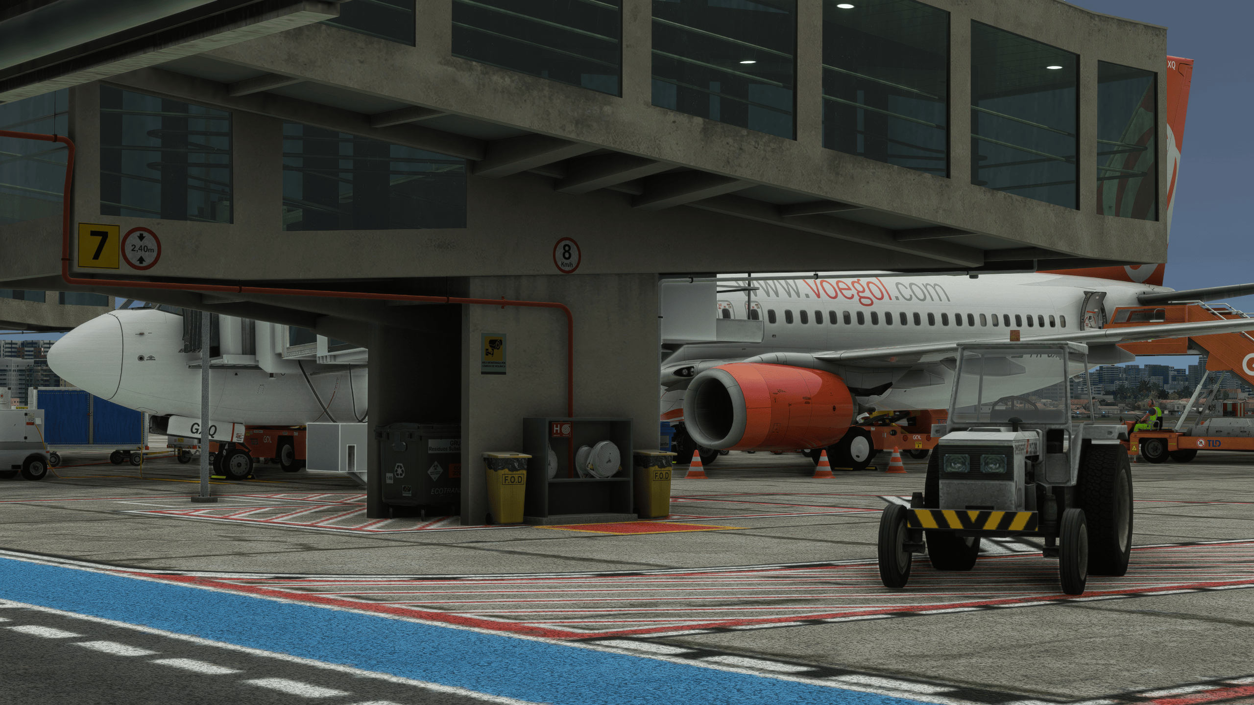 Most, if not all warning signs, stickers, logos, and so on are fully readable and sharp, be it on the airside or inside the terminal, which adds up a lot to the immersion factor. While the terminal interior is not as detailed as his previous work (Viracopos), it’s still impressively good and close to the industry standard, providing an acceptable representation of how things are laid out inside and allowing for great “boarding” screenshots, as seen below.