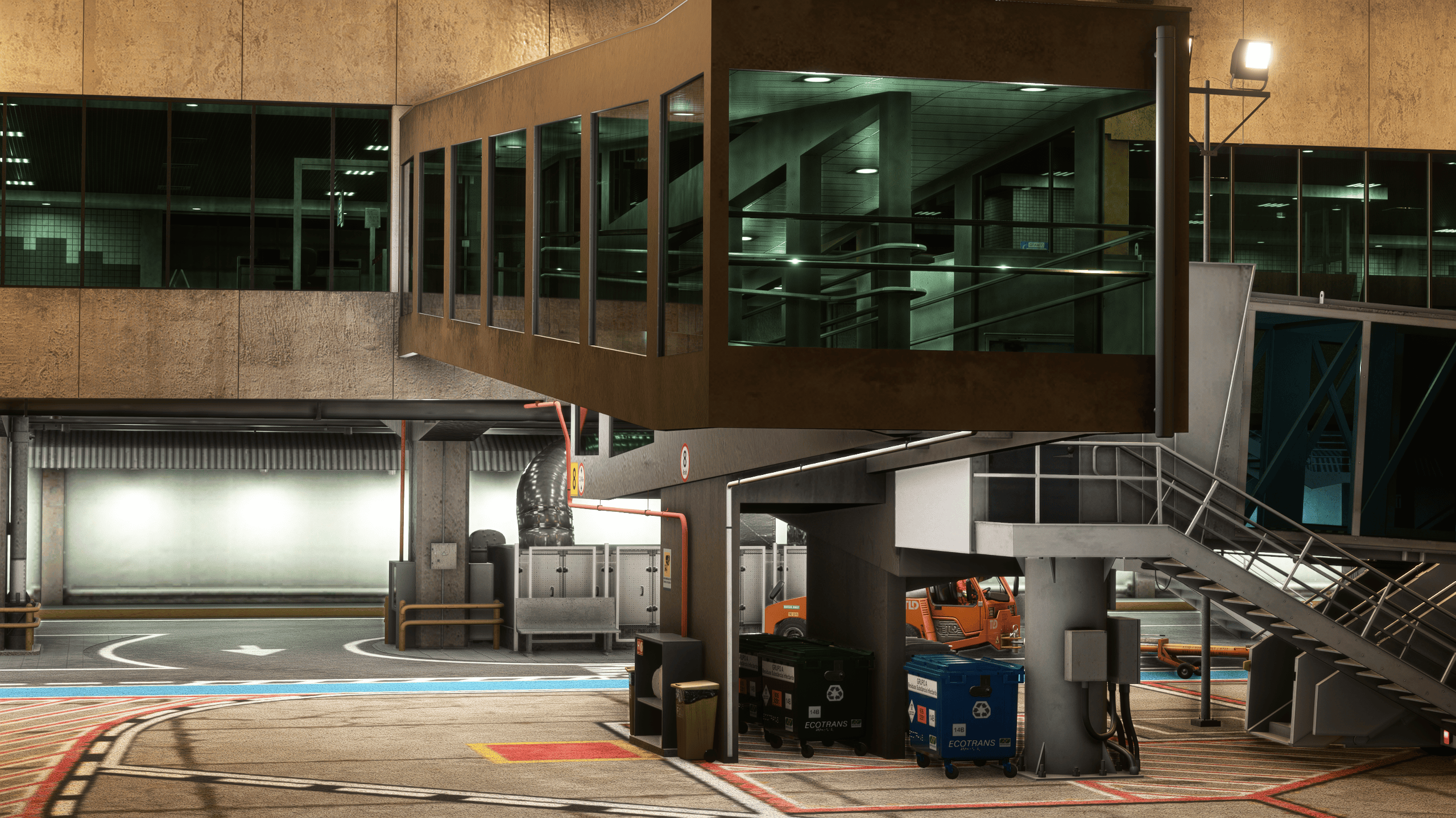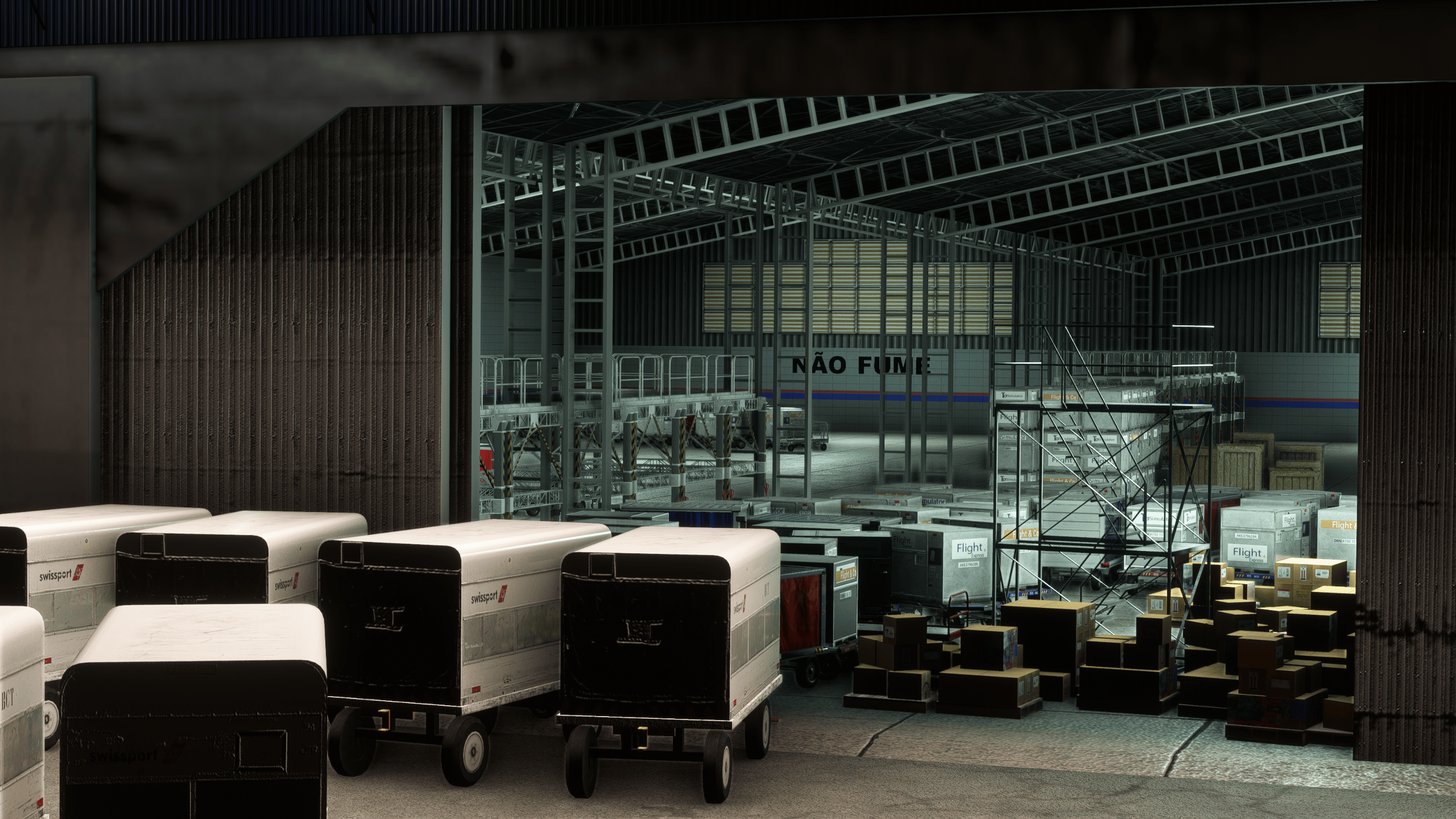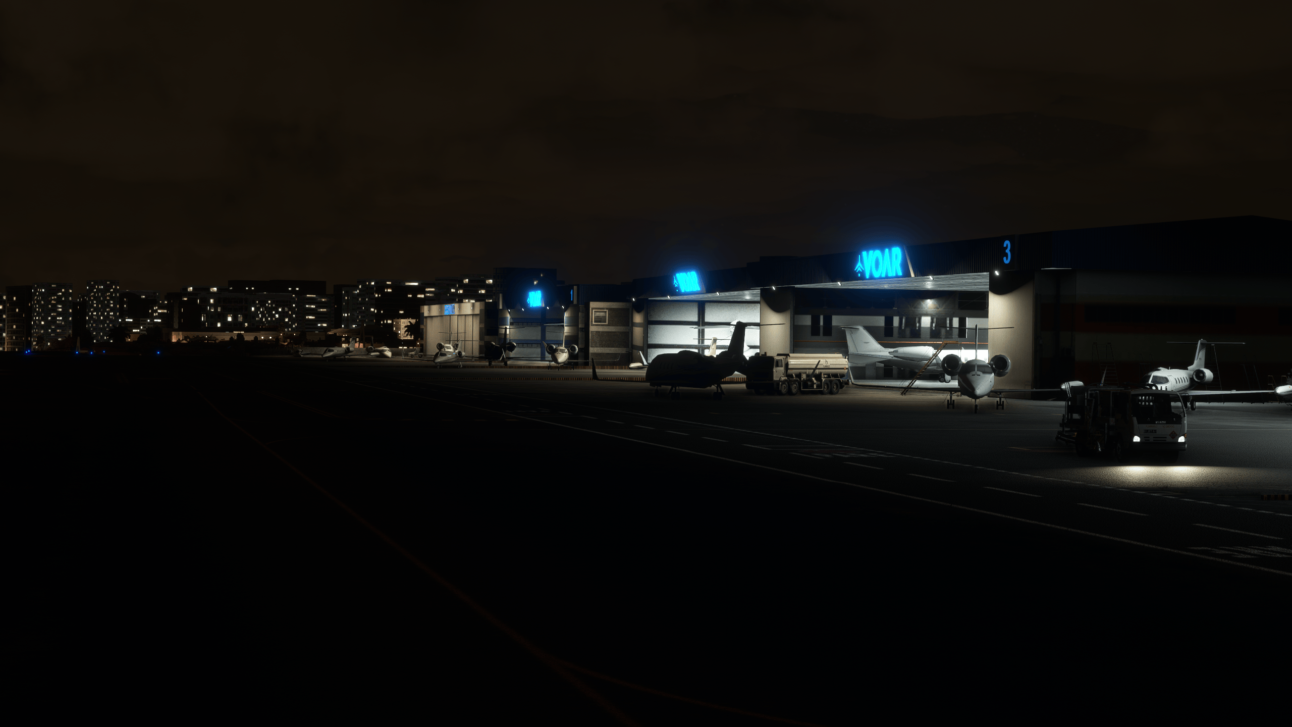 While the passenger terminal, maintenance hangars, and cargo hangars have a fully modeled interior, the control tower and some of the least important buildings are entirely flat, with window textures on them instead of parallax shenanigans to at least make it look like it has an interior. While it’s hard to notice that during daytime, it becomes a bit evident at night.