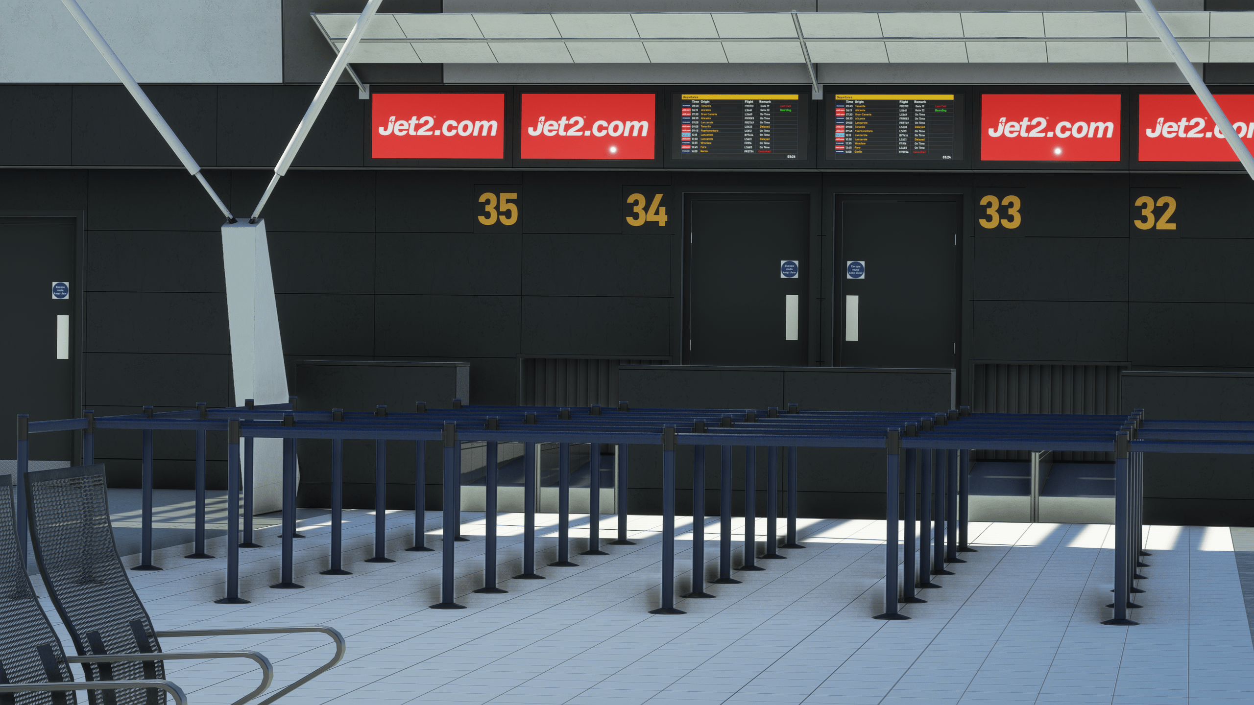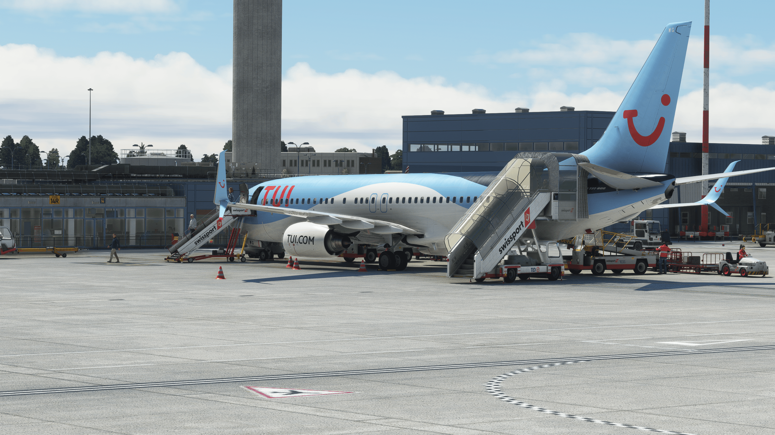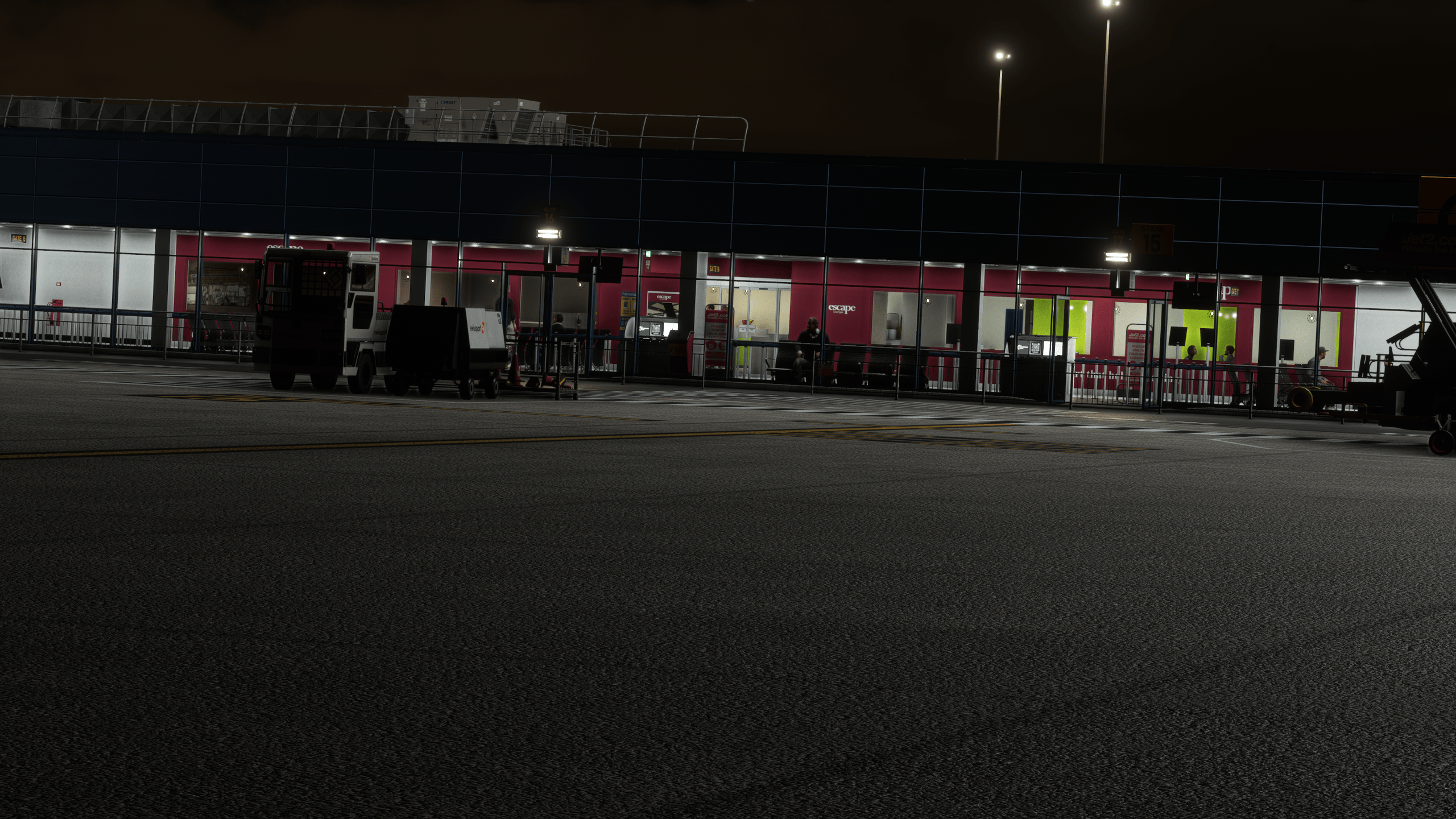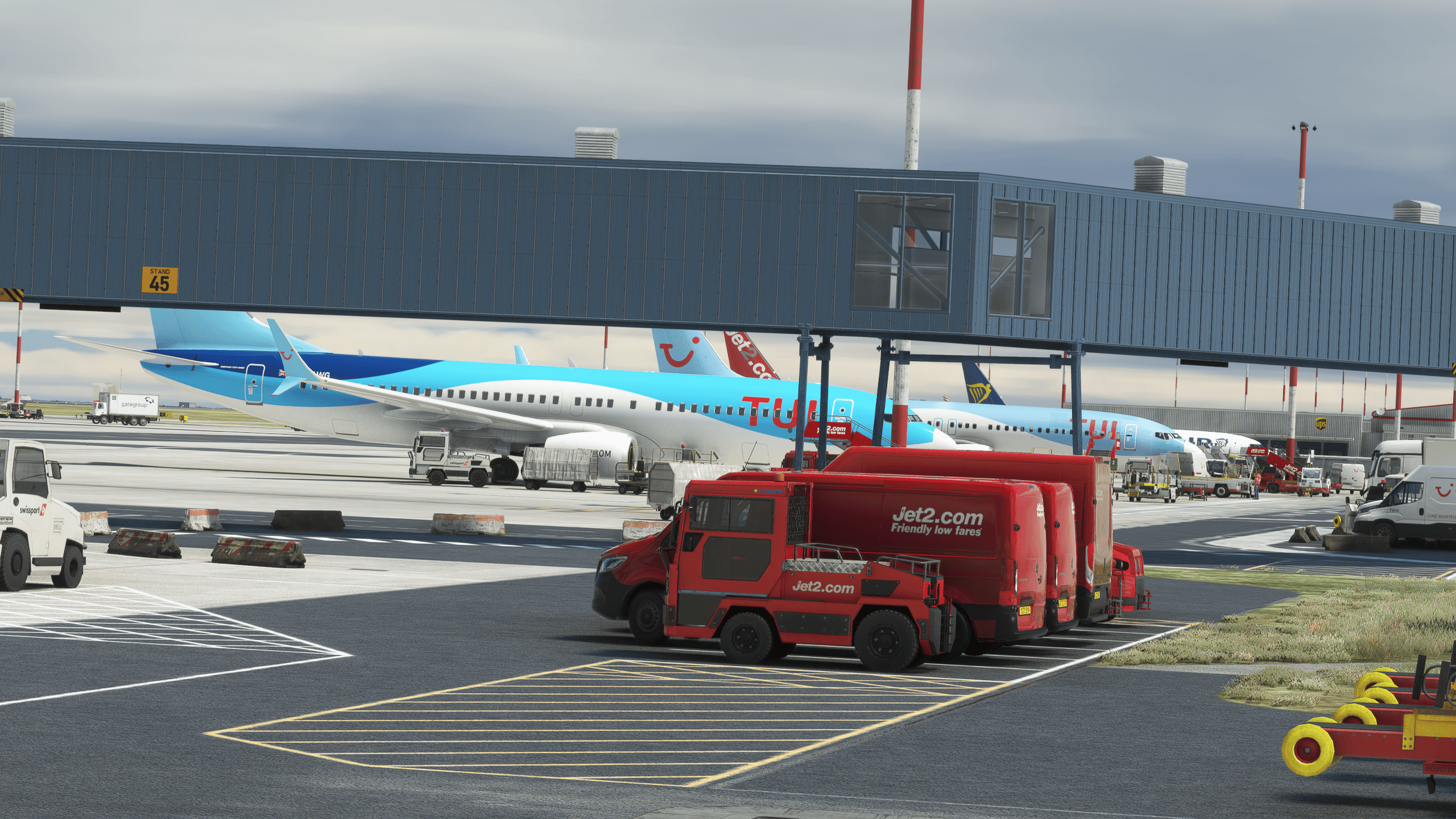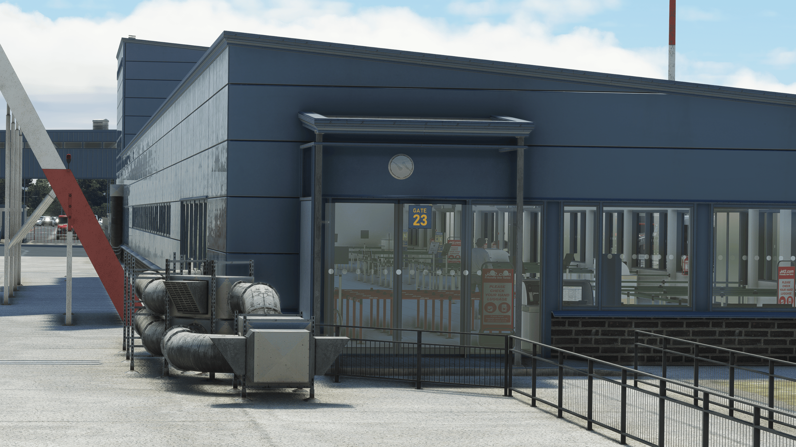 The airside is equally impressive, with readable warning signs everywhere, proper stand signage on the wall, PBR texturing everywhere, and readable air conditioning units (you know, I love them!). It’s hard not to feel like you are in the East Midlands.