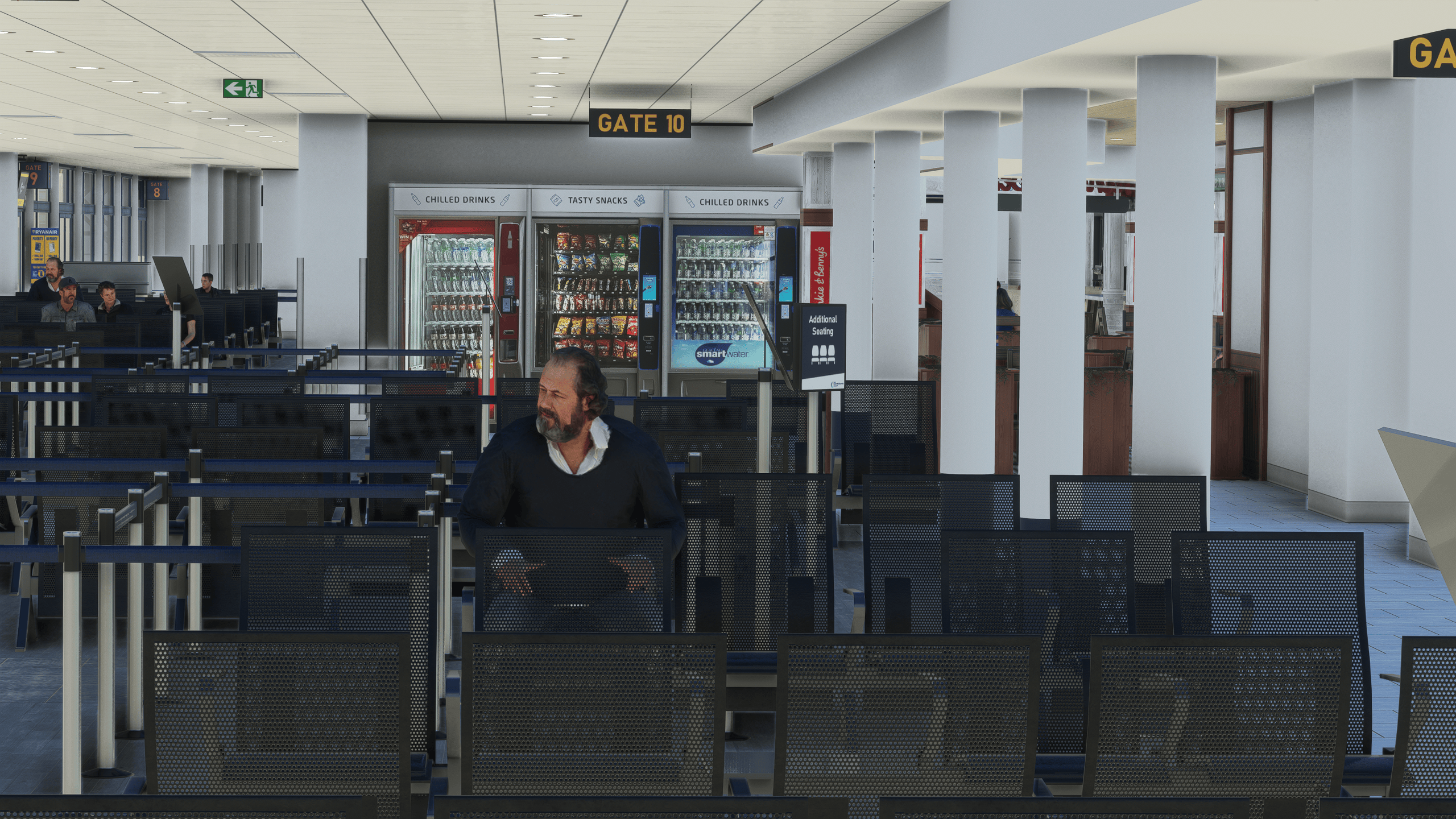 The interior work is out of this world, with detailed restaurants, bars, check-ins, lounges, queues, televisions, computers, etc. In true Pyreegue fashion, no inch of detail is left behind. It’s all in there, somehow. It gets even more impressive with the community-made GSX Profile (available on flightsim.to), where the gate doors open and the passengers come in and out.