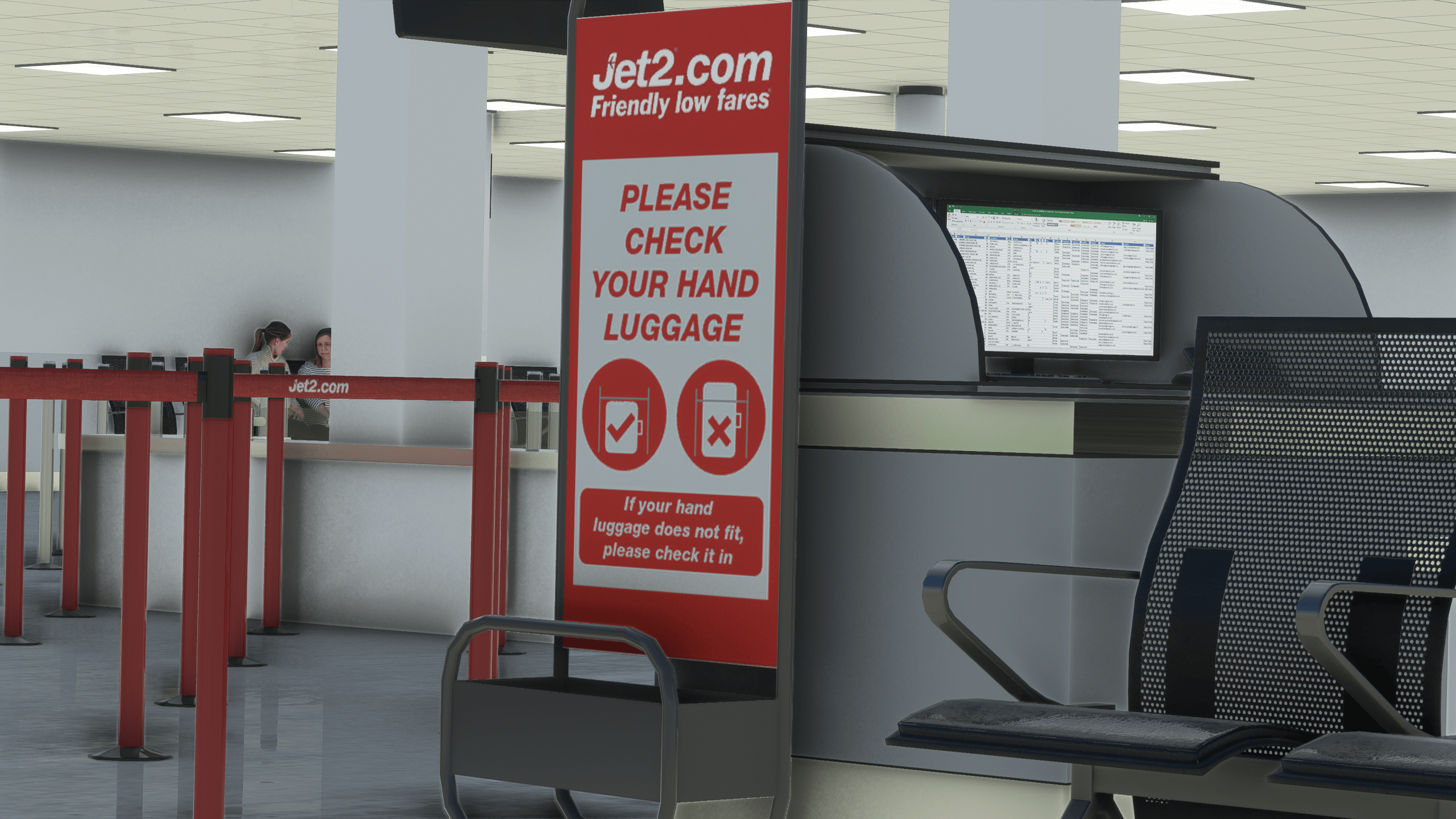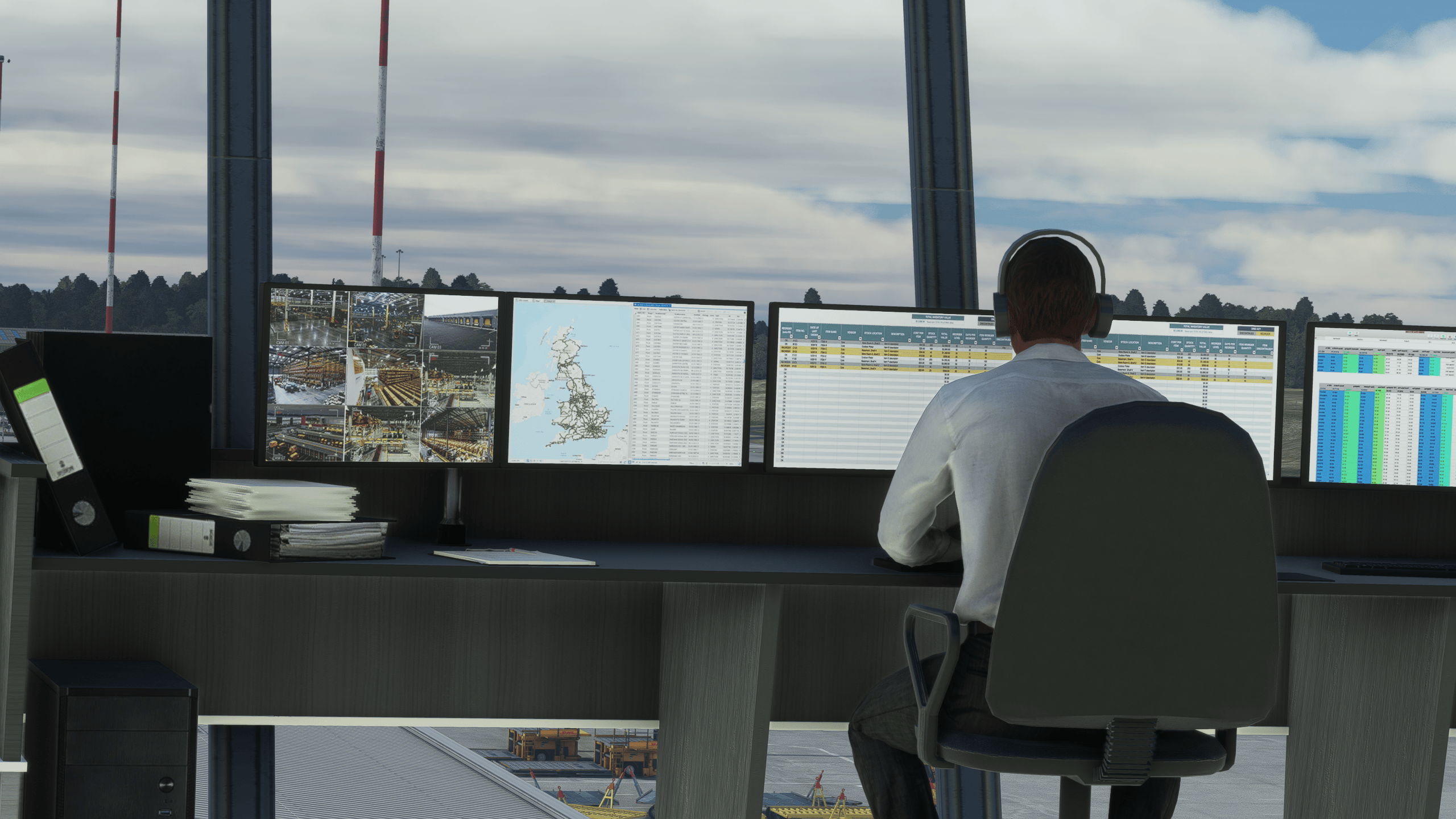 After parking on Stand 14R, I was instantly taken aback by the sheer amount of detail inside the terminal, conveniently transparent: everything in there was properly modeled, with no compromises in terms of texture quality, meaning even the Microsoft Excel on the computer screen was nearly readable, which is impressive.