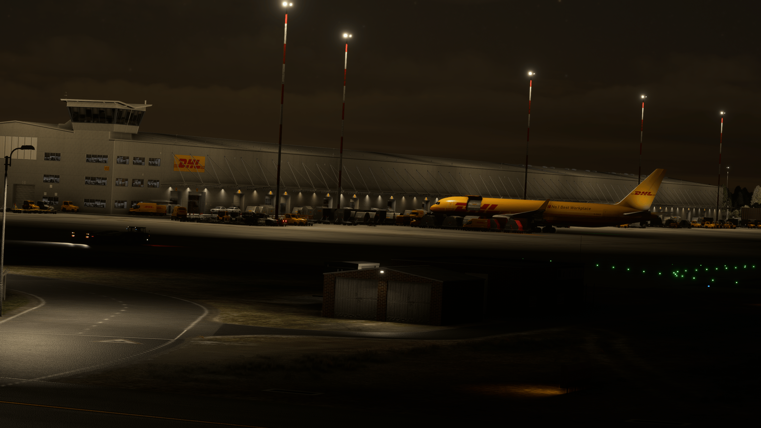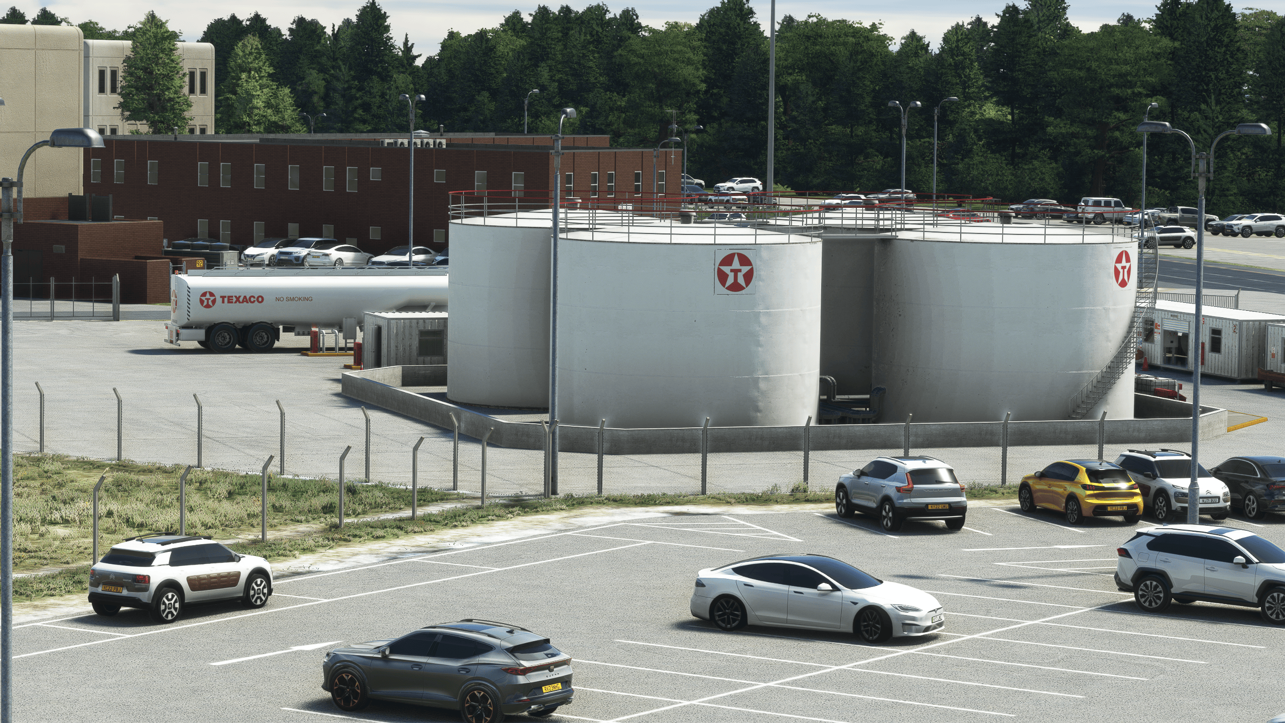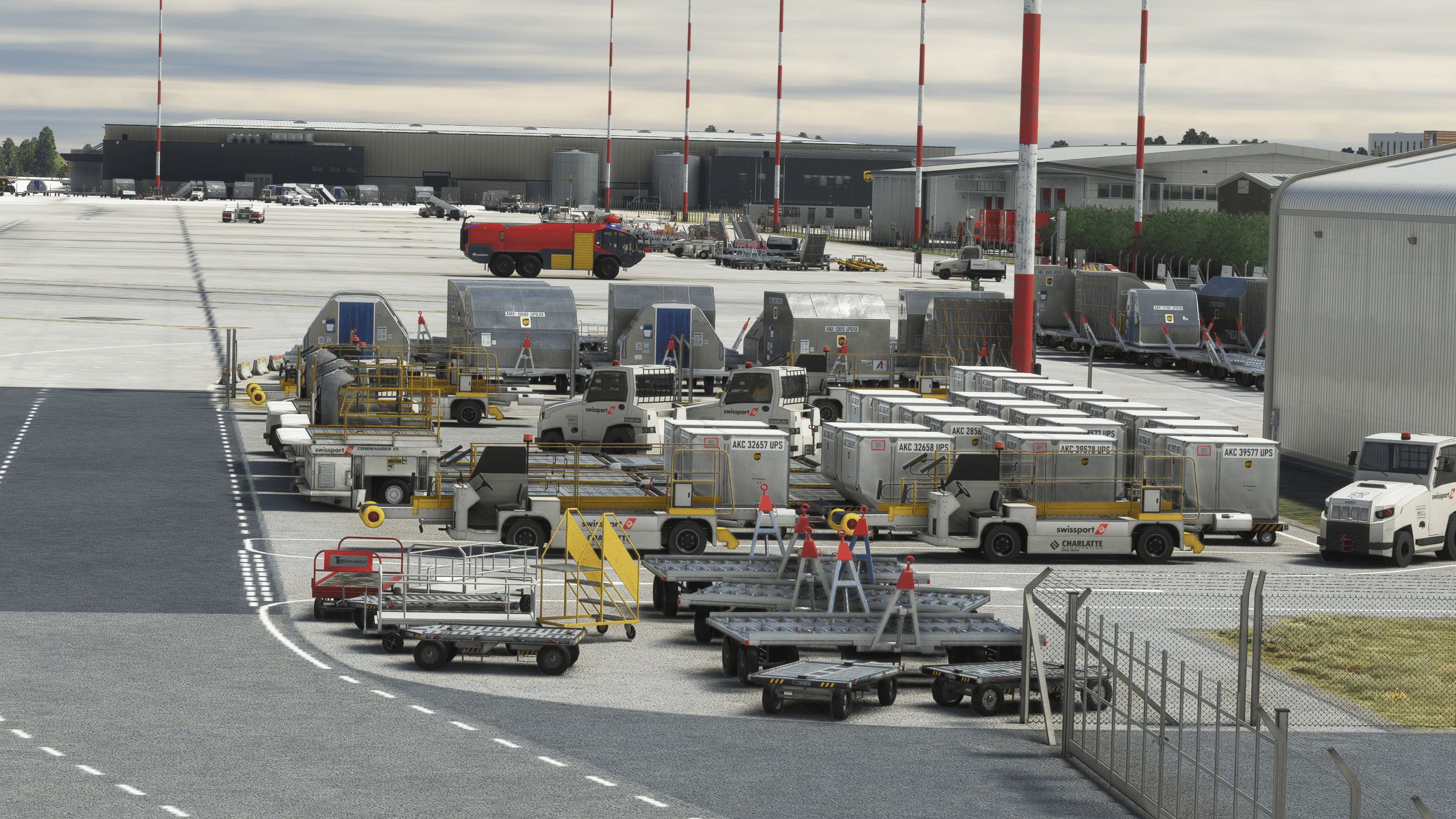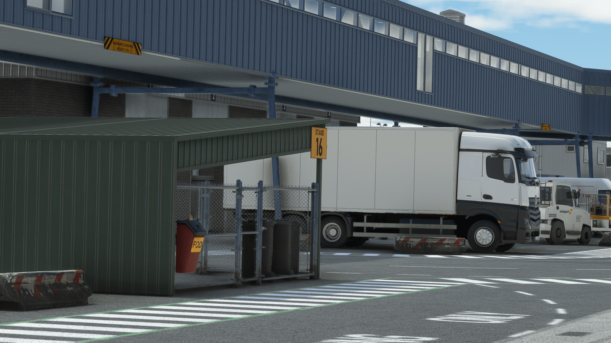 It’s by far the most impressive landside work I have seen. Everything is modeled with an outstanding level of detail, obviously not as high-quality as the main dish for performance reasons, but impressive enough nonetheless. Everything is there, from a BP gas station to the many transport companies around the airport and their respective trucks and trailers.