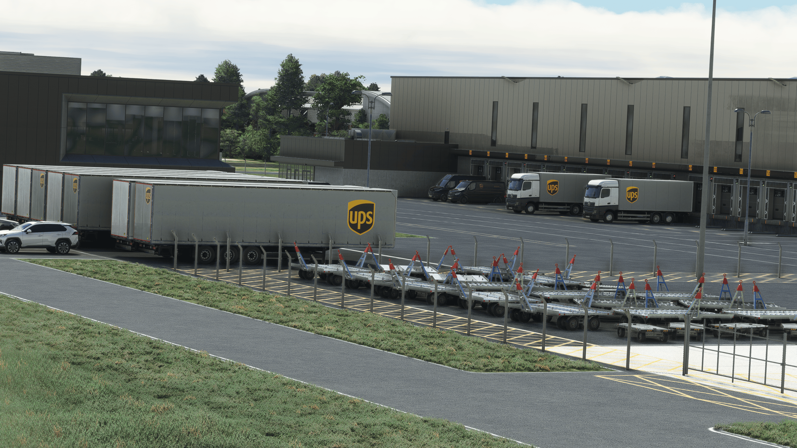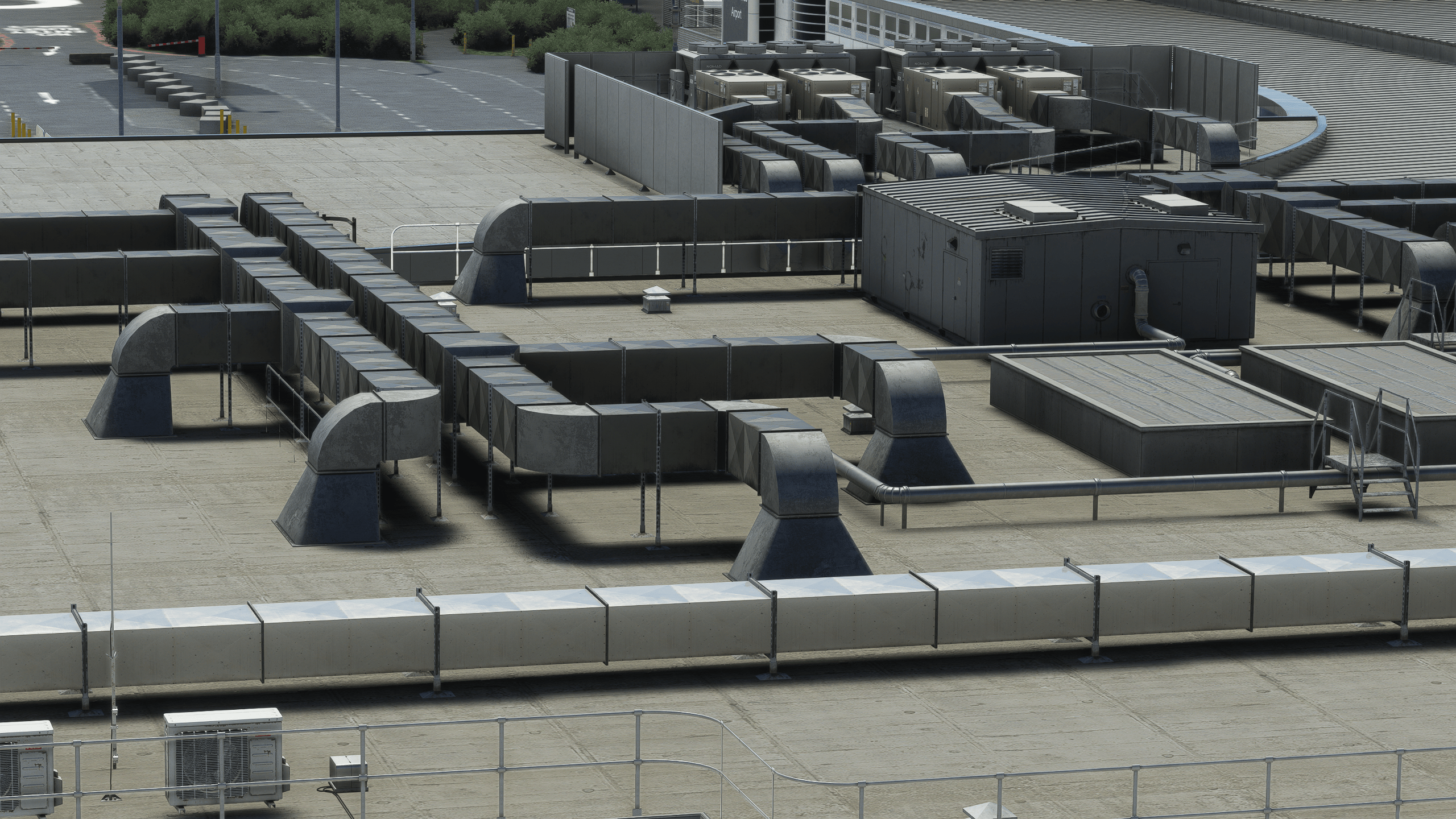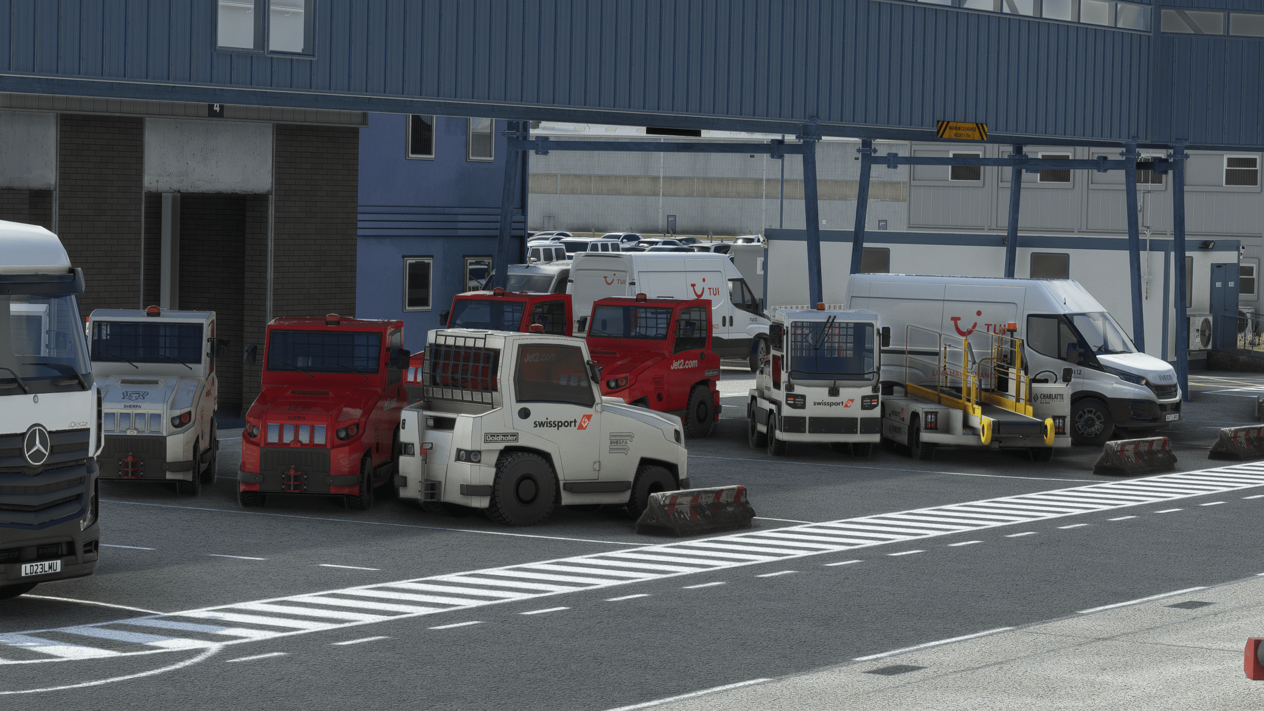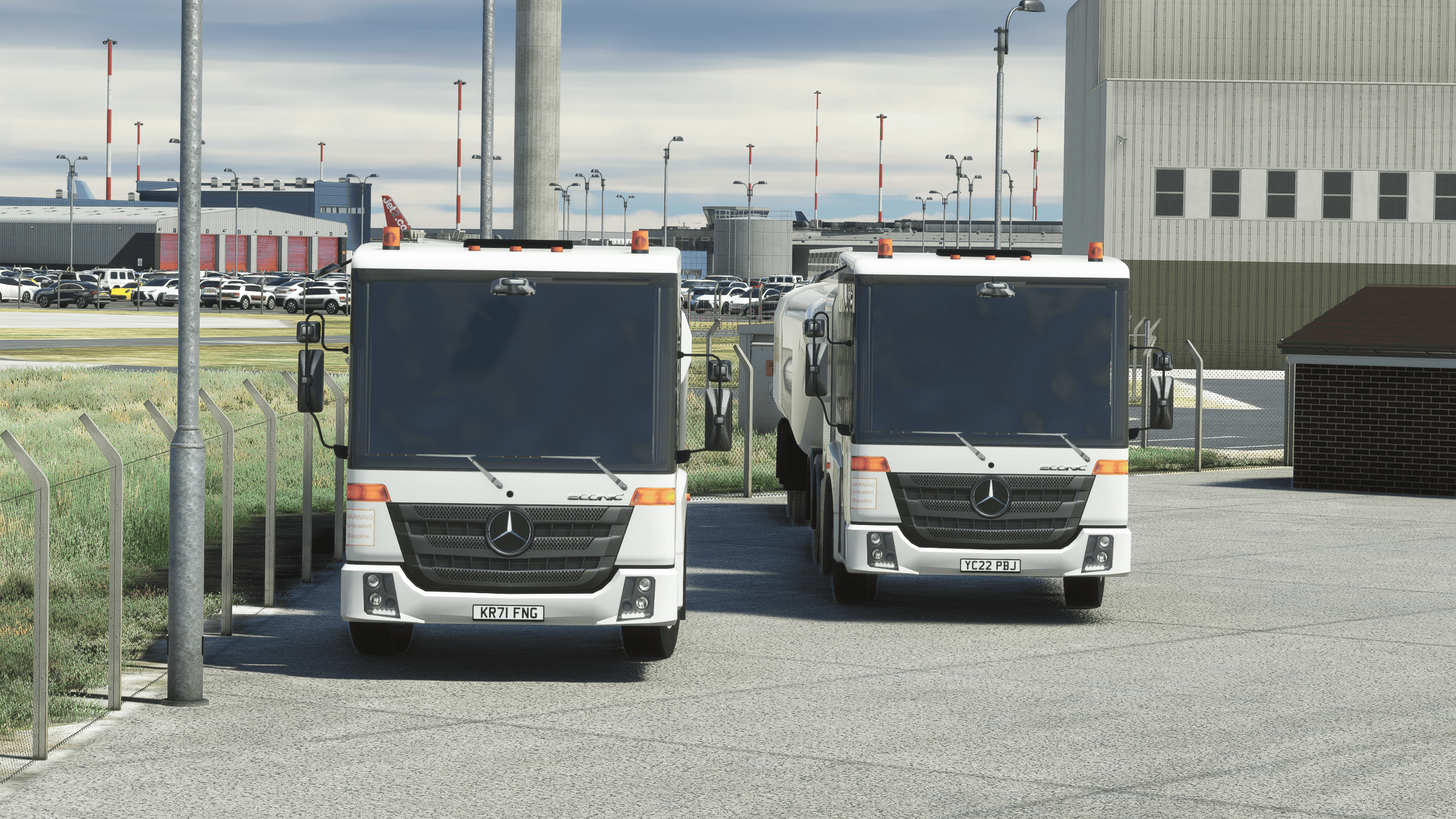 It’s by far the most impressive landside work I have seen. Everything is modeled with an outstanding level of detail, obviously not as high-quality as the main dish for performance reasons, but impressive enough nonetheless. Everything is there, from a BP gas station to the many transport companies around the airport and their respective trucks and trailers.