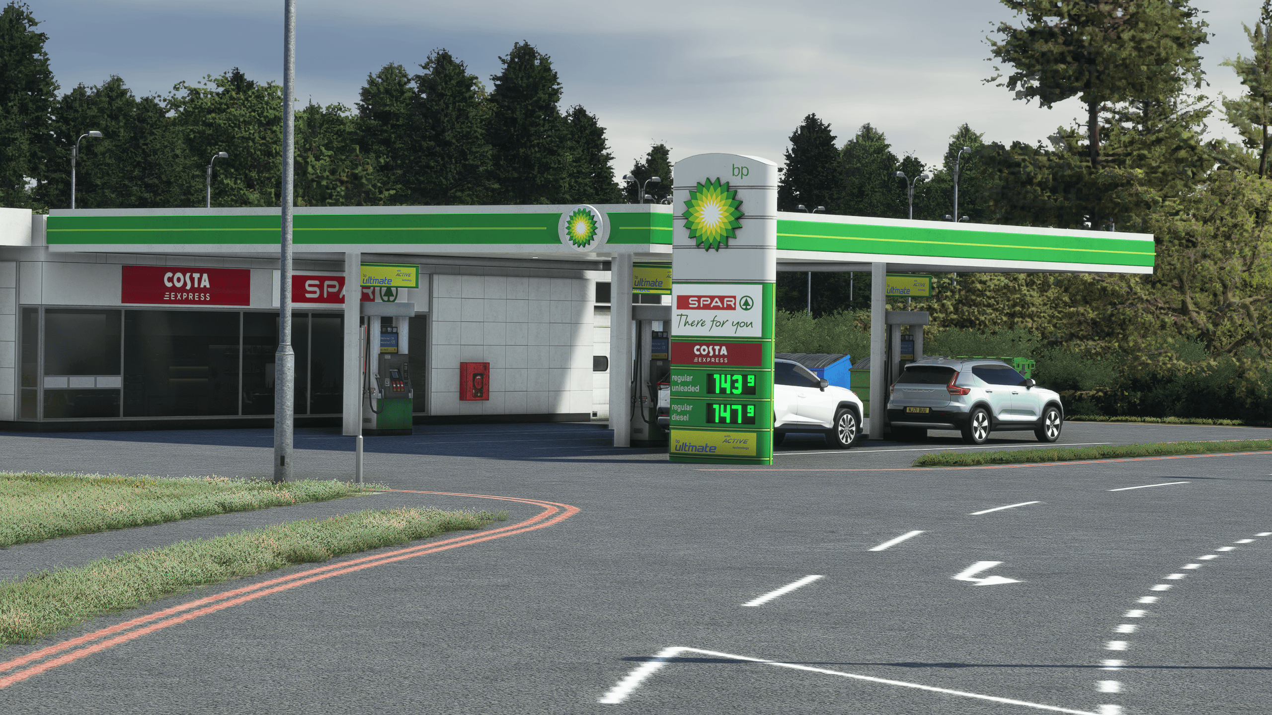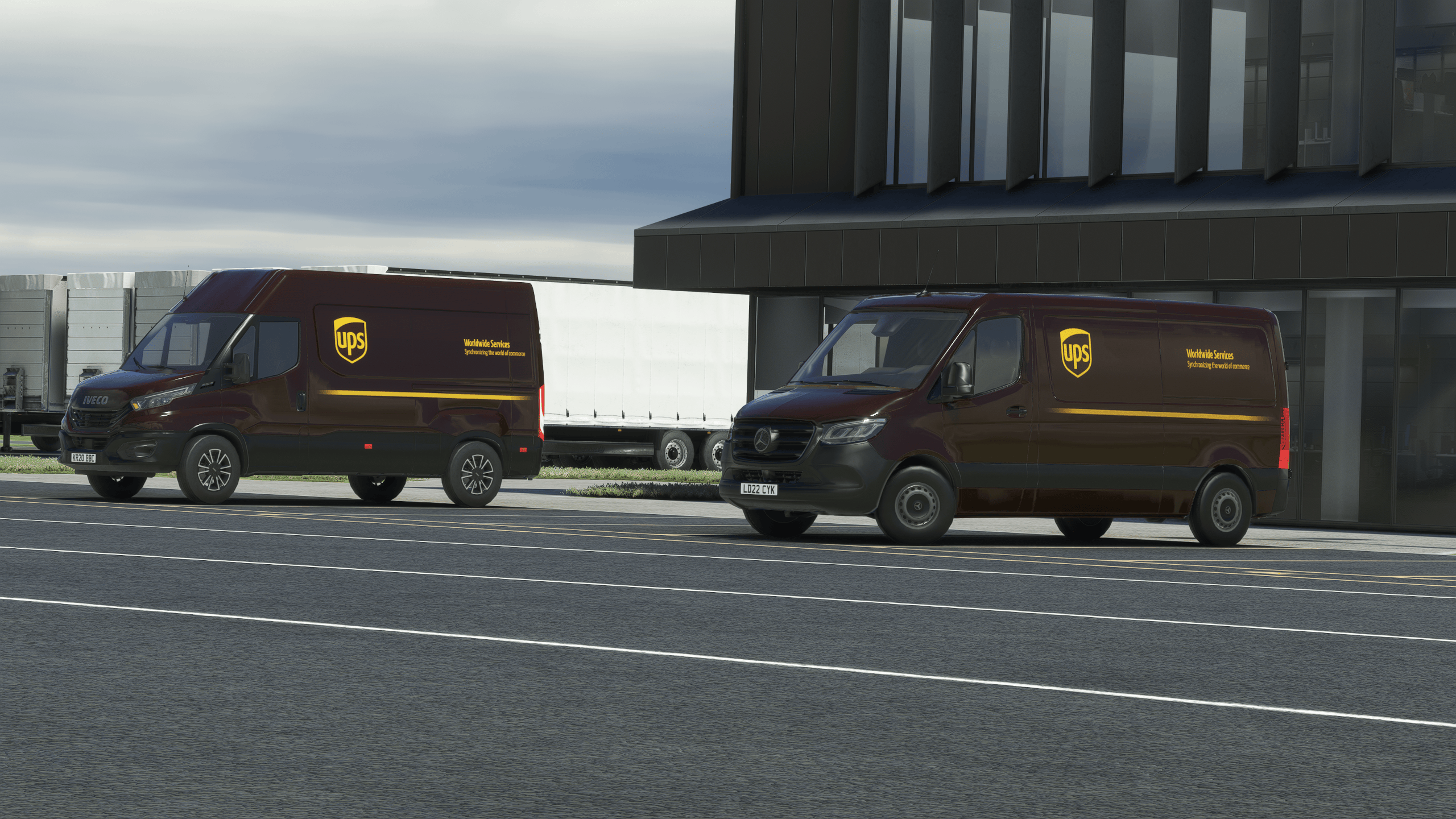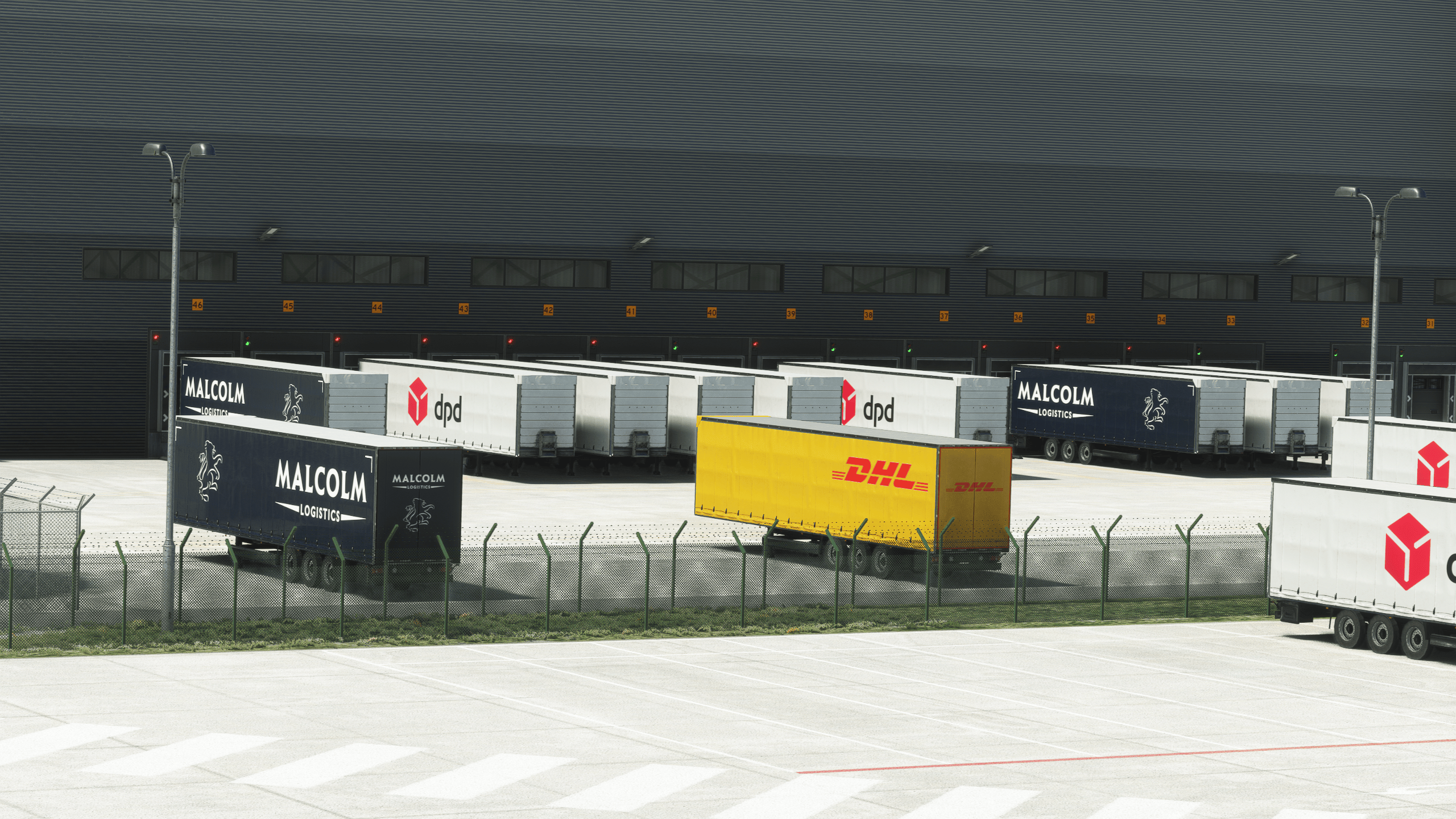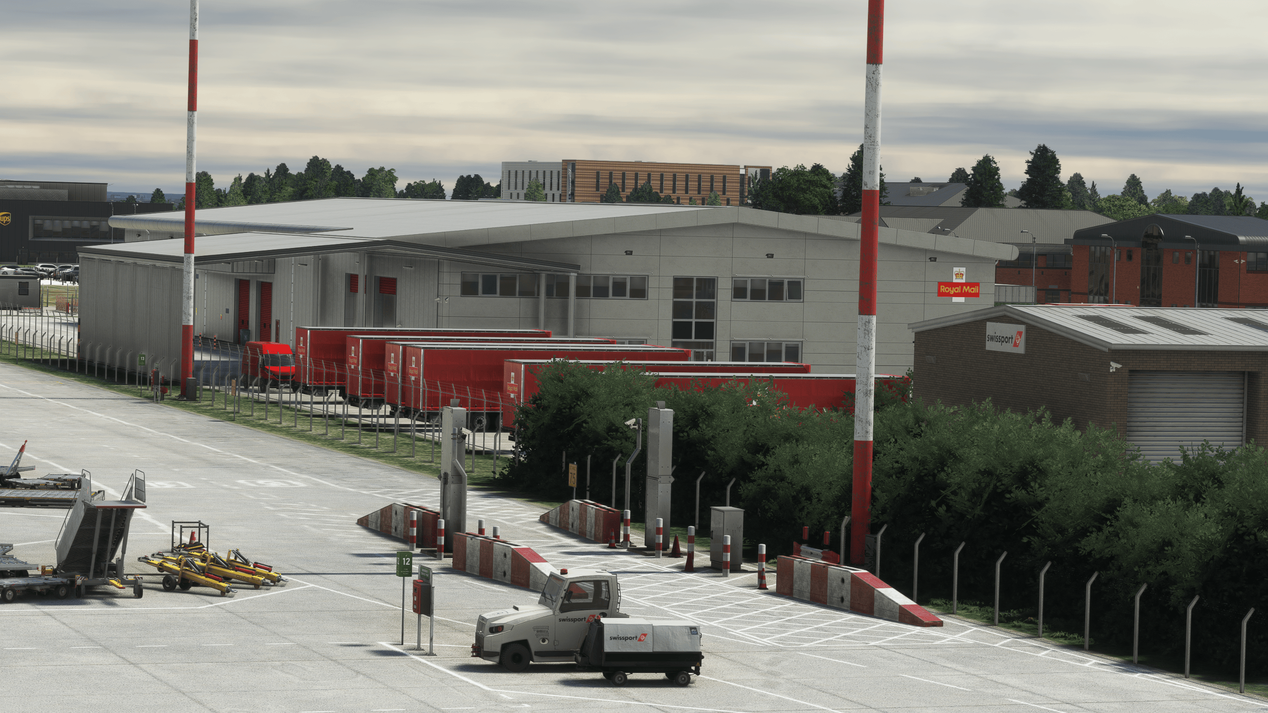 It’s by far the most impressive landside work I have seen. Everything is modeled with an outstanding level of detail, obviously not as high-quality as the main dish for performance reasons, but impressive enough nonetheless. Everything is there, from a BP gas station to the many transport companies around the airport and their respective trucks and trailers.
