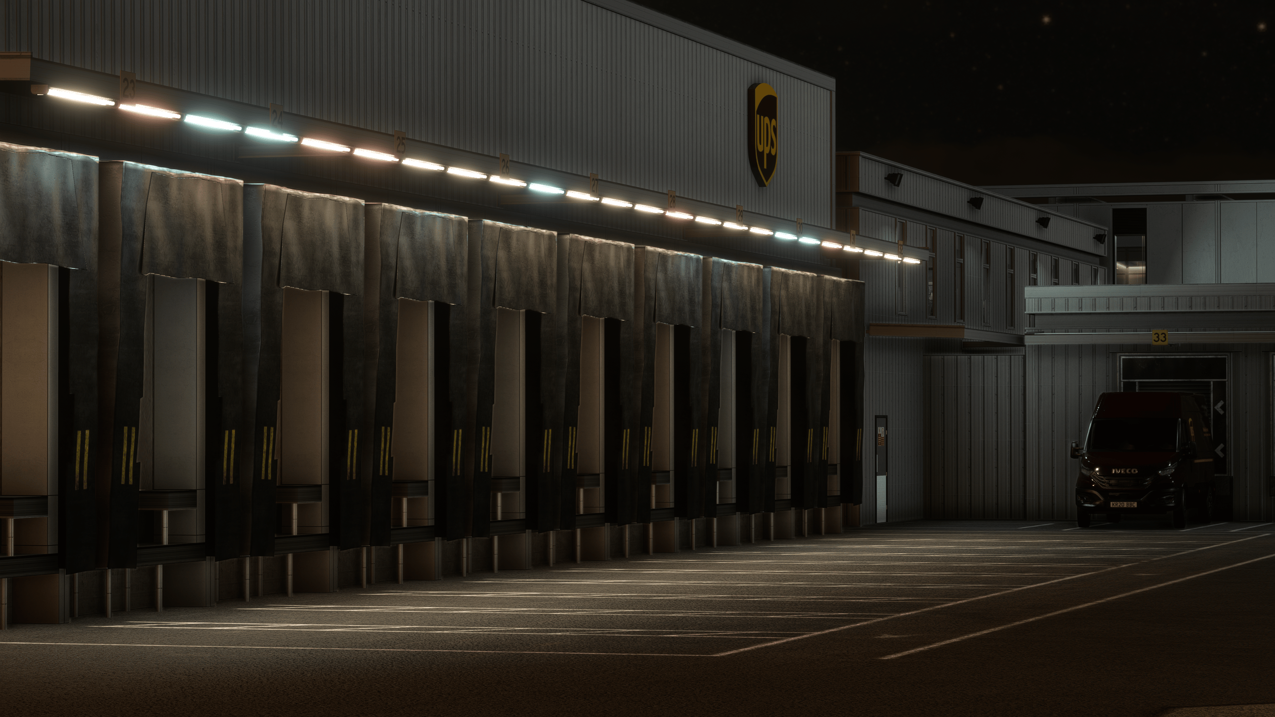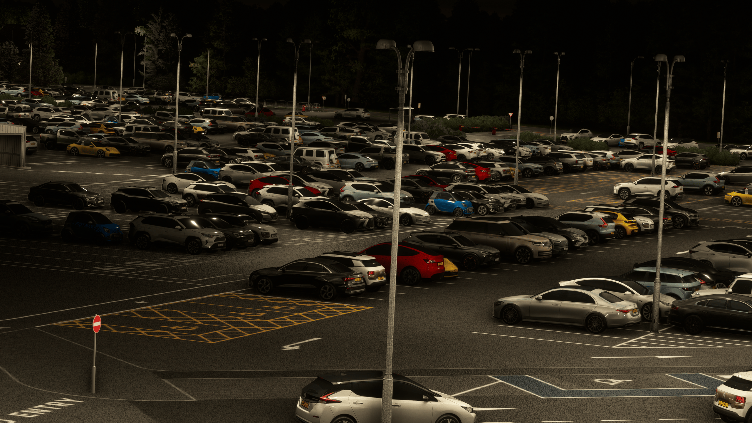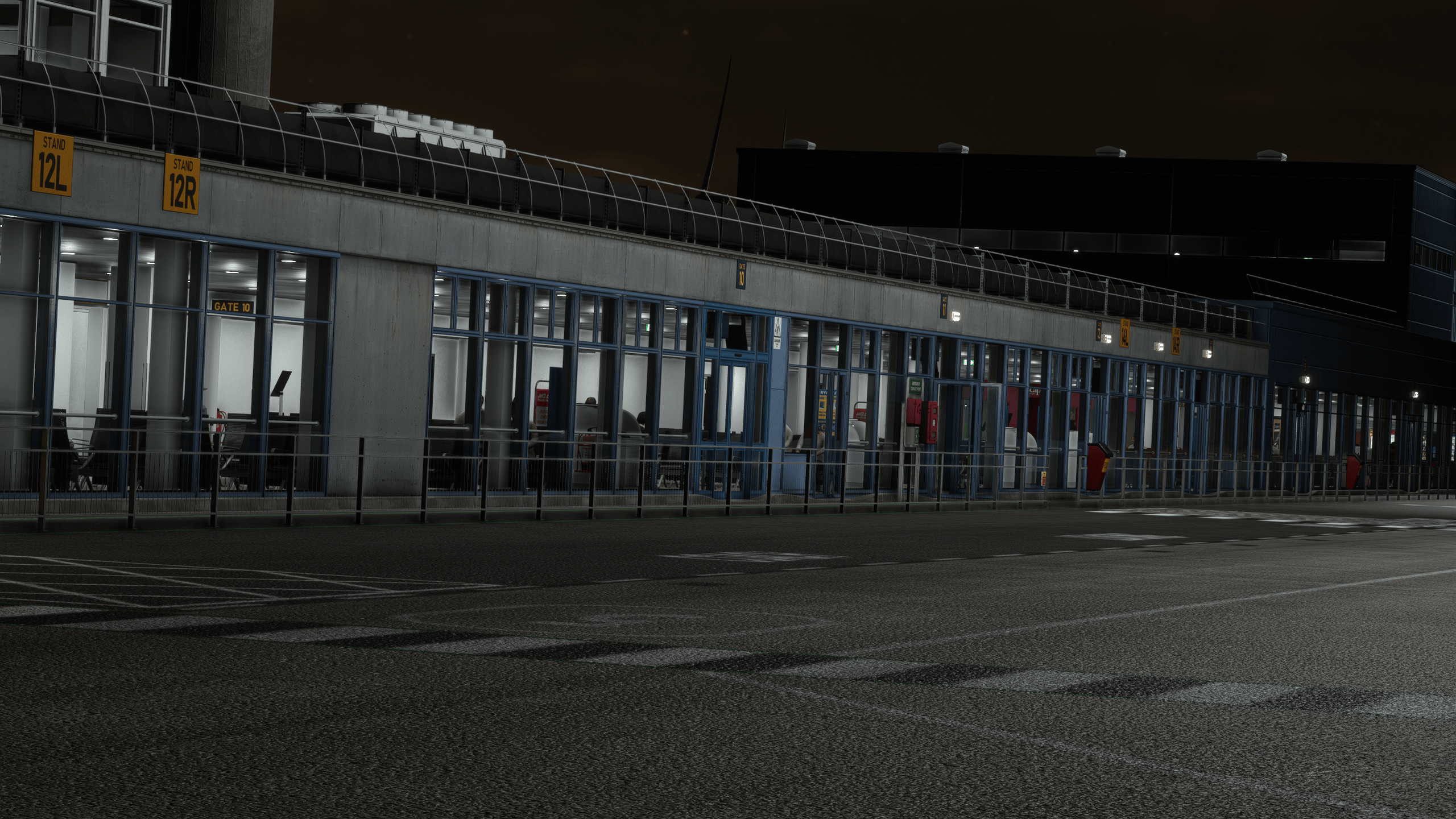 When you think it couldn’t get more impressive, a jaw-dropping show starts after the sun goes away: the night lighting is one of the best in the market, perfectly matching the exquisite PBR work and yielding magnificent results. The external lighting is incredible, extending to the landside, with shiny parking lots, cargo terminals, service areas, etc. The way the lighting interacts with the environment is a sight to behold.