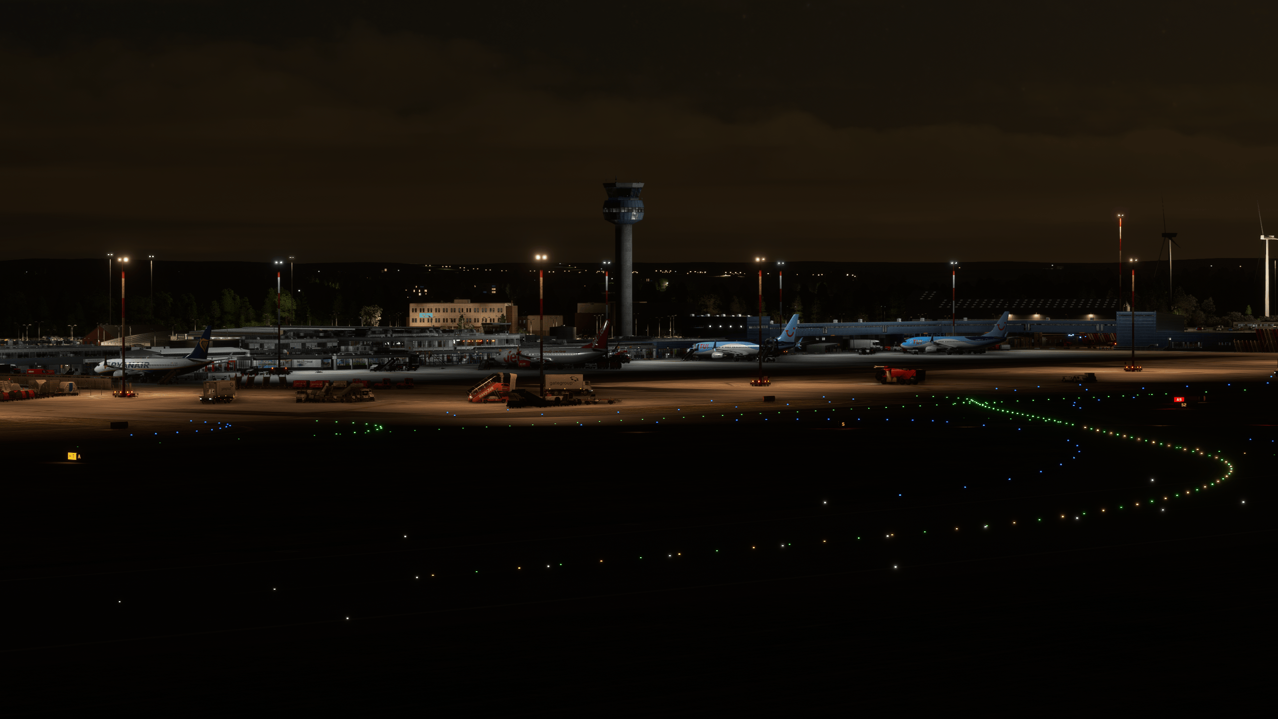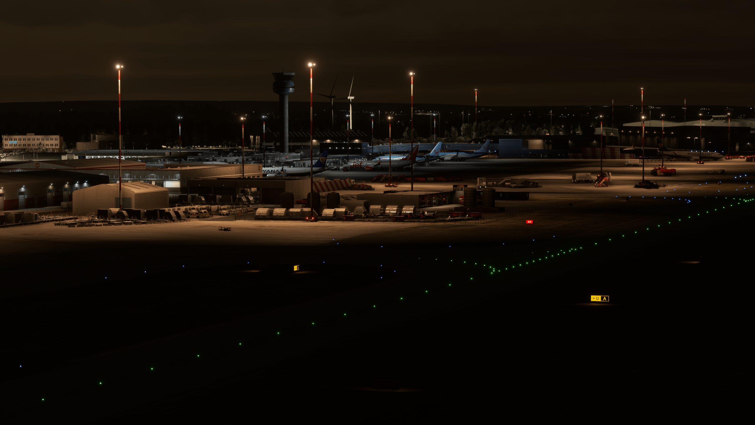 The taxiway lights are super bright (in a realistic manner), making nocturnal taxiing fairly less daunting.