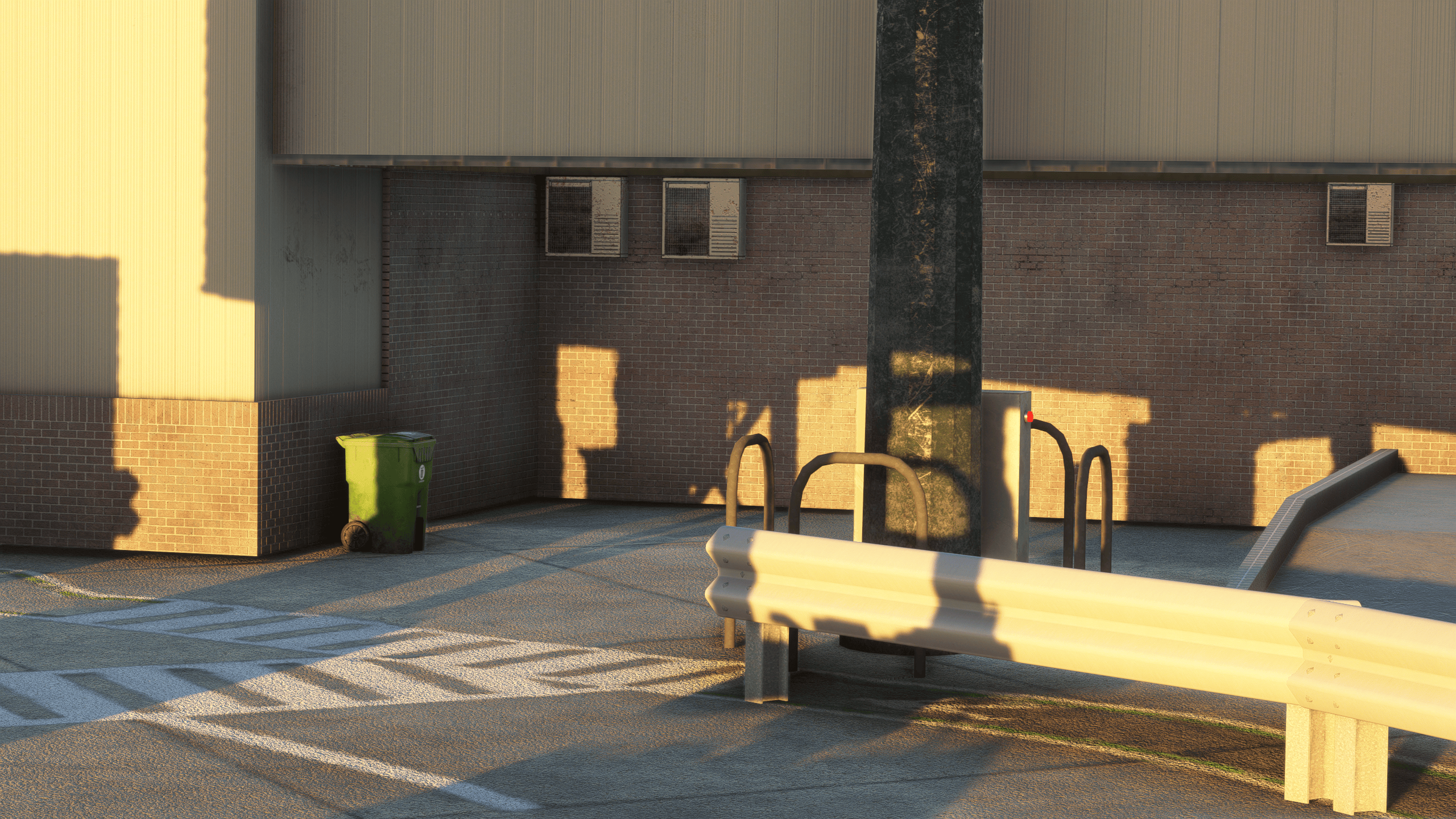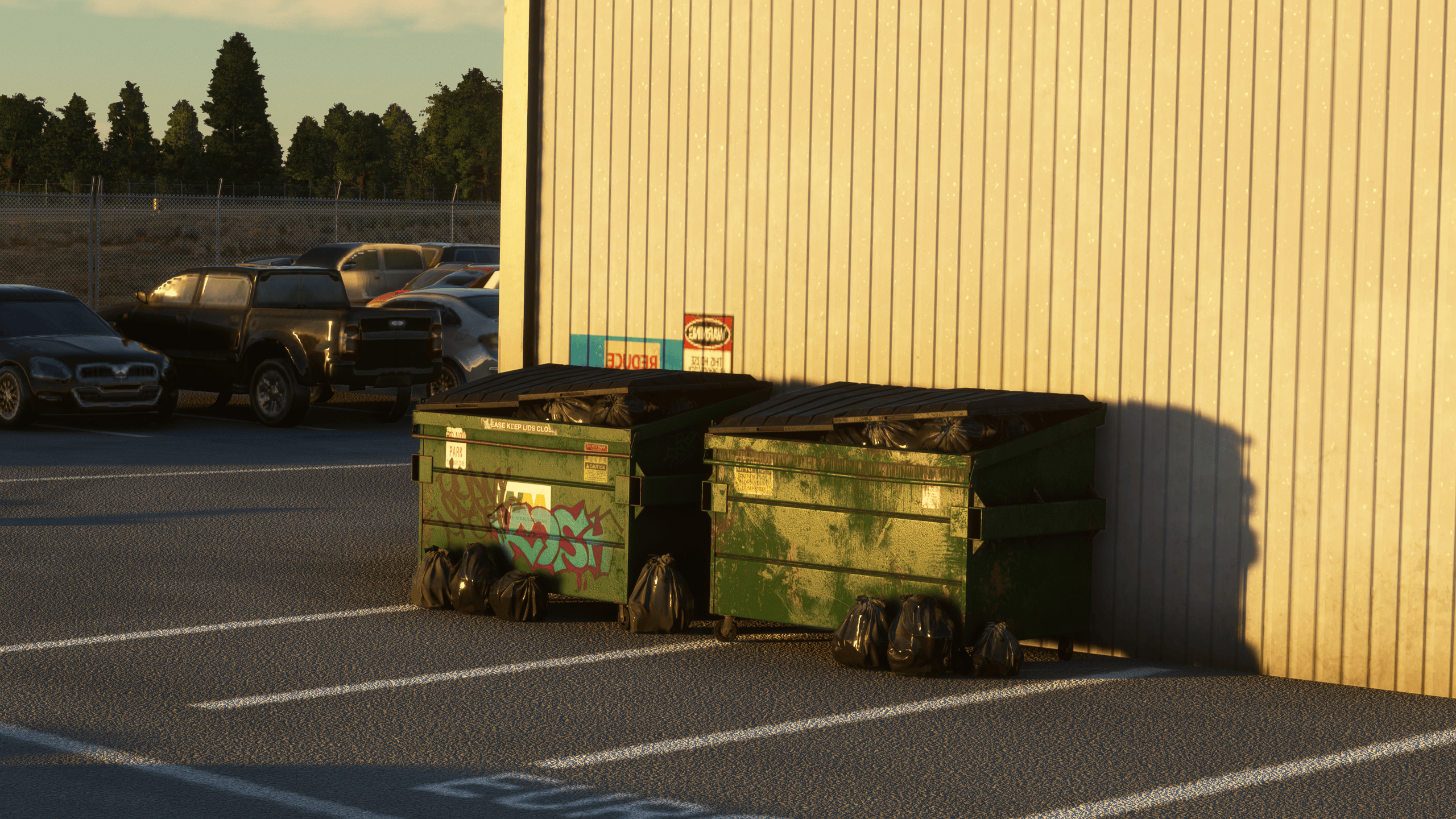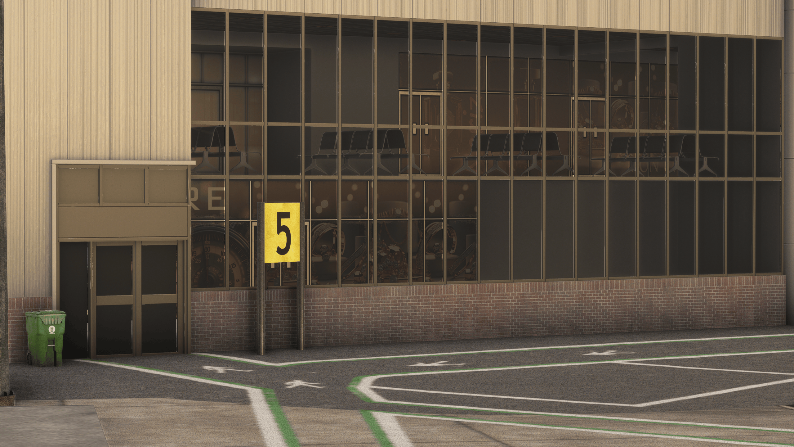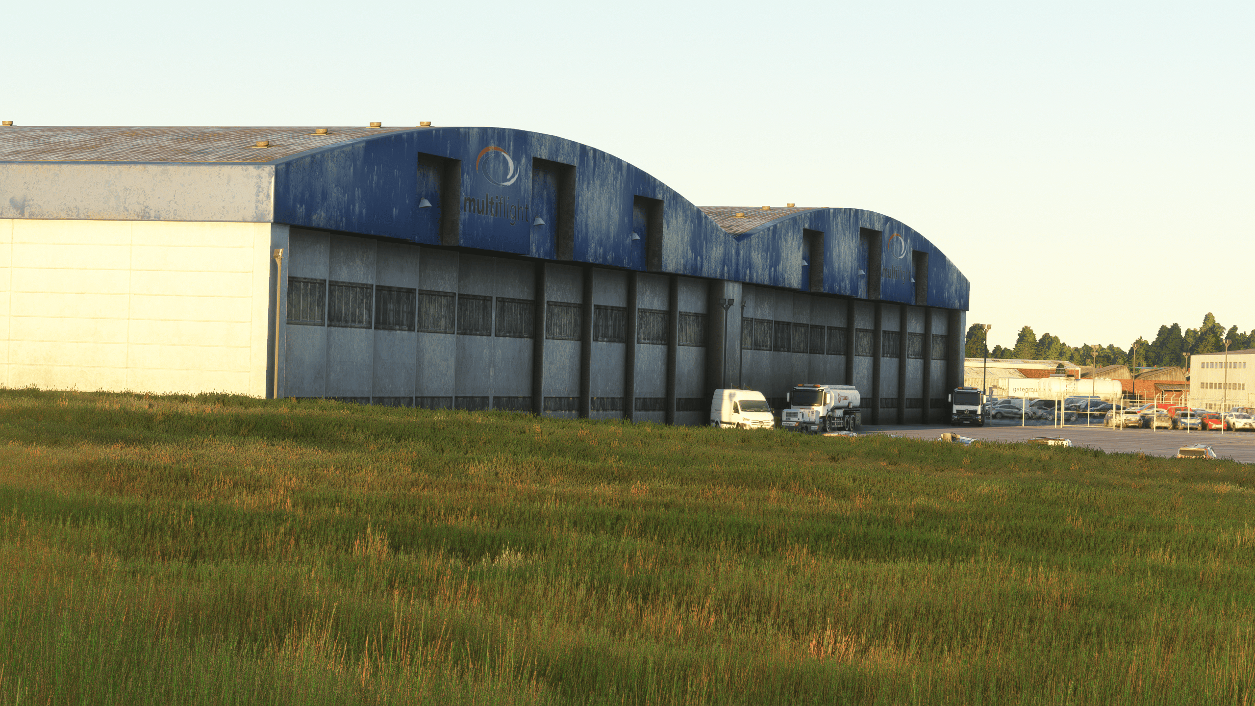 The many hangars around the airport have plenty of wear and tear, which makes sense. Metal and humidity are a very cursed combination at the end of the day. It also applies to the custom jetways, which have a fair amount of good-looking rust. Welcome to the world of flight simulation, where rust and wear are very appreciated.