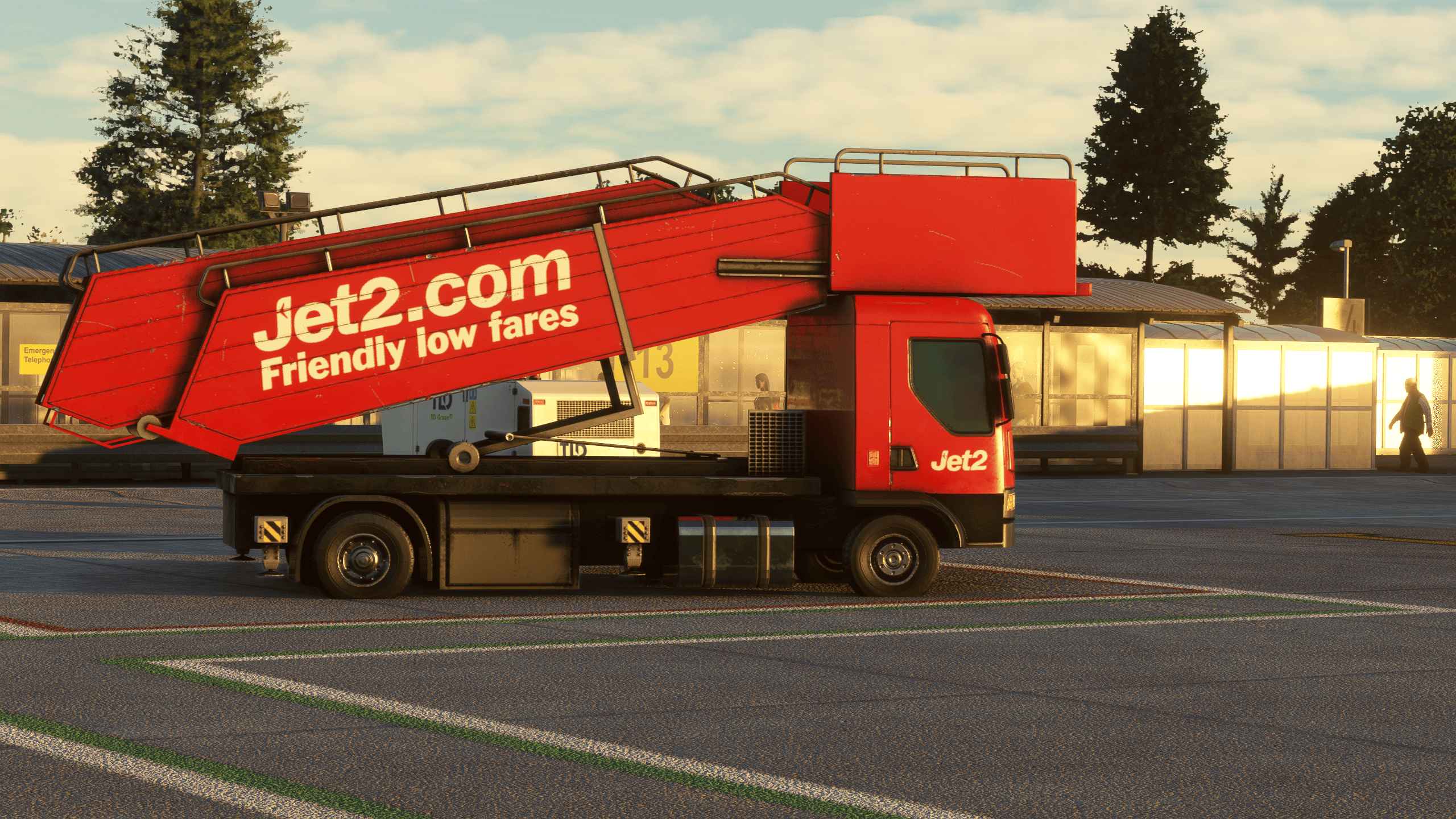 The other thing that caught my eye is the amount of custom ground clutter. Who doesn’t love ground clutter? There are so many Jet2.com vans, ground power units, stairs, baggage carts, red everywhere! Lovely.