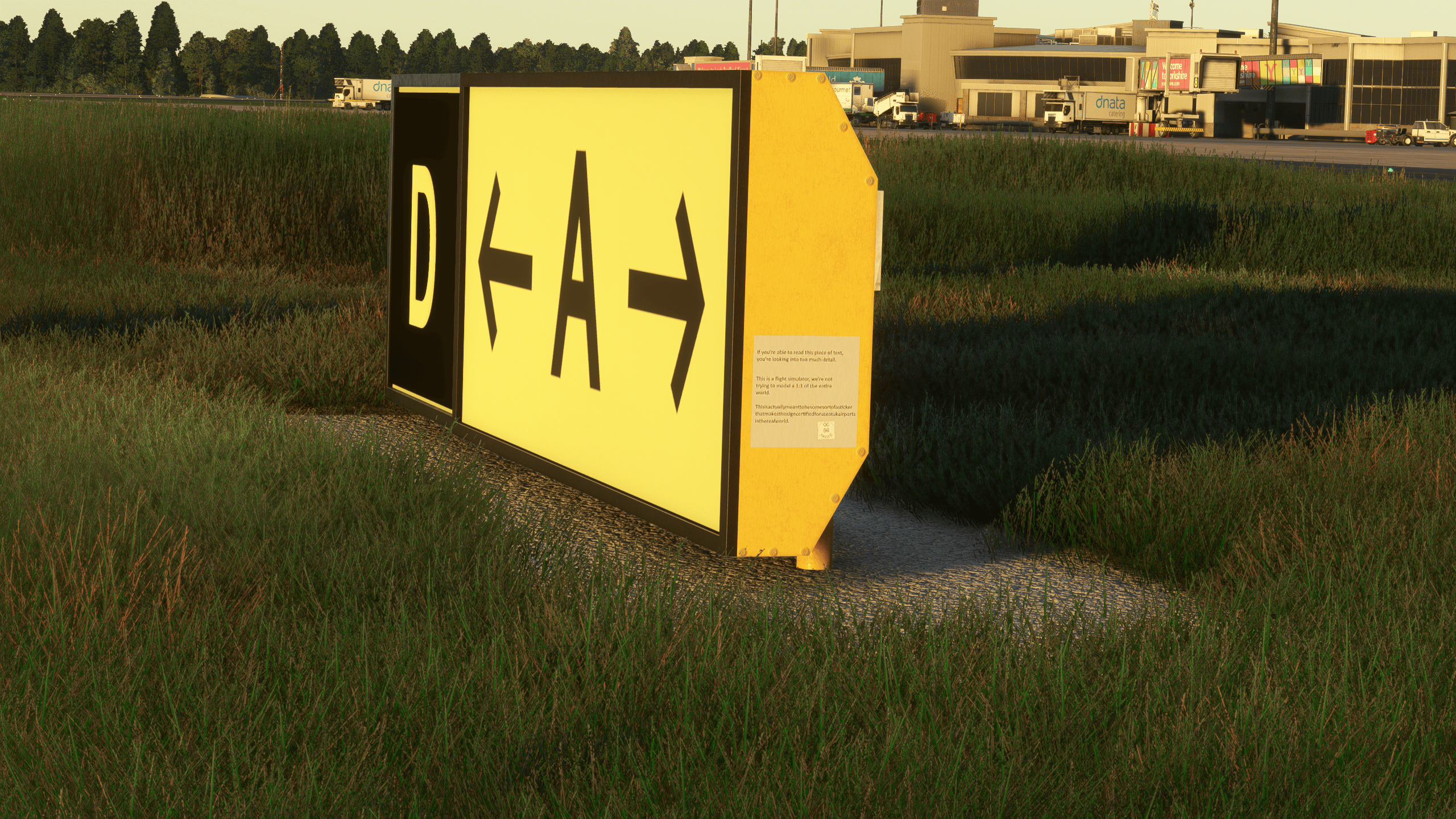 The texturing work is so decent that you can even read a sticker on one of the taxiway signage markers that read, “If you’re able to read this piece of text, you’re looking into too much detail. This is a flight simulator, we’re not trying to model a 1:1 of the entire world. This is actually meant to be some sort of sticker that makes this sign certified for use at UK airports in the real world”. It made me chuckle a little bit. Surely enough, I was hunting detail and found gold instead.