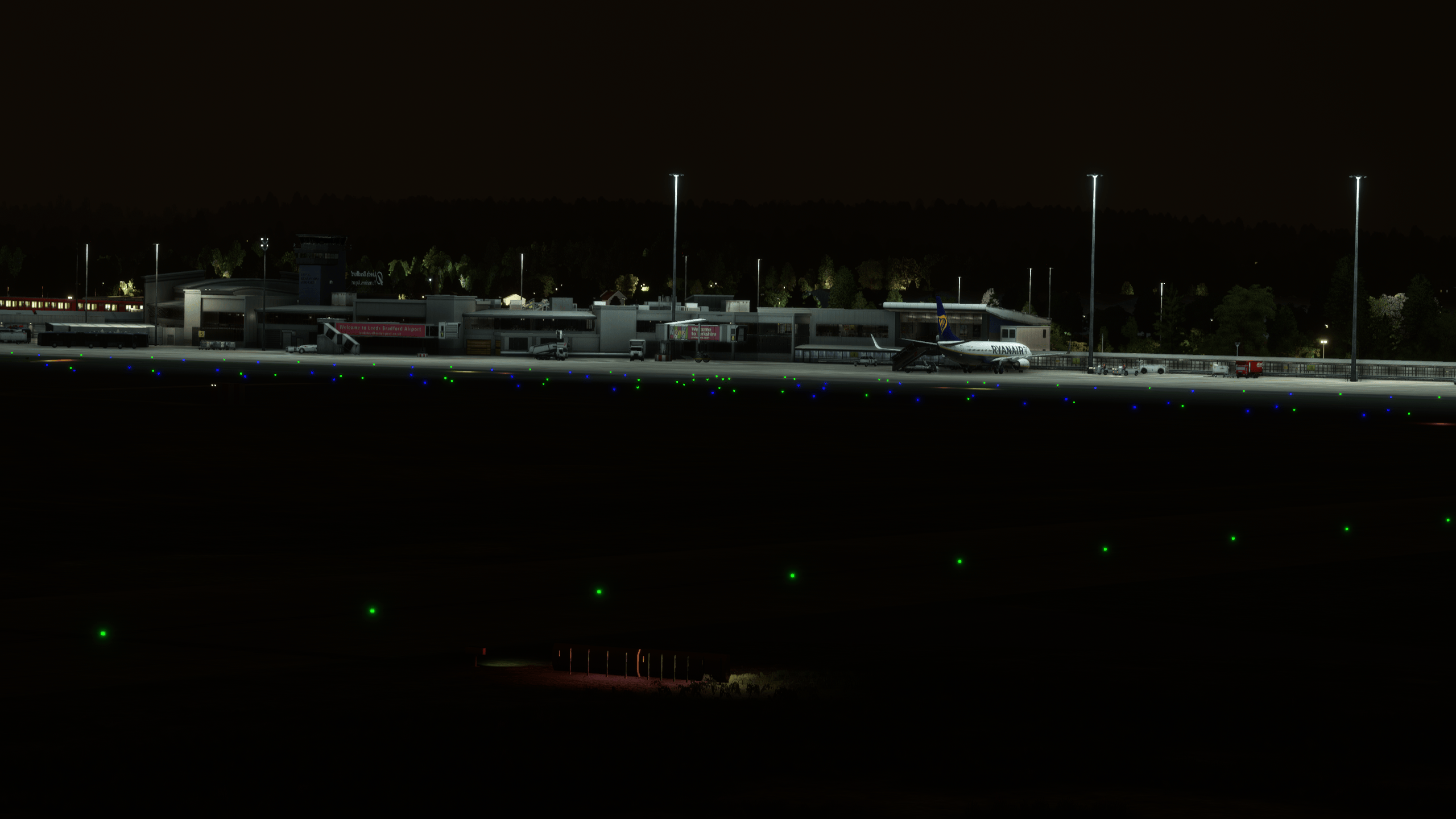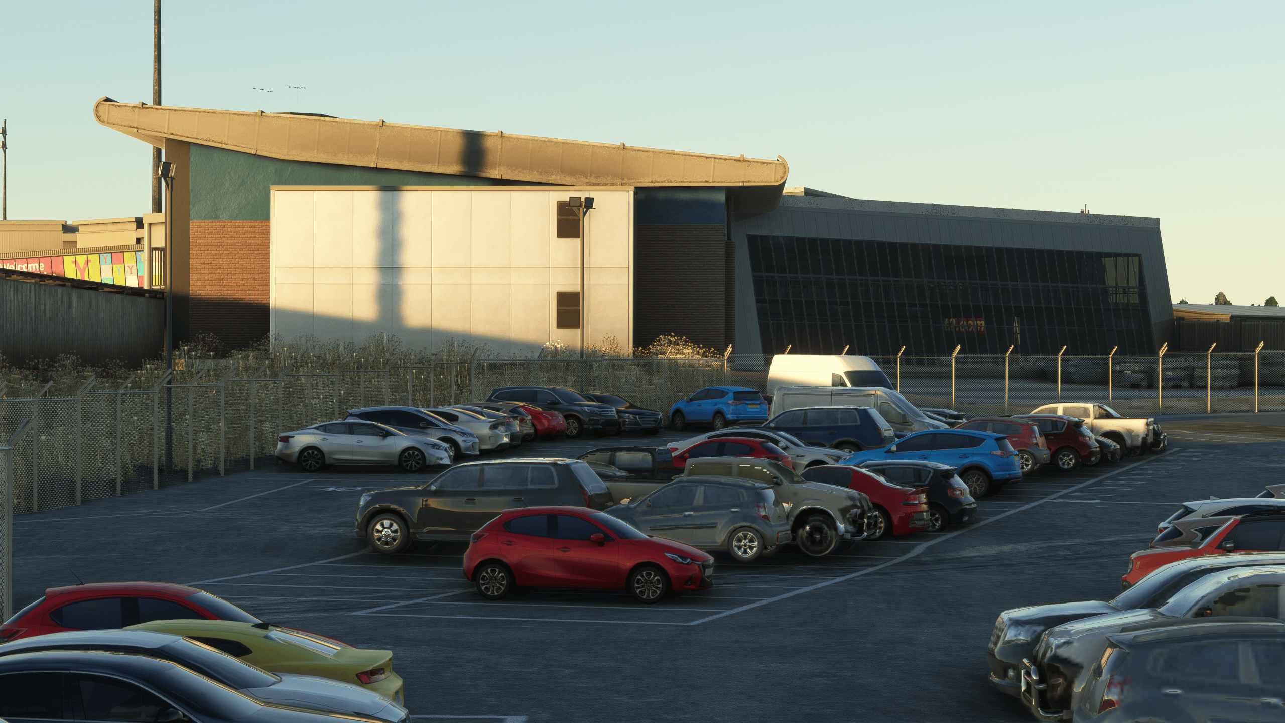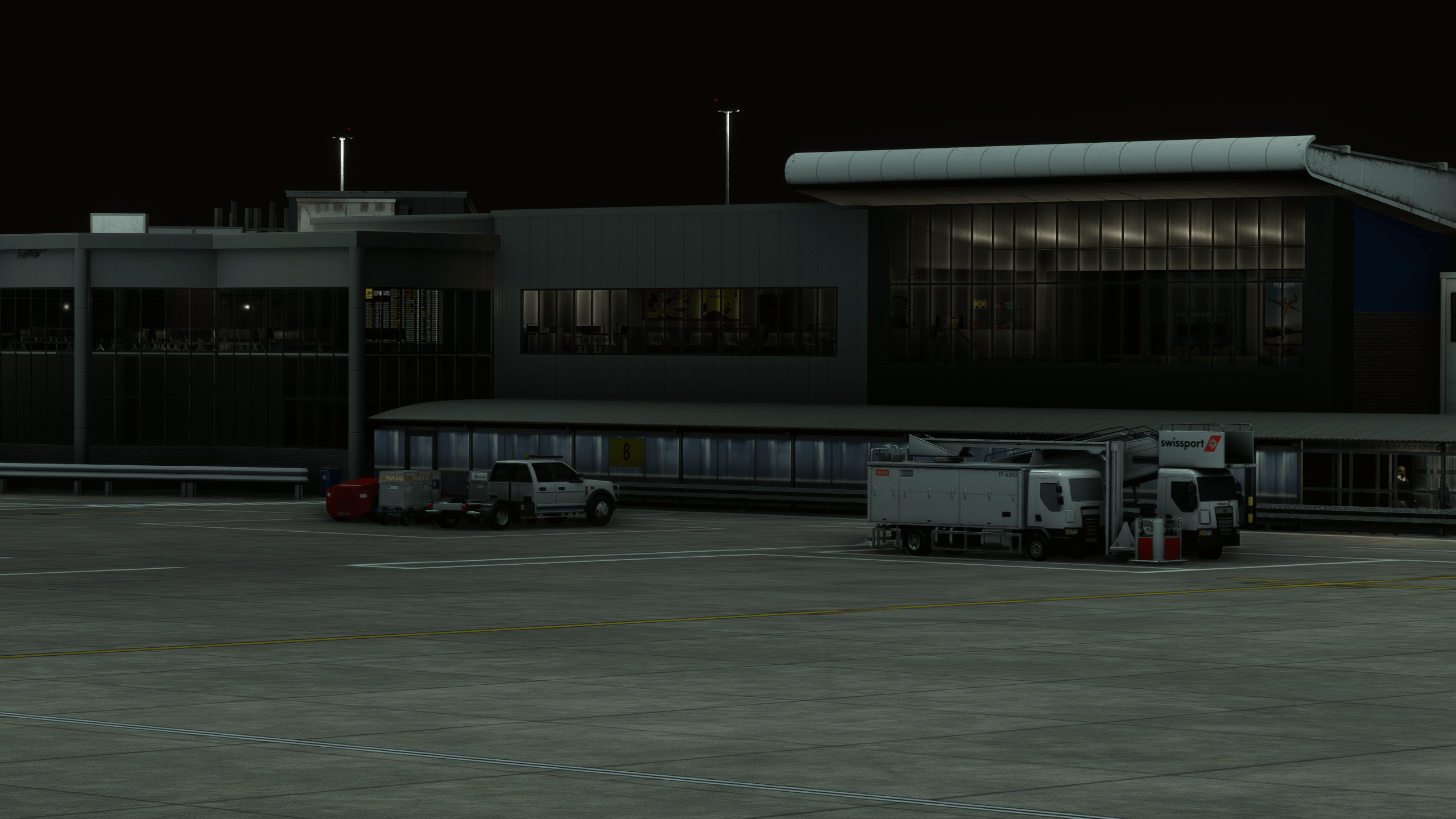 It wasn’t long until I was finally parked at stand 8—one of the perks of most regional airports in the UK: very short taxi times. The scenery has an official GSX profile (you need to copy it over) with preconfigured walk-in stands. It was finally time to switch to the drone camera and look around.