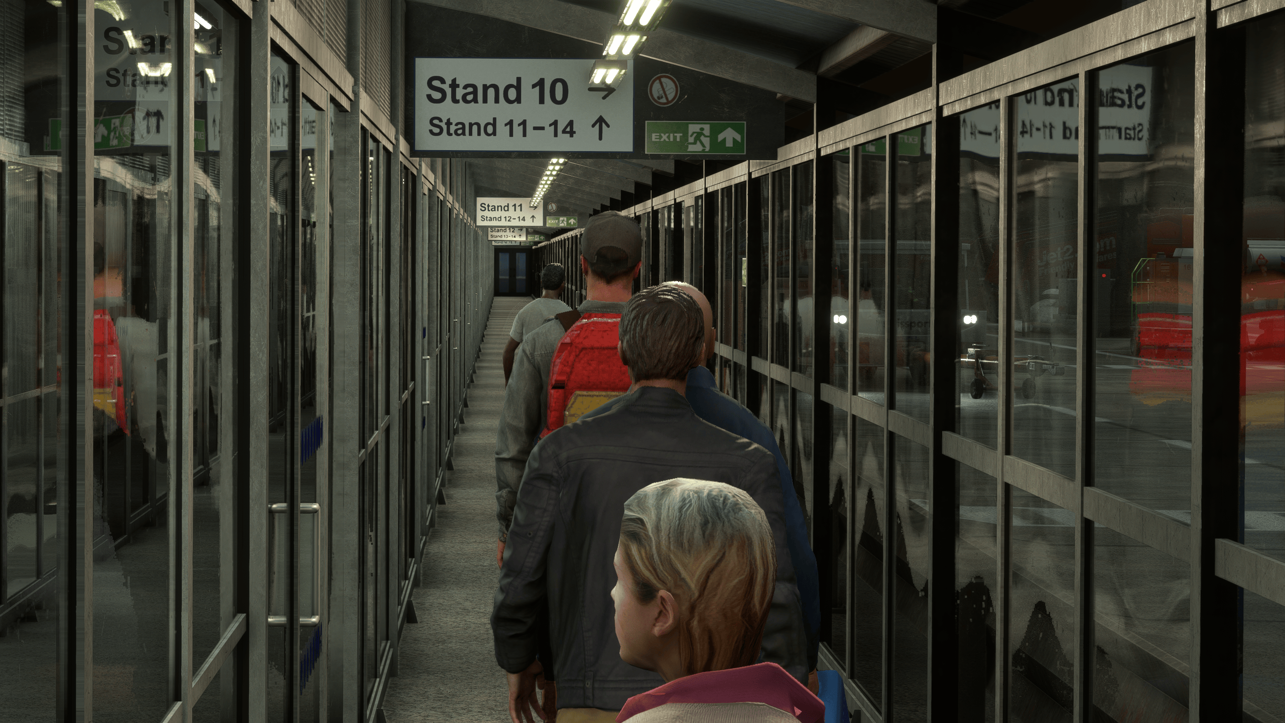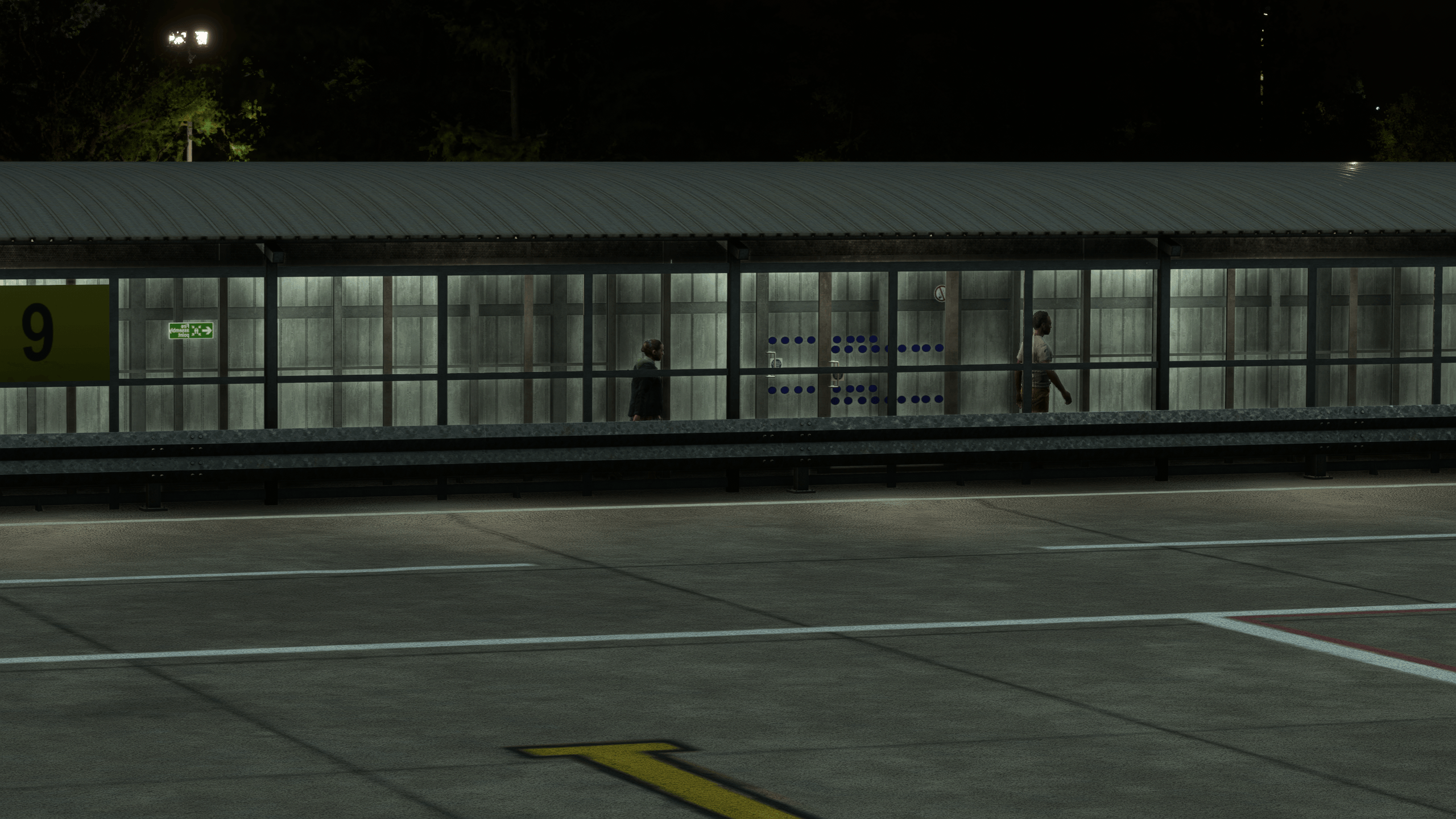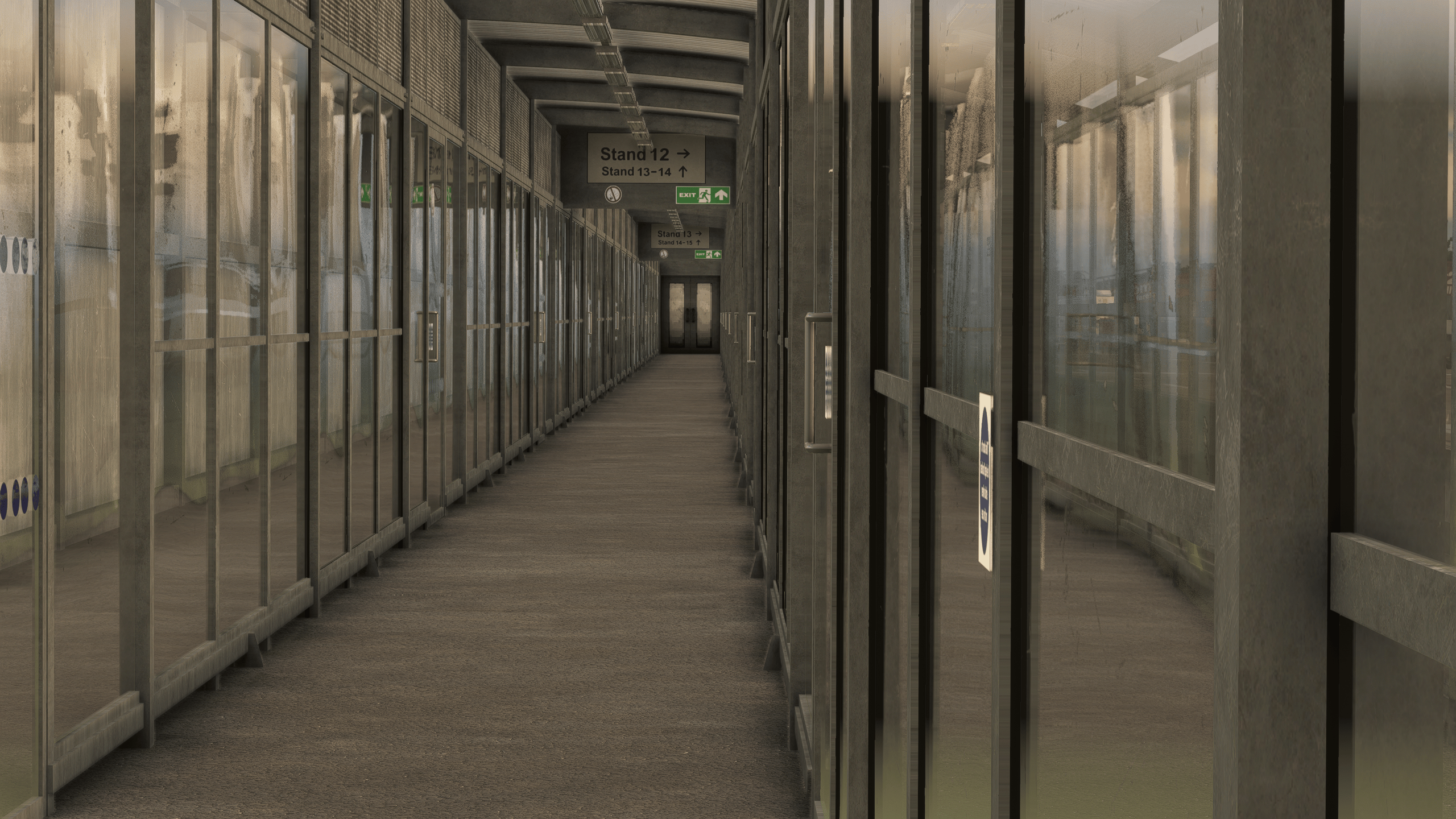 The passenger walkway between stands 9 and 13 is also nicely reproduced, with proper signage inside and out and many stickers on the many doors. Watching the GSX passengers walk from one end of the walkway to the other never gets old. The closer you are to the end, the longer it takes for boarding/deboarding to complete, which makes sense given how long of a walk it is. Truly fascinating.