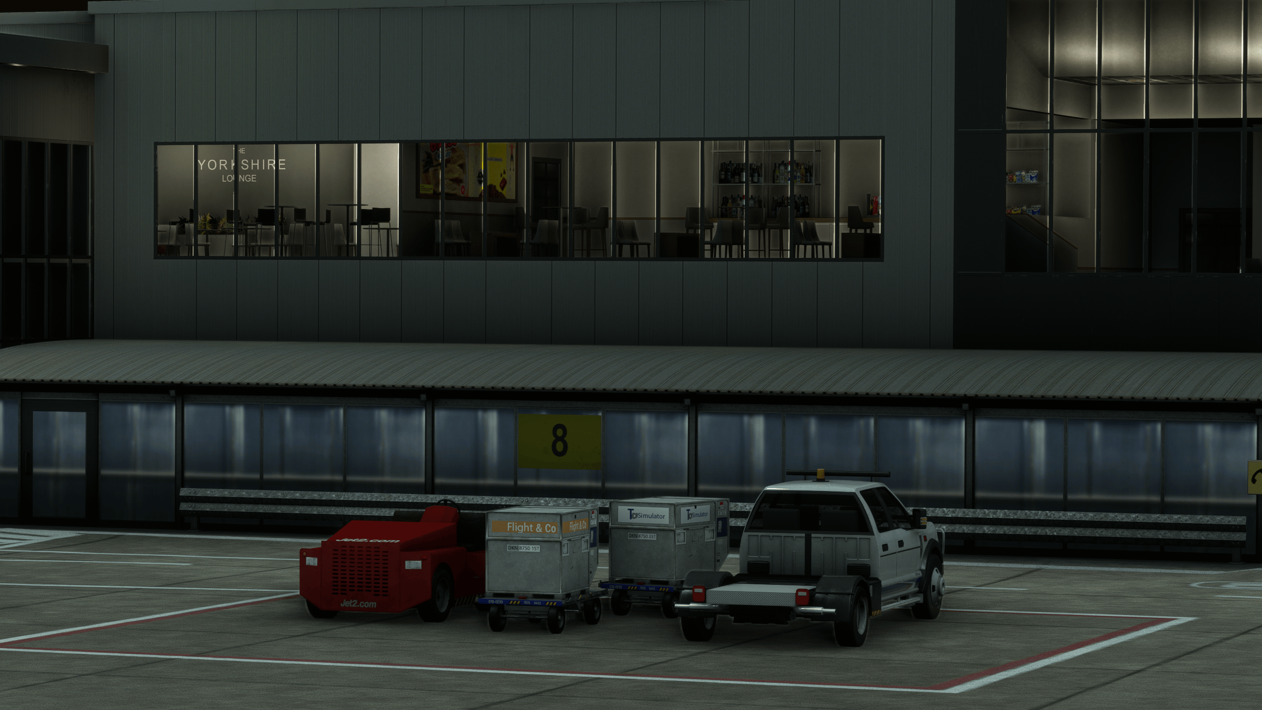 The attention to detail also applies to the many ground equipment vehicles, trash bins, Jet2.com advertisements near the parking lot, and part of the main entrance. Overall, it’s almost consistently good. Almost, but it’s hardly detrimental as it does not compromise the airside experience in any way, shape, or form.