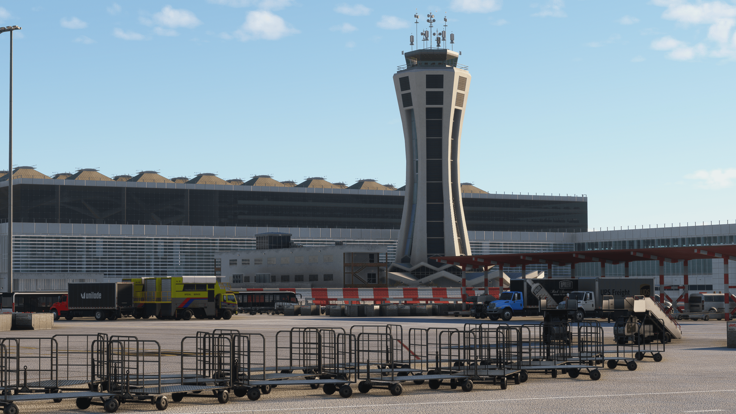 Aside from the aforementioned North American trucks, the landside is also solid enough, with great texturing, loads of clutter, and convincingly dense overall, as you would expect from the 4th busiest airport in Spain.