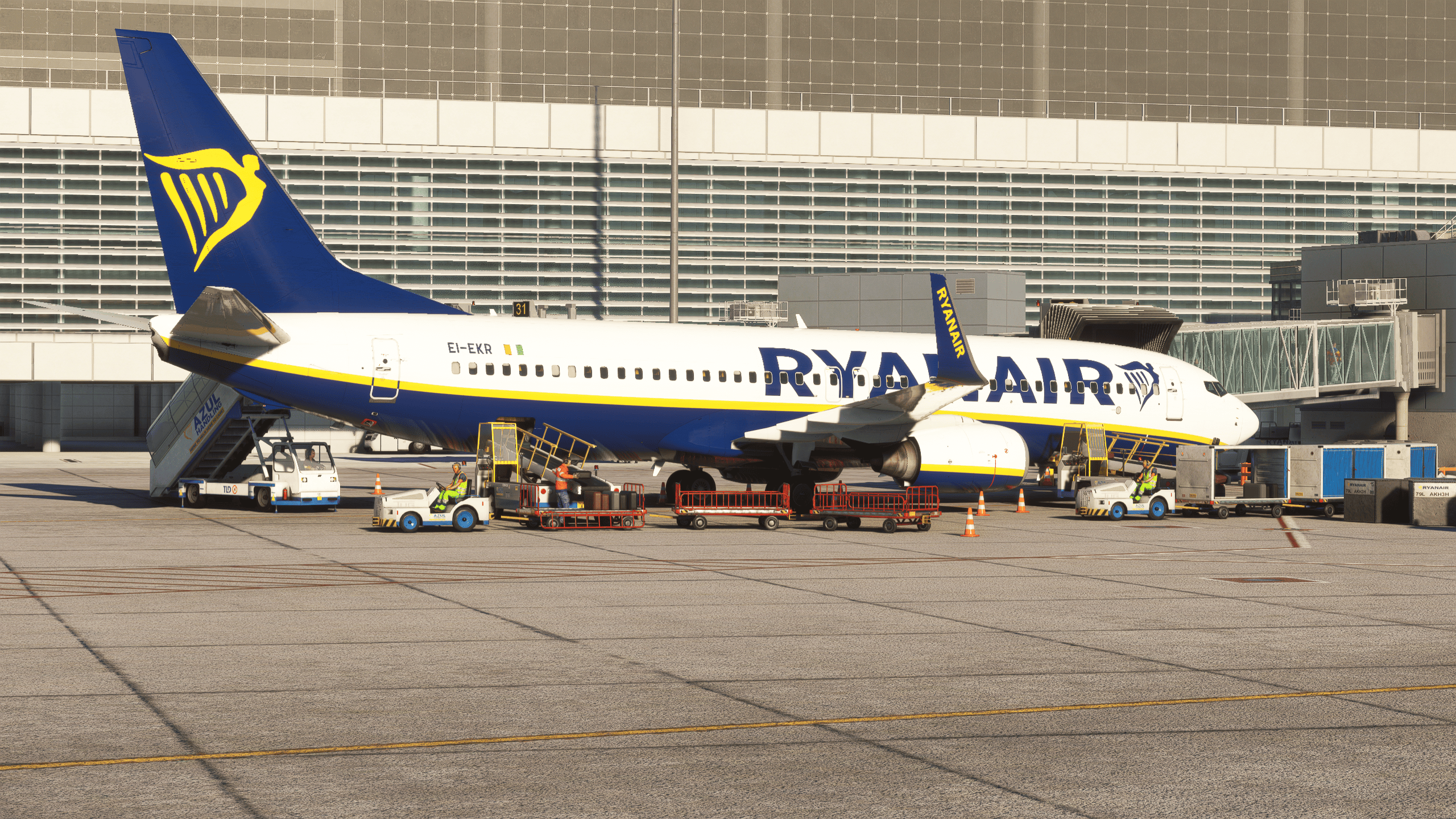 As usual with my scenery reviews, I prefer to fly into the airport instead of loading in, as it adds to the novelty factor and makes it either very enjoyable – in case of good performance – or frustrating, if otherwise. All in all, it’s my favorite way to go about exploring new sceneries. The first flight of choice was a two-hour half-hop from Dublin with Ryanair, which transformed into three hours because of the very unkind winds that day.