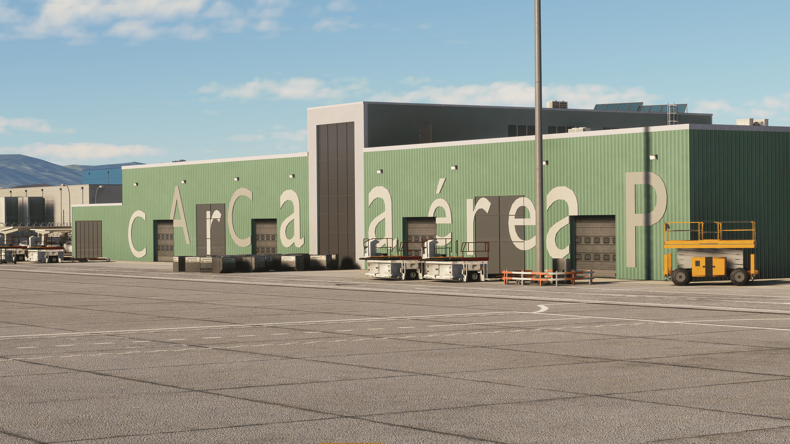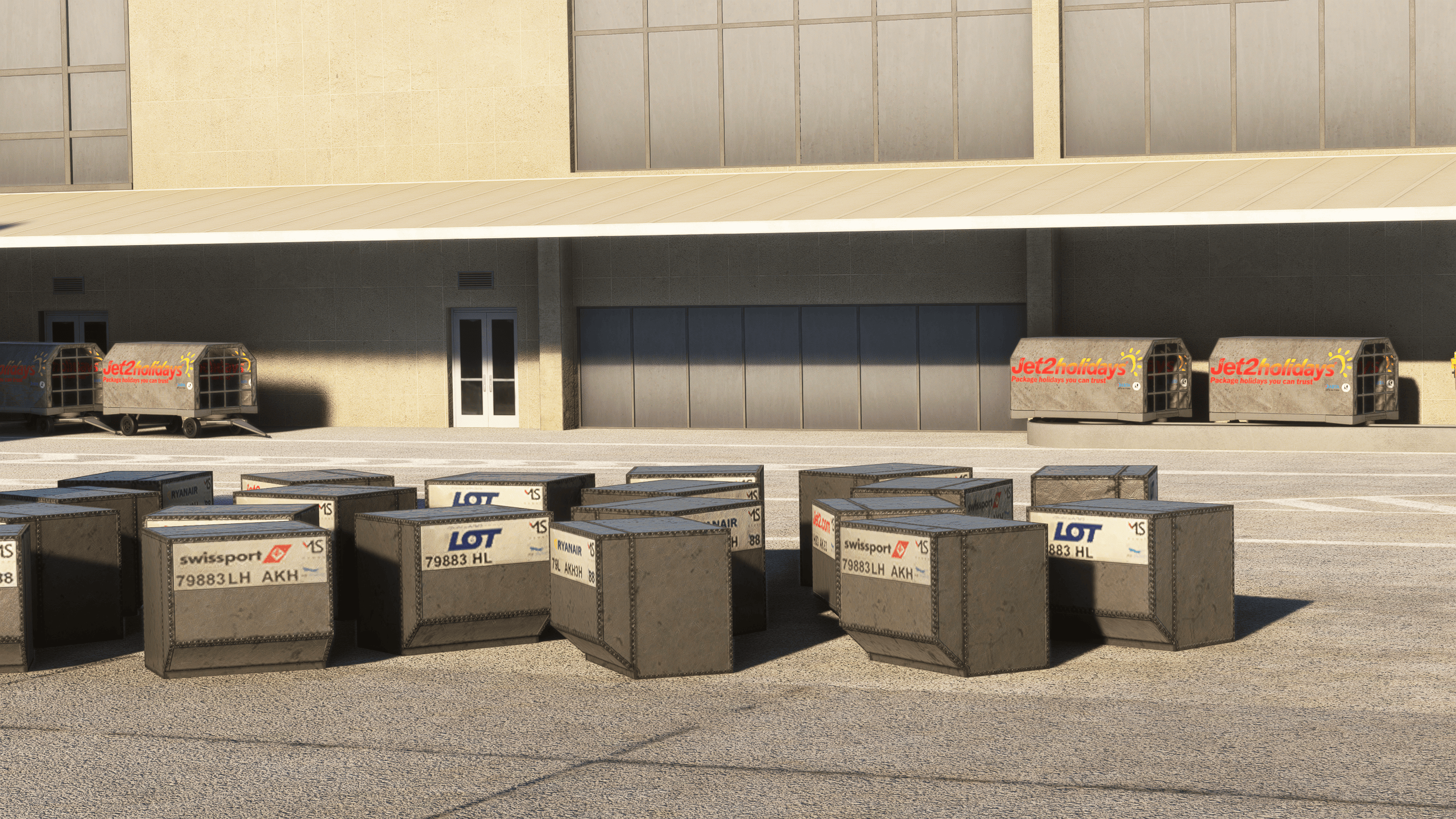 The cargo terminal is well-modeled and texturized, but one thing caught my attention: the trucks are mostly North American, which looks out of place considering we are in Spain. While they are generally not fully visible from the airside, it’s still odd.
