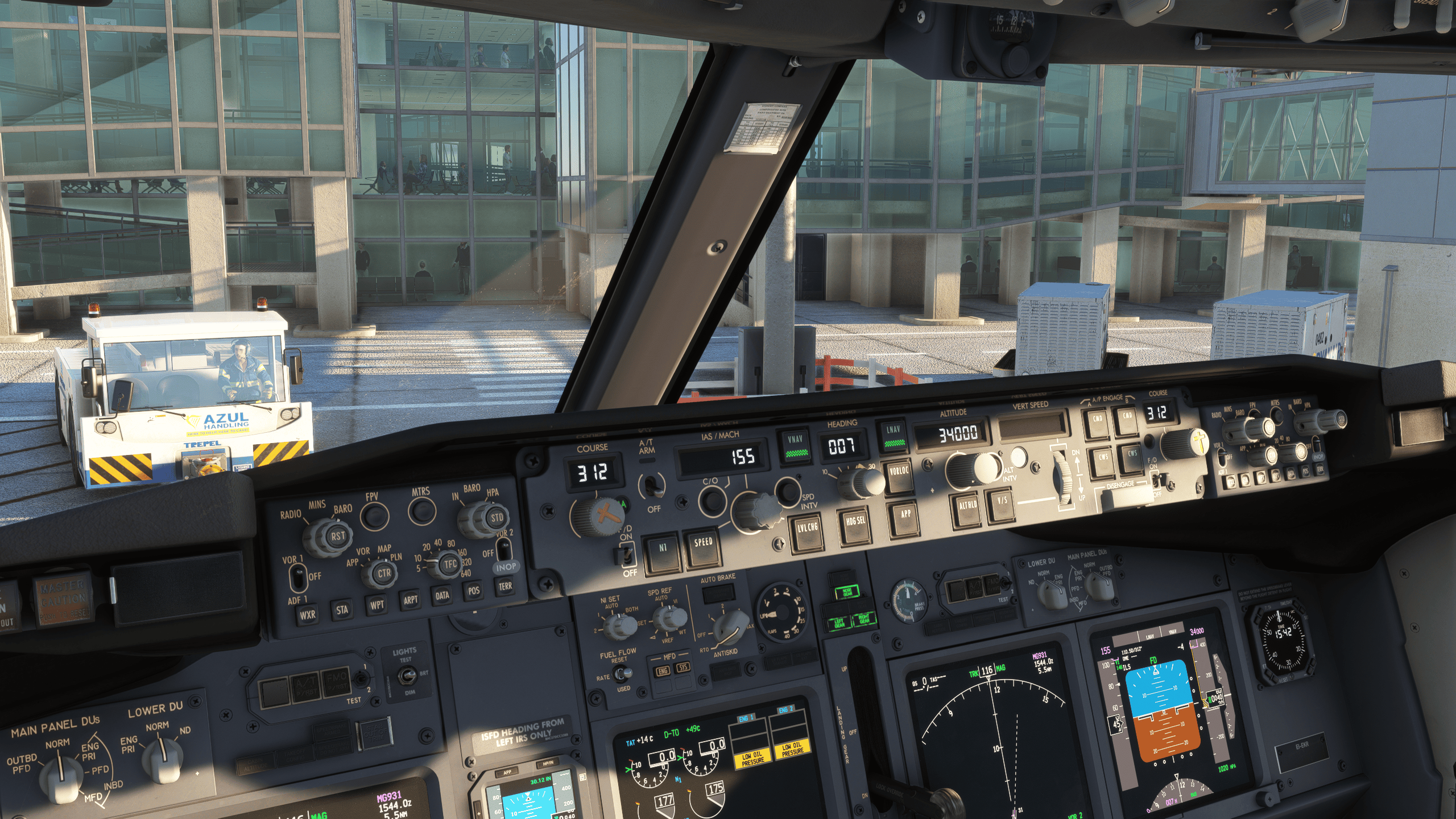 The ground clutter is quite nice, not overly dense, but not sparse, which is clever from a performance standpoint. It does get dense in areas further away from the terminal, where it does not hurt performance in any way, as it would if rendering along with the detailed passenger terminal. Clever.