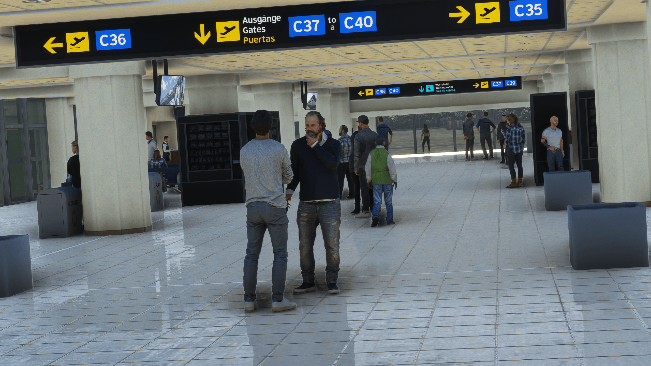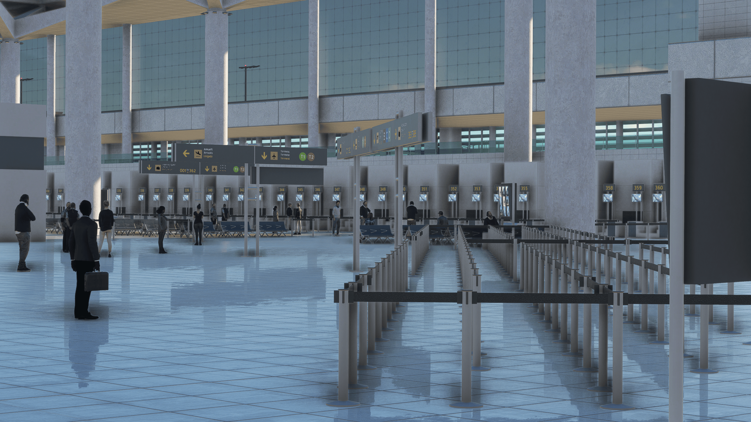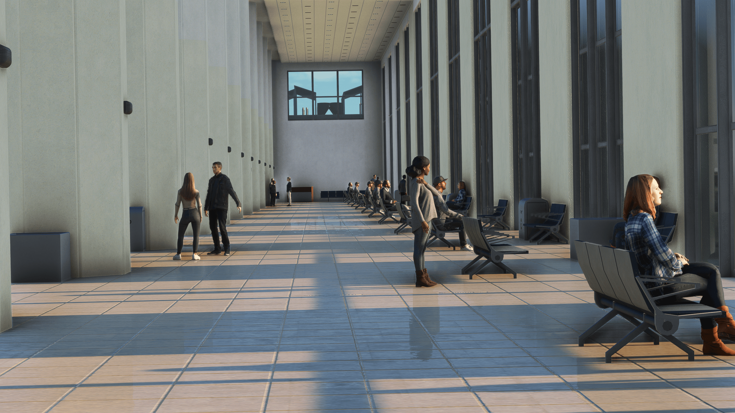 What instantly caught my eye was how every bit of the terminal had its fully modeled interior, albeit in a more simplified manner, for performance reasons, most likely. There are passengers, seats, signs, and empty stalls, and it goes on and on for quite a while. It’s a big airport, after all.