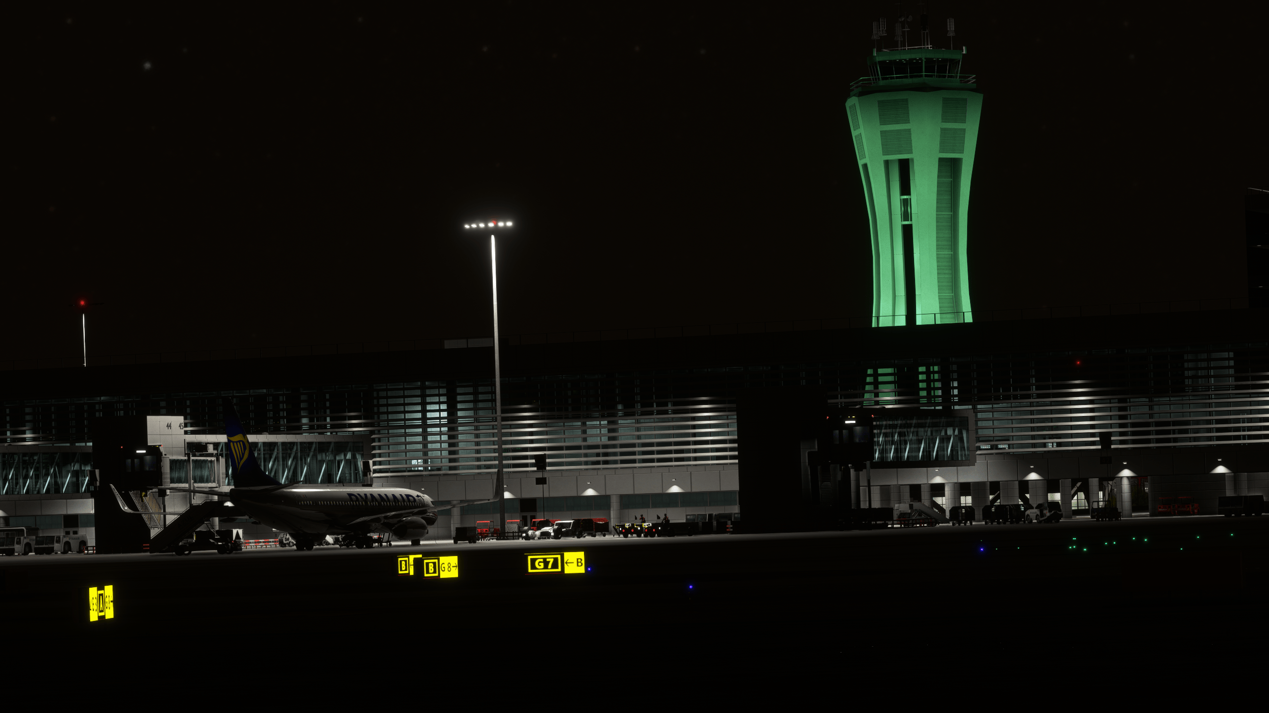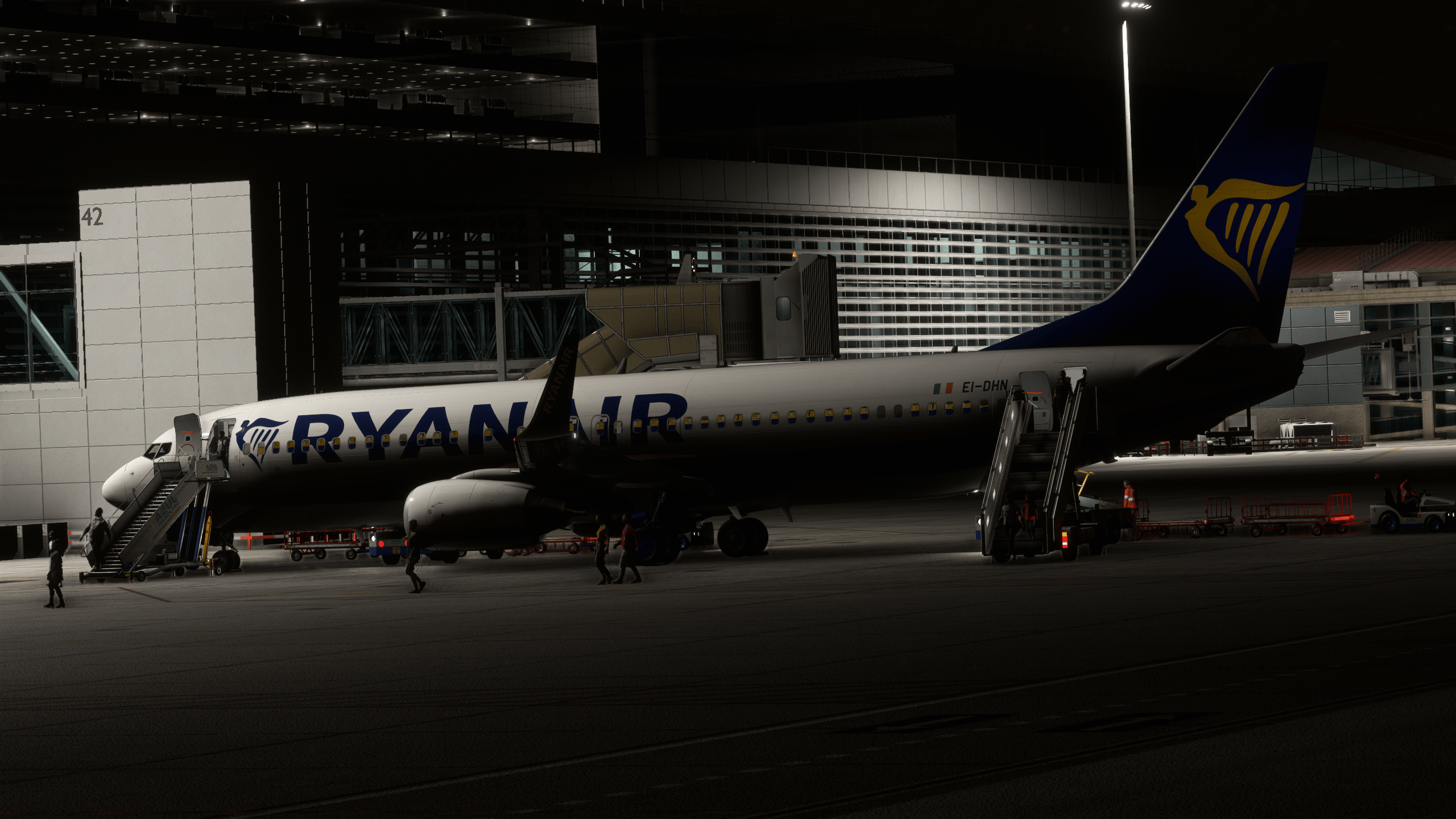 The arrival was not a stuttery mess despite the generally deadly combination of big airport and photogrammetry. I managed to land smoothly and safely, rapidly making my way to stand 33, where I had to deboard quickly and set up for the return flight to Dublin. It would be a very long Ryanair evening (even though I was using daytime in MSFS to match the real flight’s departure time a good half a day prior).