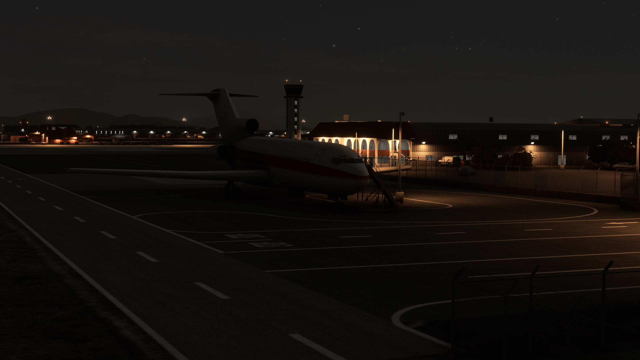 The night lighting is consistently good throughout the entire scenery, be it the terminals, the cargo areas, or the hangars. Everything is realistically lit during the night.