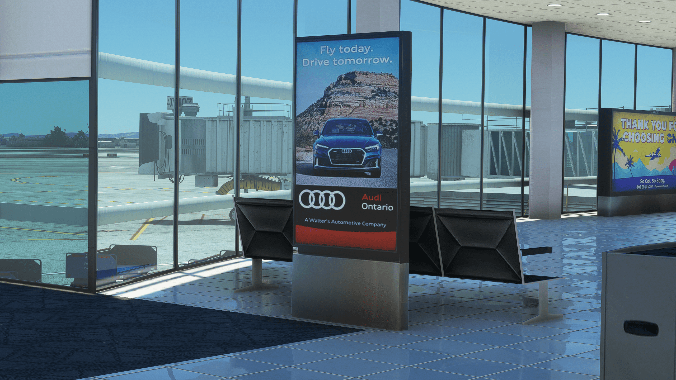 Terminals 2 and 4 are wholly modeled, with an interior that perfectly balances detail and performance, ensuring a smooth experience on approach, taxi, and while parked. Terminal interiors are nice-to-haves rather than must-haves, and while they don’t entirely compromise the experience when absent or poorly made, they can devalue an otherwise nice scenery.