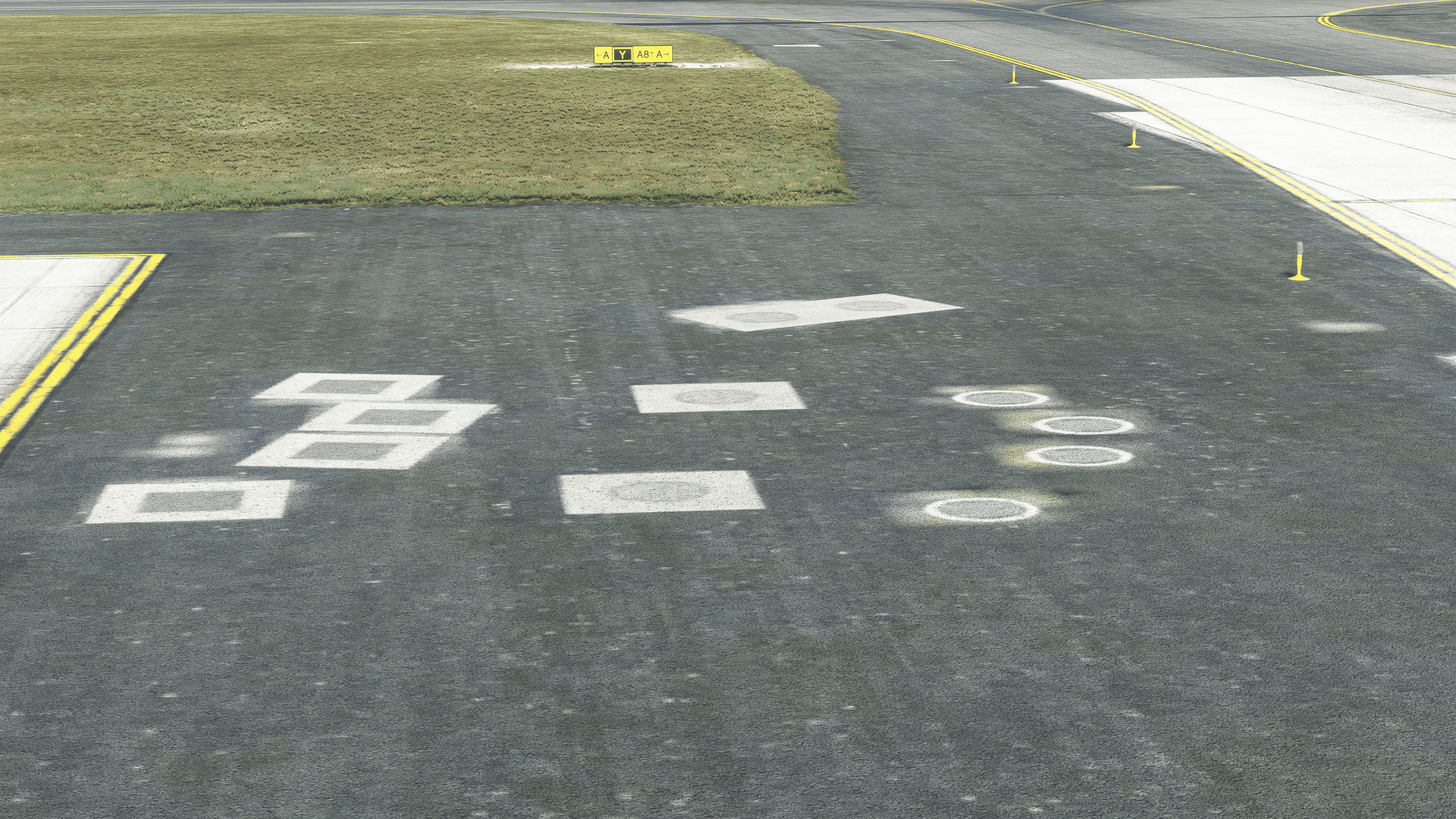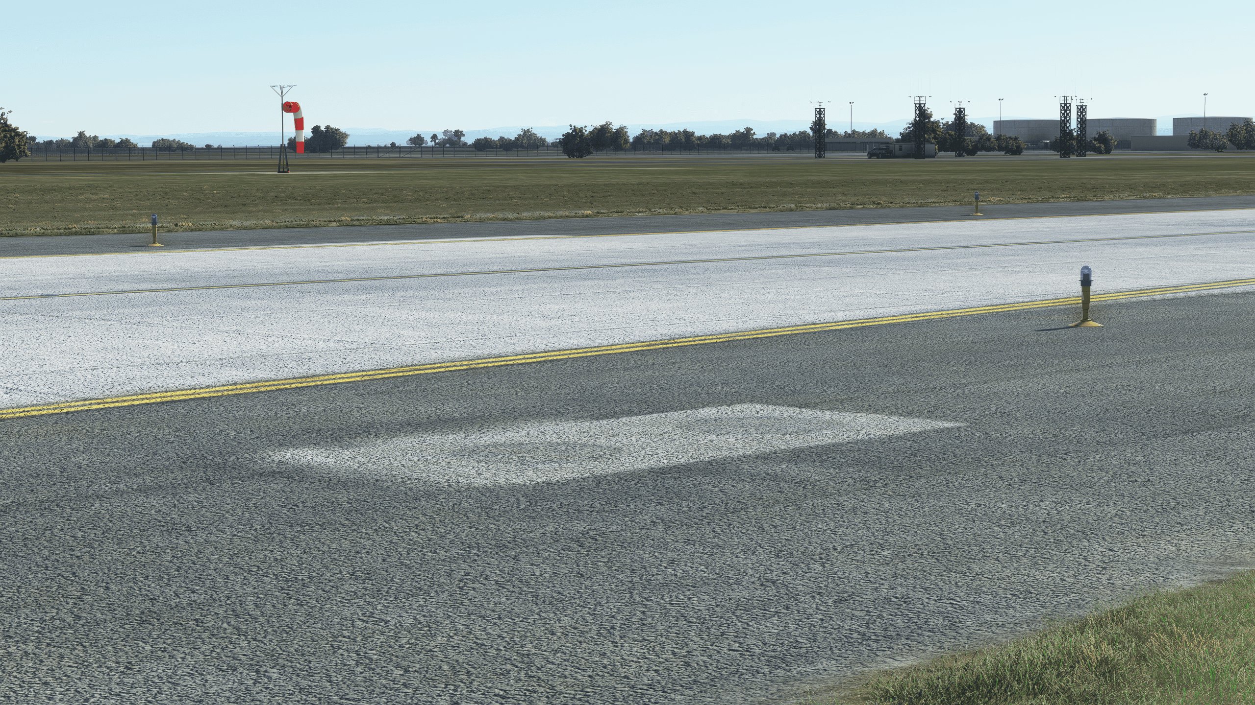 The first thing that caught my attention was the patchy things on the taxiway, which I can’t say I see very often. It’s a very realistic element, given it’s normal for holes and imperfections to be patched up, revealing a slight tonal difference between the old and new surfaces. So far, so good.