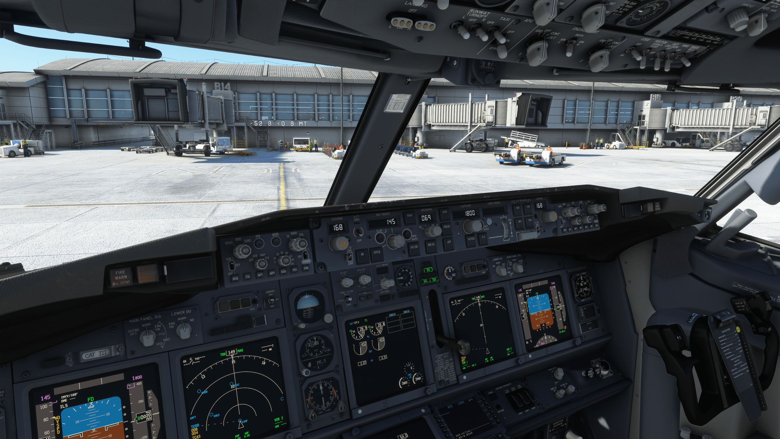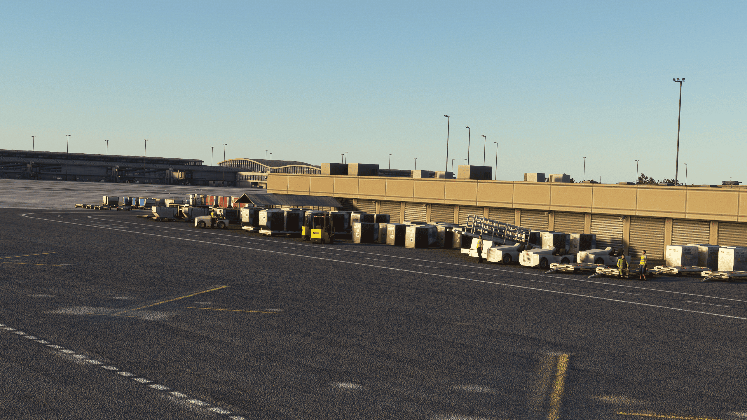 The cargo area has a very convincing amount of detail, with trucks, pallets, forklifts, and the cargo handling buildings got PBR on them.