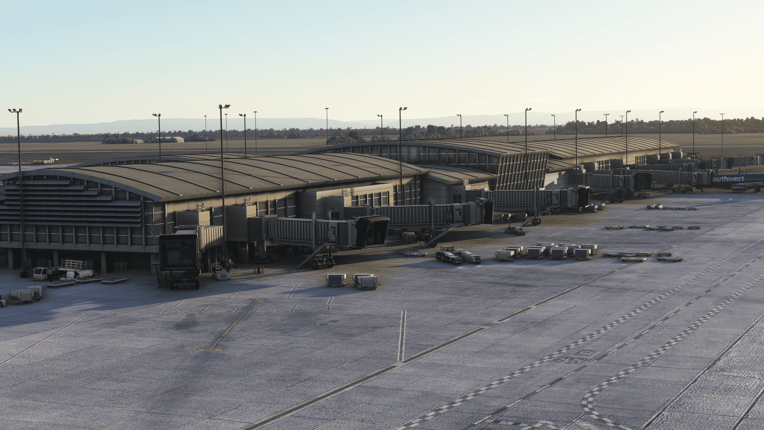 Despite being a relatively big, dual-runway airport, the overall performance is rather solid. There are no stutters on short final and minimal dips on the taxiway when looking towards the terminals. My rig (32 GB RAM, Ryzen 7 3700X, RTX 3080 10 GB) had no trouble running it.