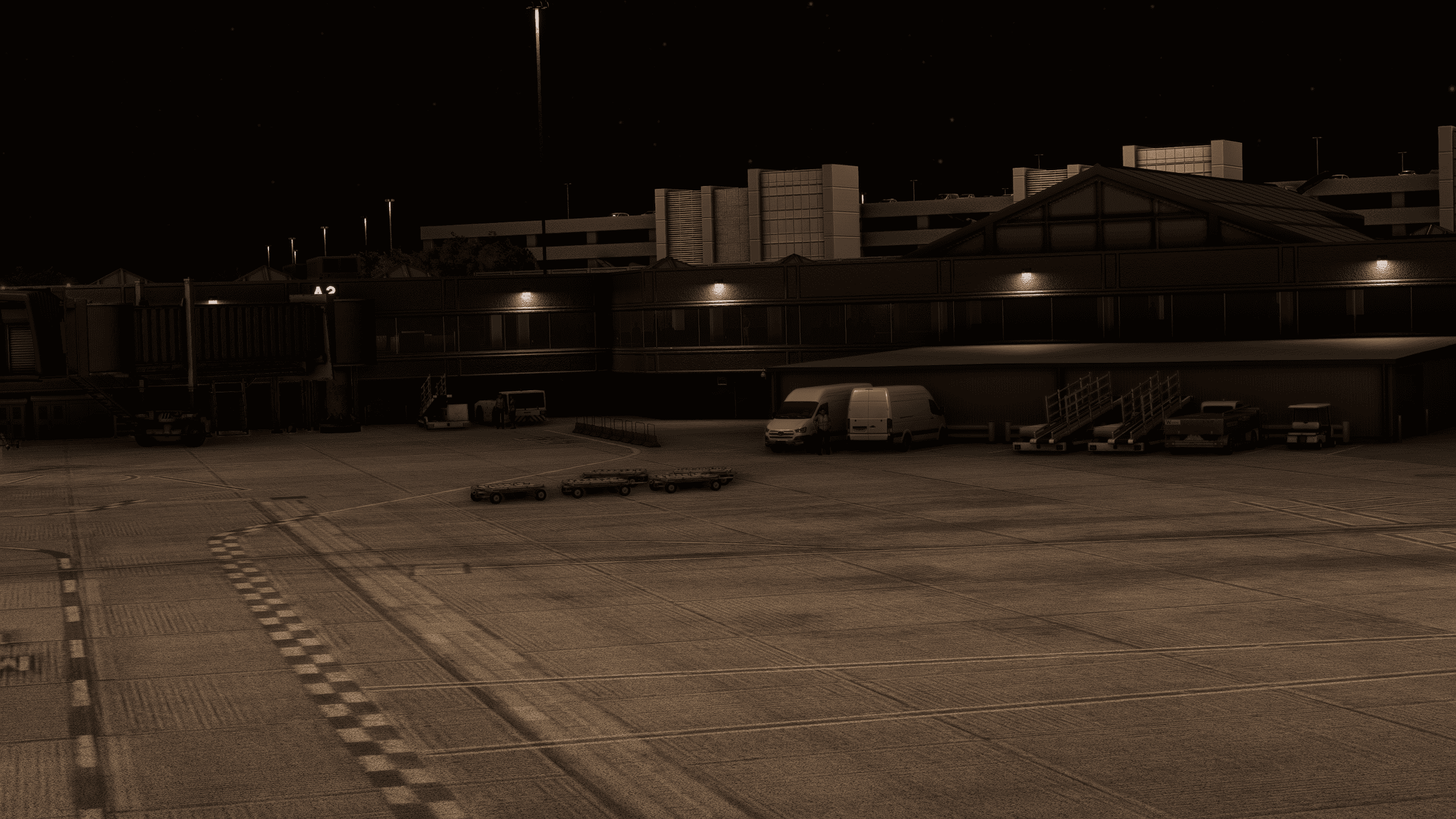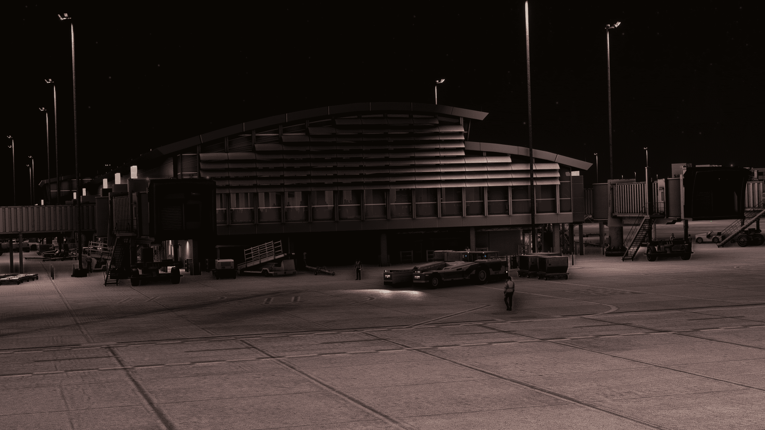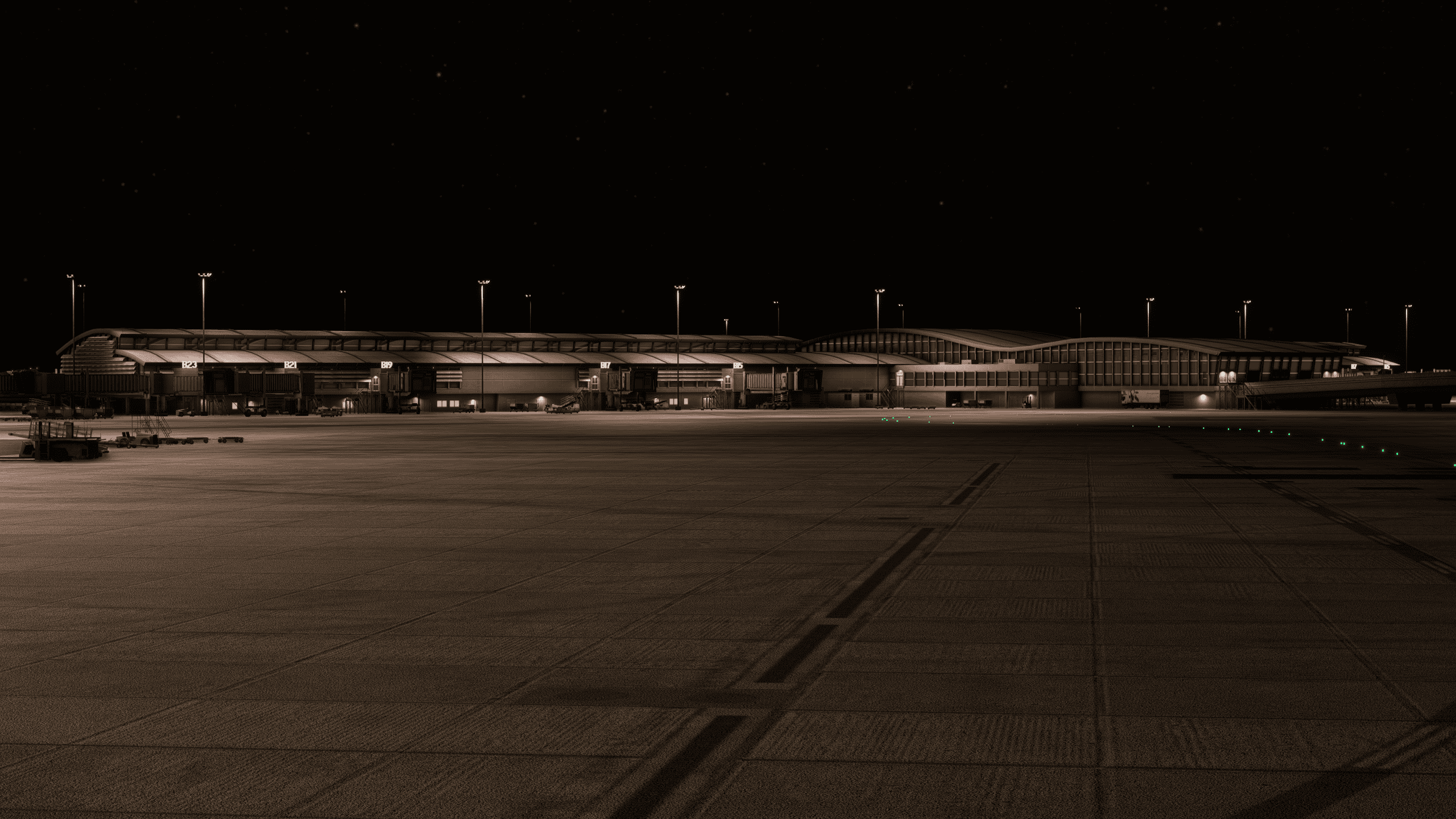 The night lighting is great on both terminals, and it also extends to the rest of the airport. The brightness levels are very convincing.