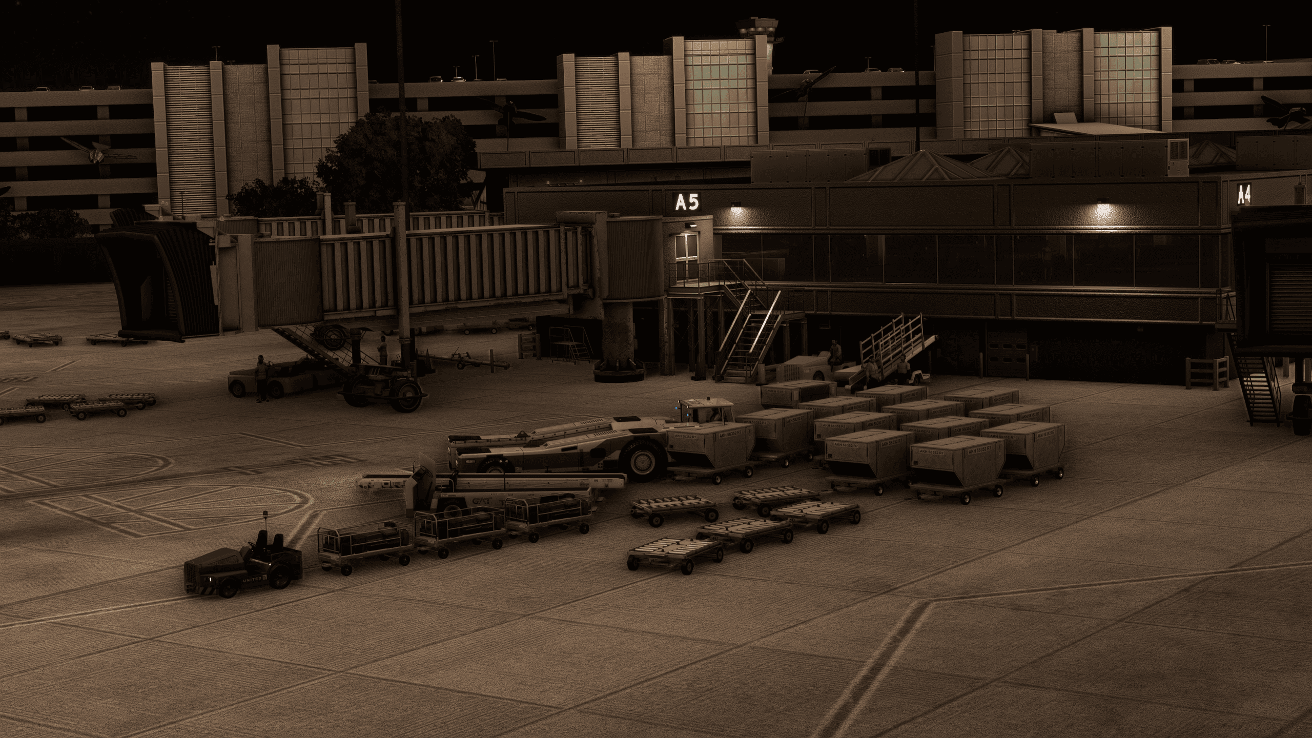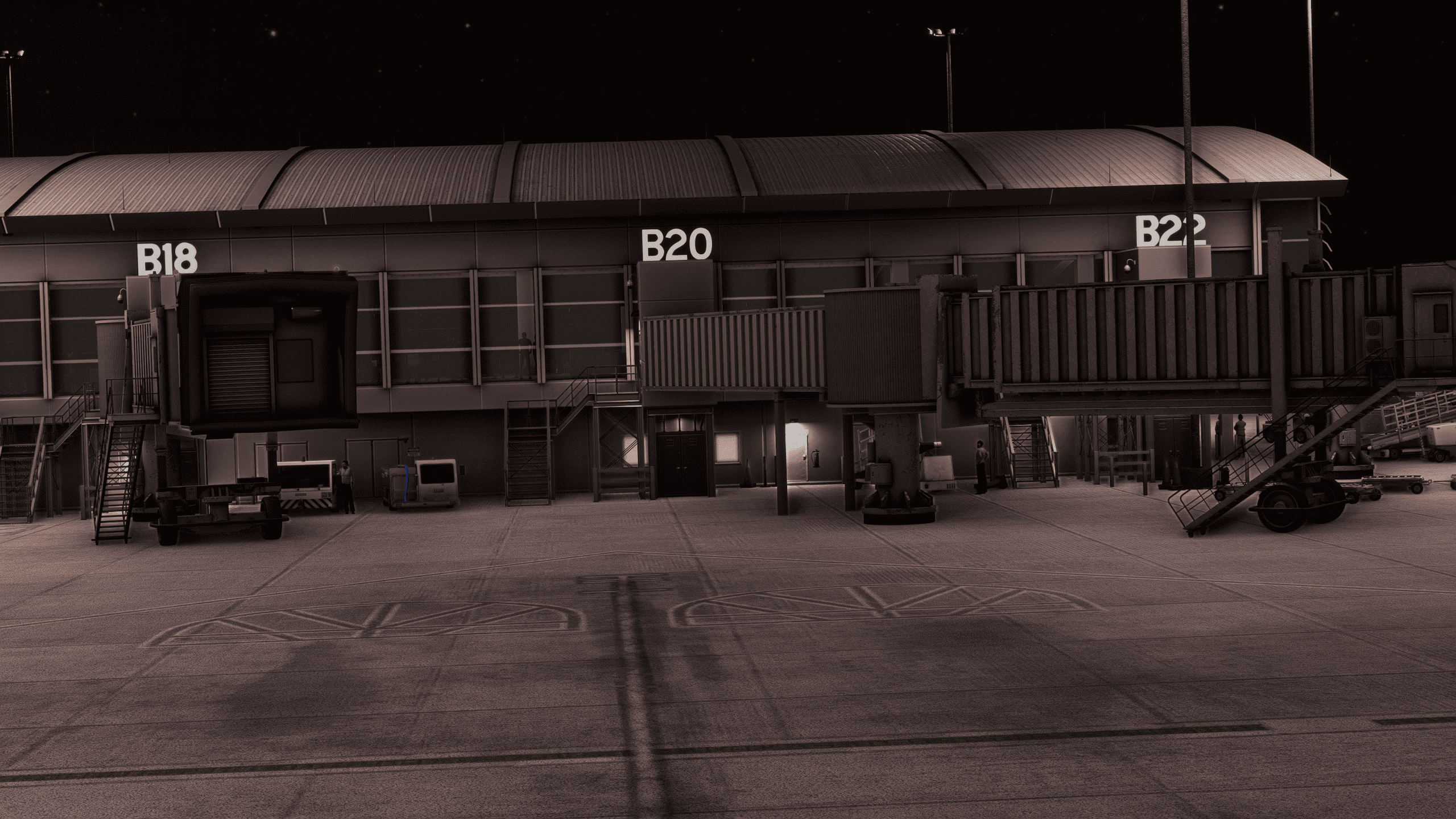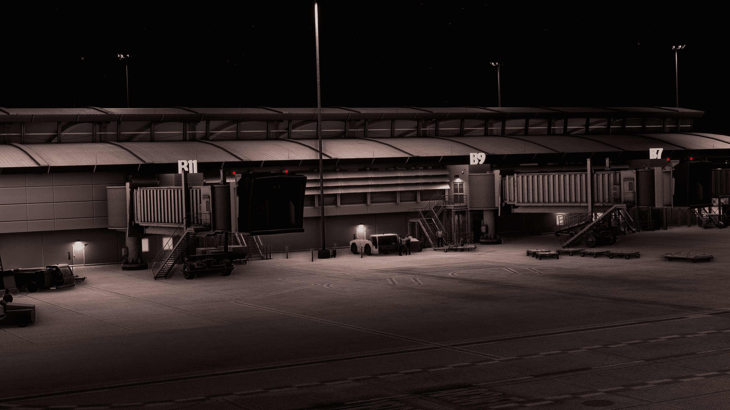 The night lighting is great on both terminals, and it also extends to the rest of the airport. The brightness levels are very convincing.