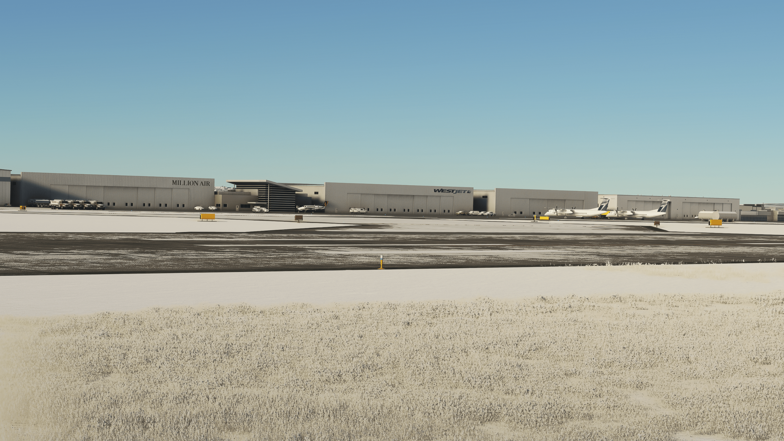 Sunwest Aviation and Million Air, as per real life, are also accurately represented through their hangars beside WestJet’s Q400 hangar.