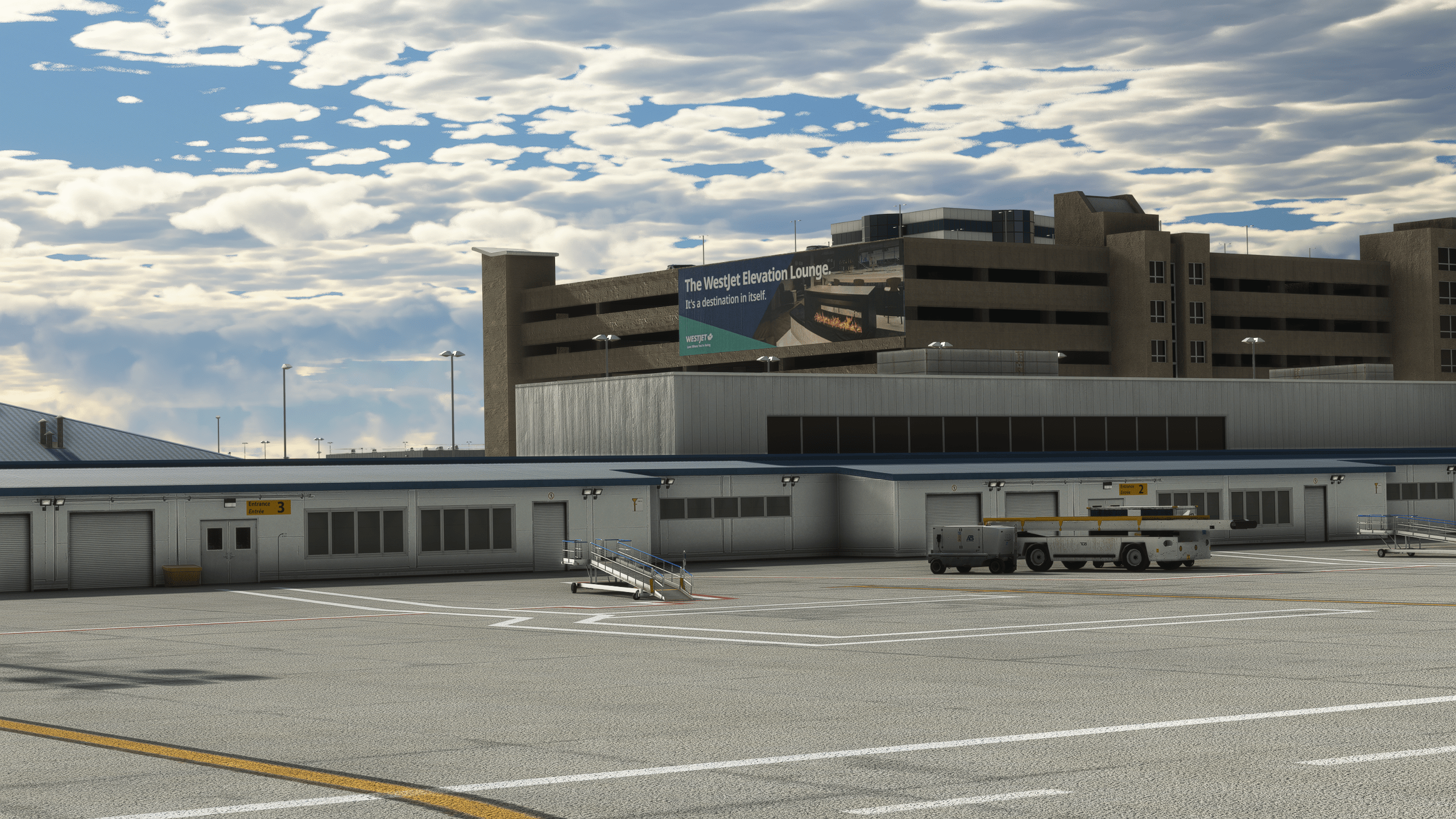 Another thing that caught my attention is the WestJet advertisement on the main parking building: it’s wrinkled instead of just a flat texture. It might be just a minor detail, but it makes all the difference regarding increasing the immersion level. Every detail counts! On that detail note, the road signage inside and around the airport is also accurate. If only we could commute virtually!